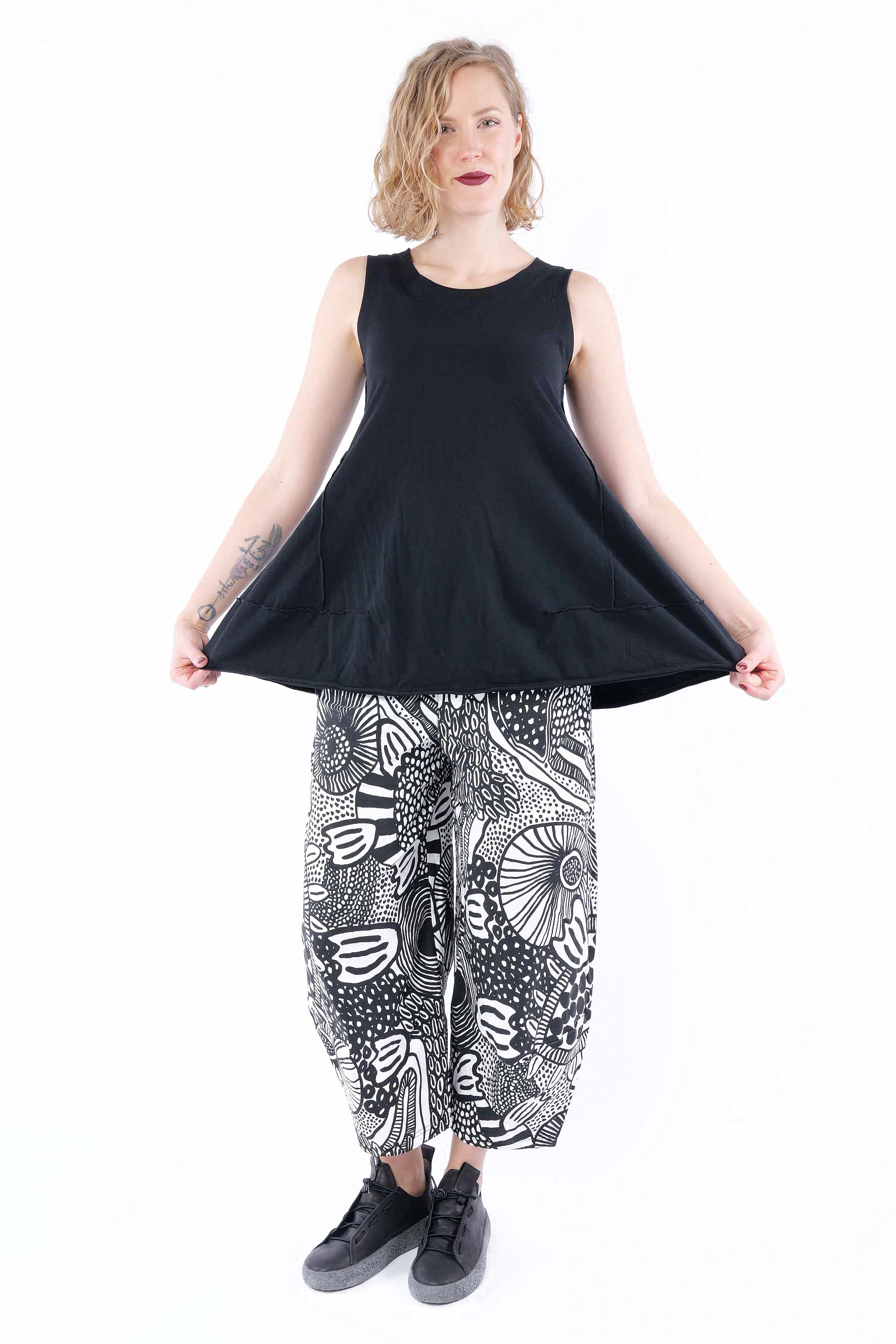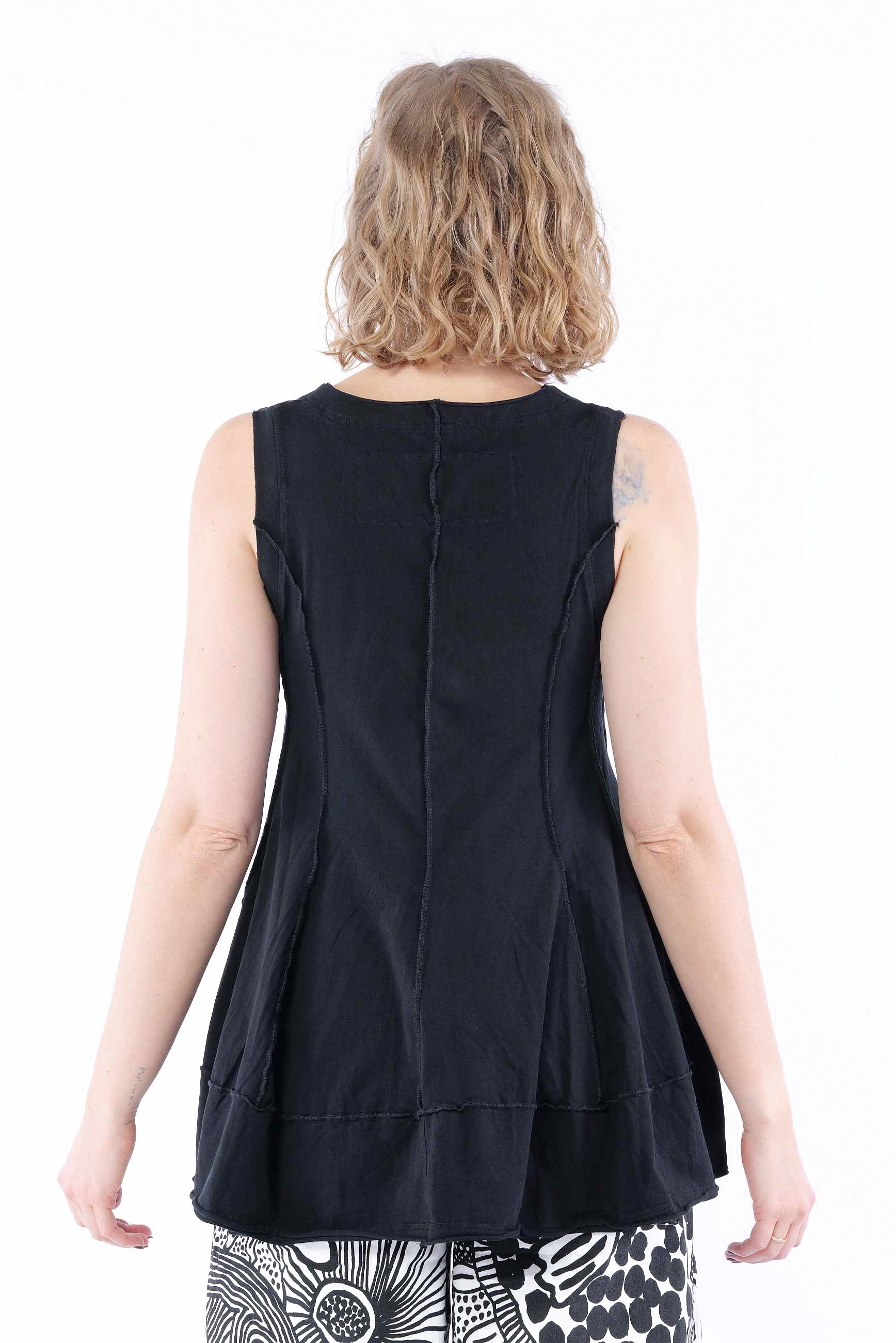 Details: - Rundhalsausschnitt - A-Linie - Dünnes T-Shirt Jersey - Säume rollen sich nach außen - Ziernähte mit Kettelnaht nach außen - Hinten länger - Offene Kanten