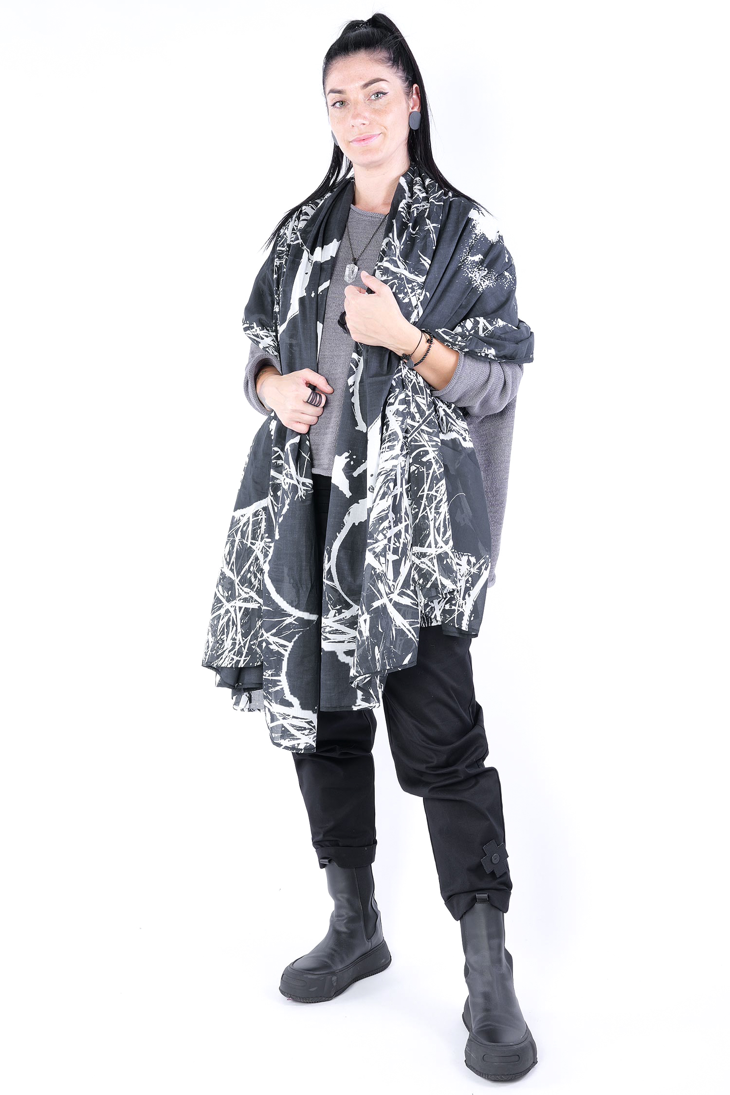 Ein Schal ist ein Tuch ist ein Schal, ist verhüllend und kleidend. Eine Projektionsfläche mit Druck oder Jaquard. Schützt uns von der Sonne, vor Wind und Kühle und nicht zuletzt vor Blicken. Kann als Kopfbedeckung oder aufgerollt als Stola getragen werden. So ein Designertuch ist so vielseitig eisetzbar und lässt uns nicht zuletzt fabelhaft und geheimnisvoll aussehen. Die Aura, die dieses kleidsame Stück Stoff um uns legt, ist nicht zu unterschätzen.