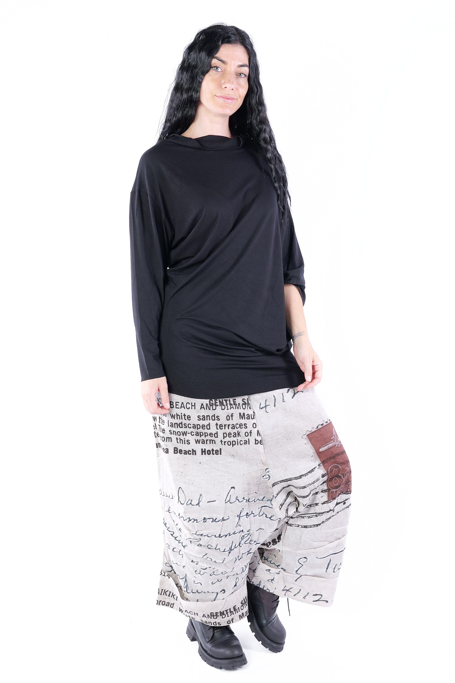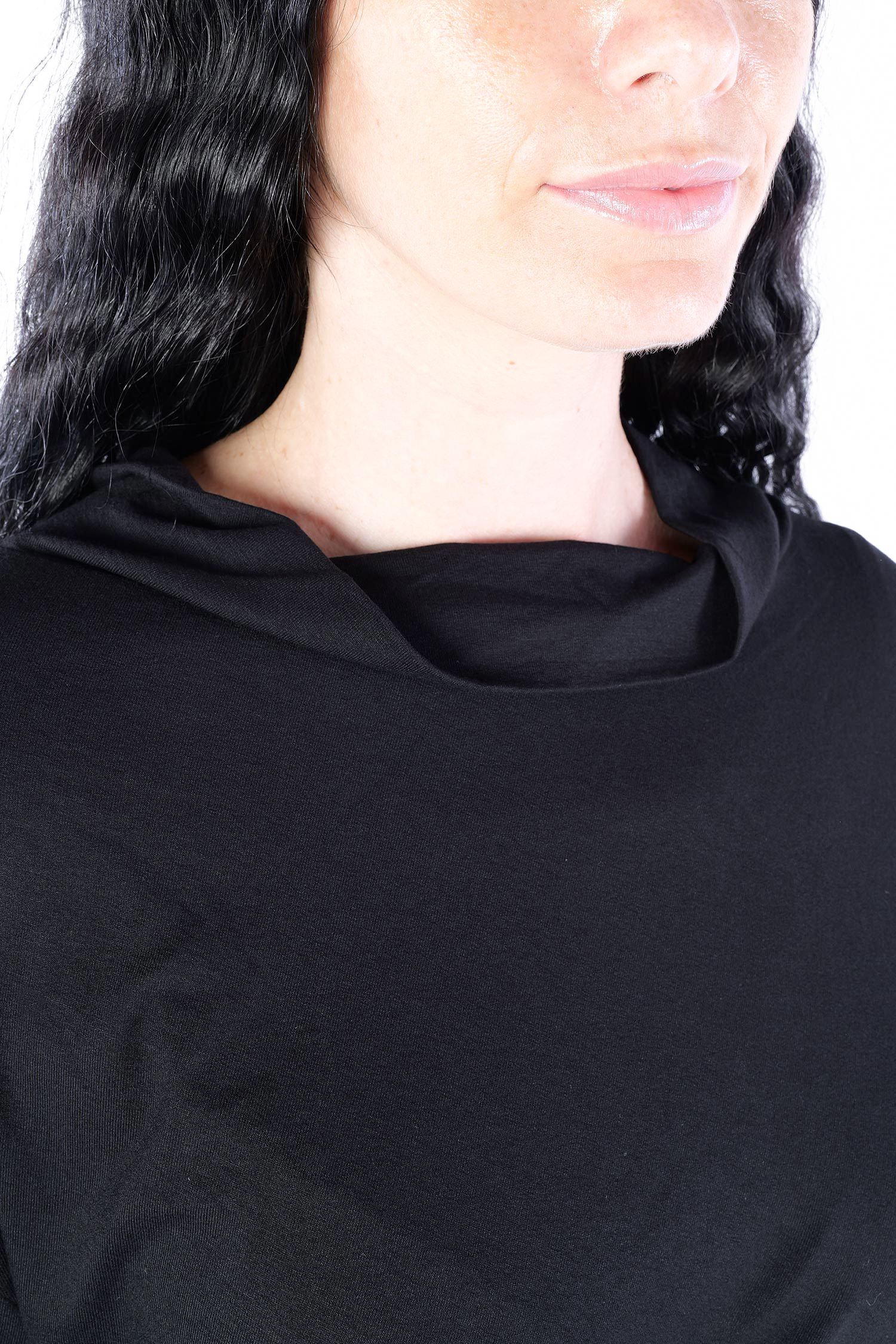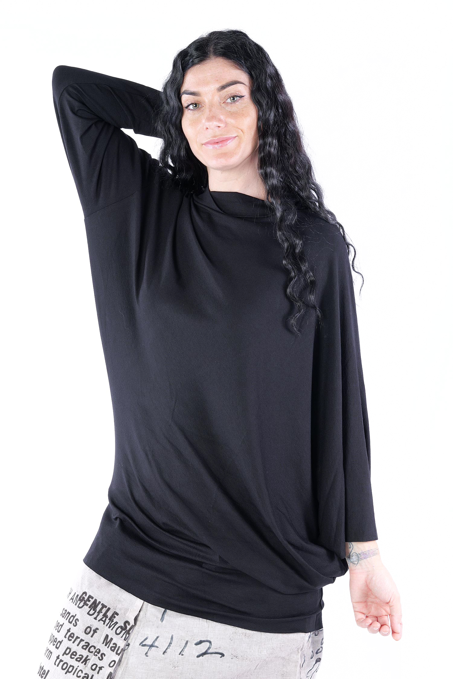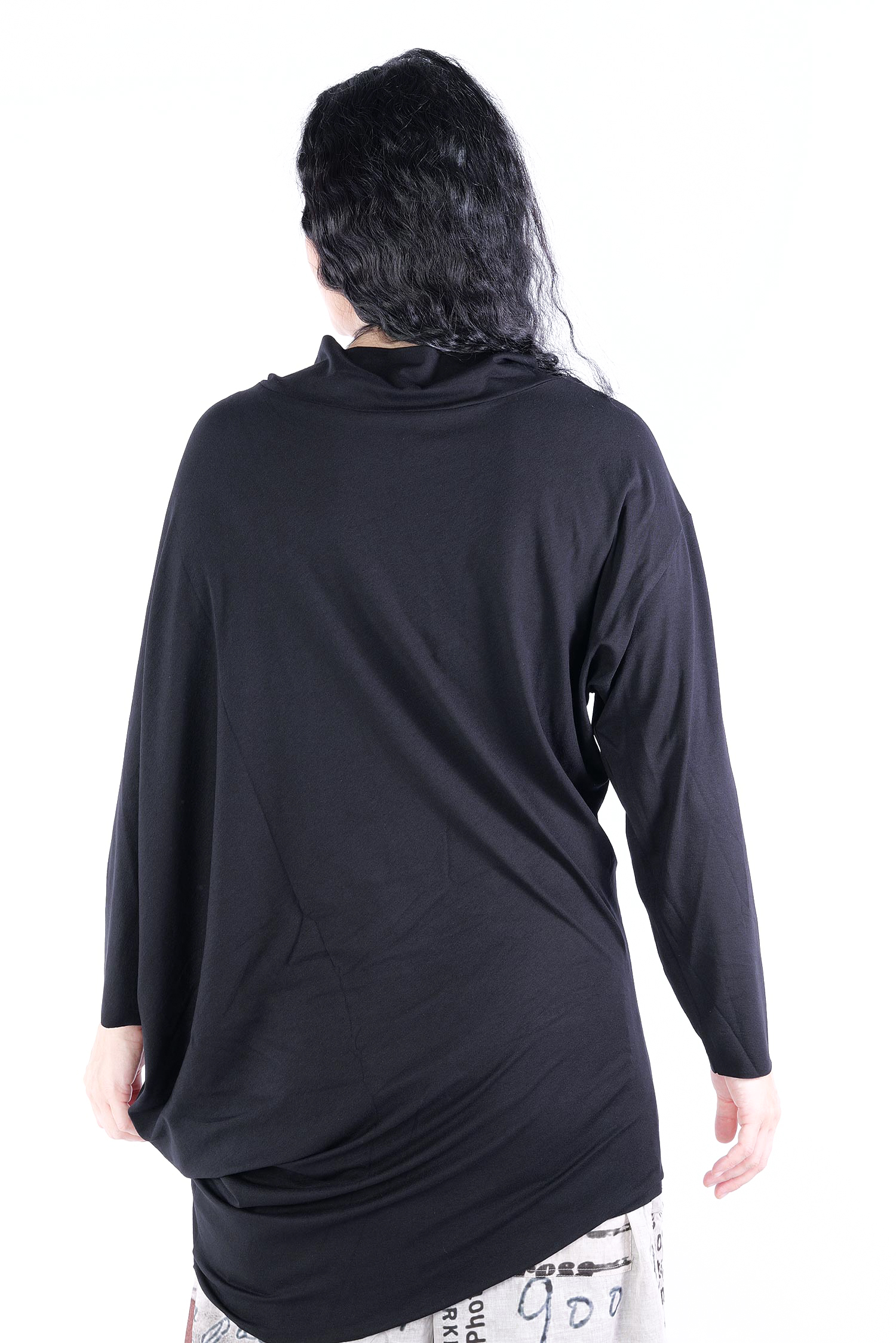 - Asymmetrisch geschnitten, eine Seite rafft sich hoch