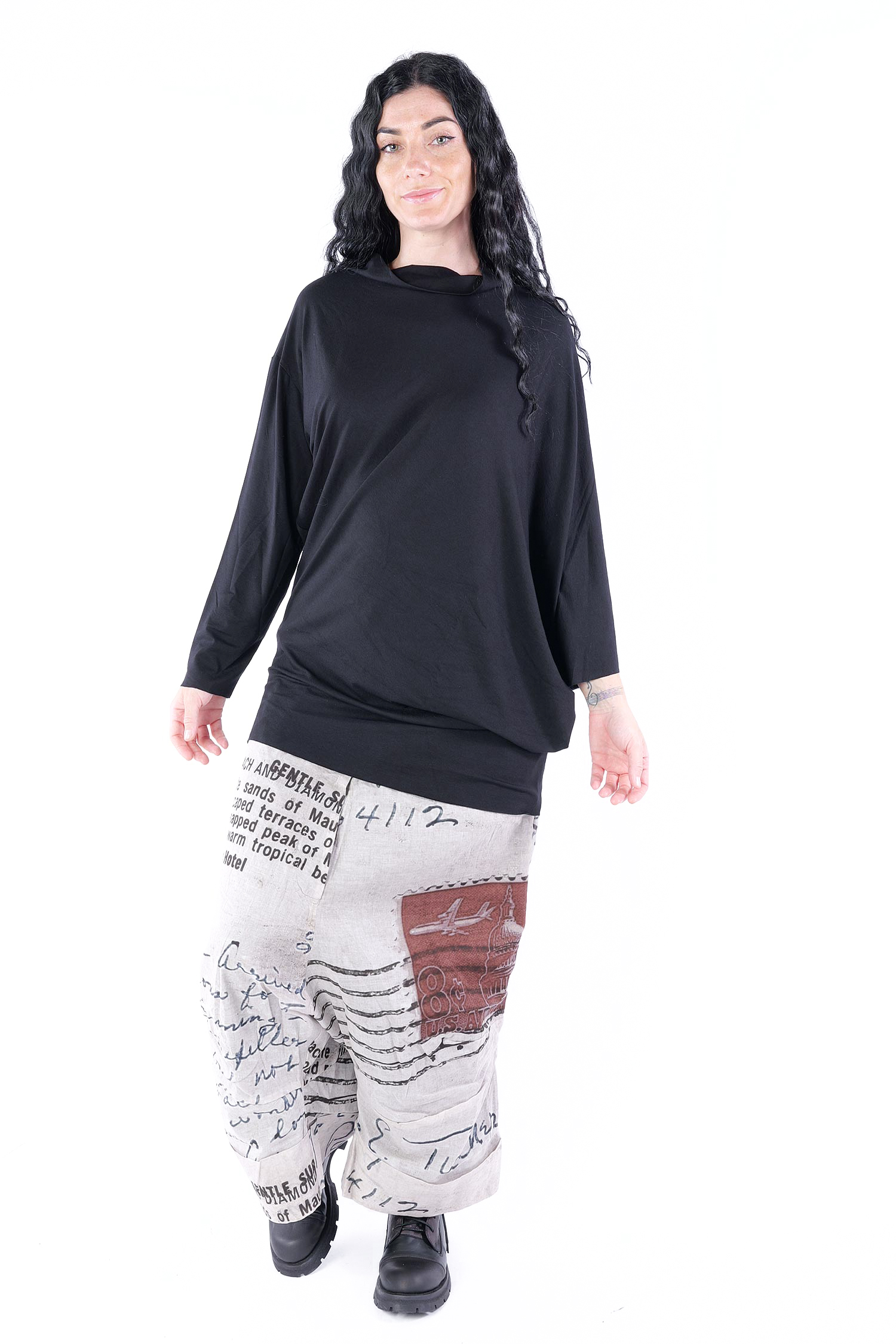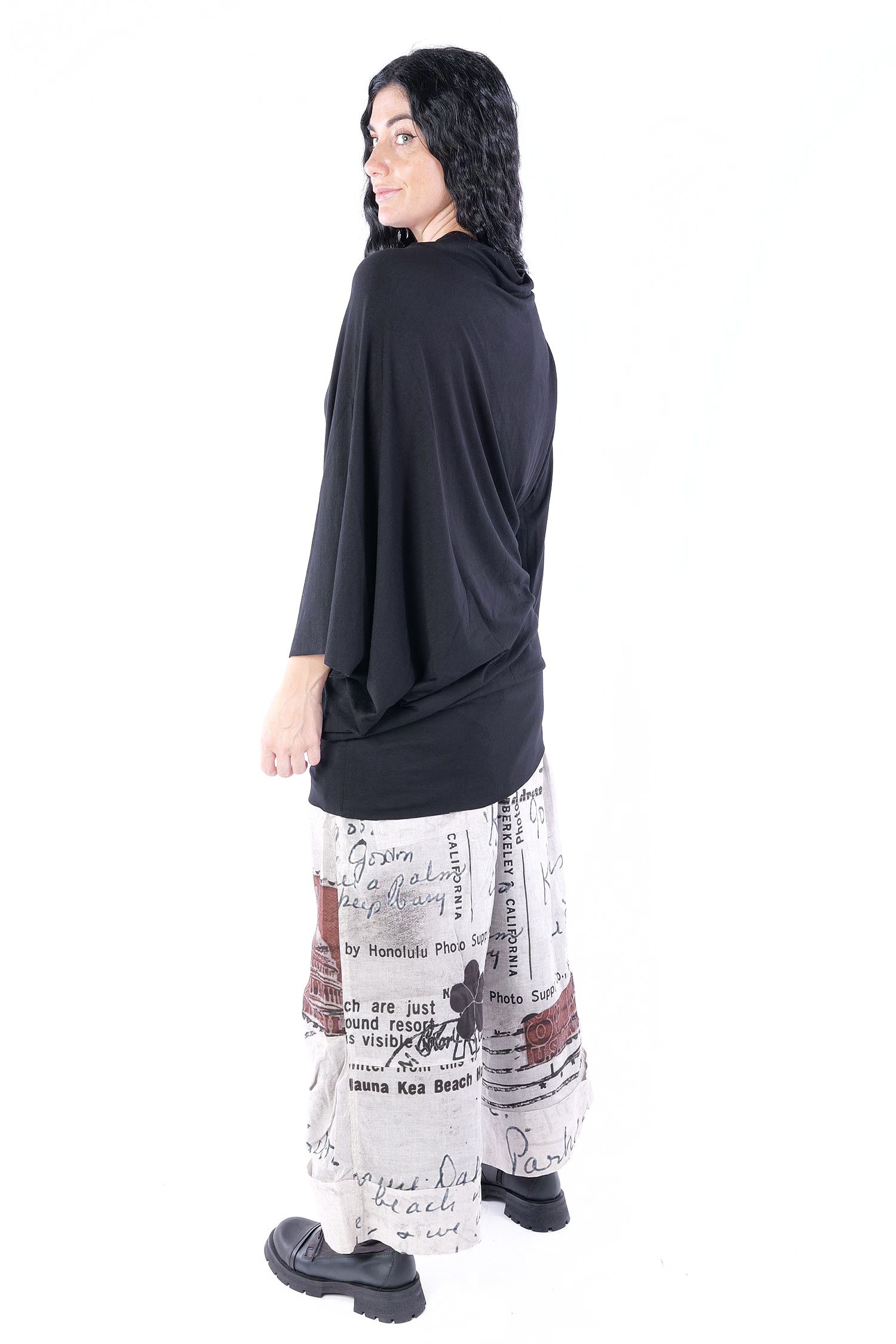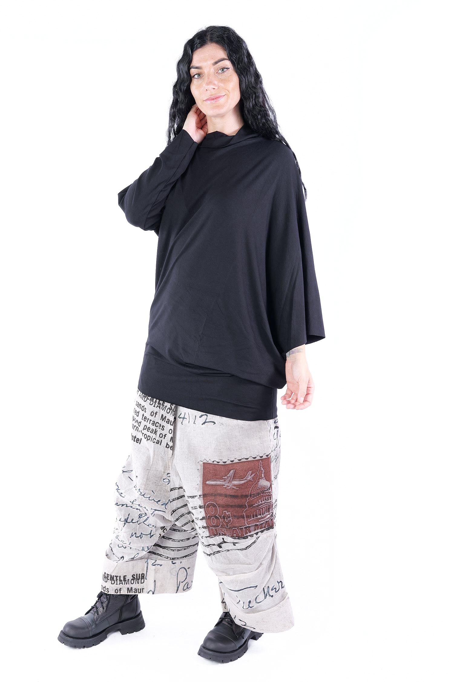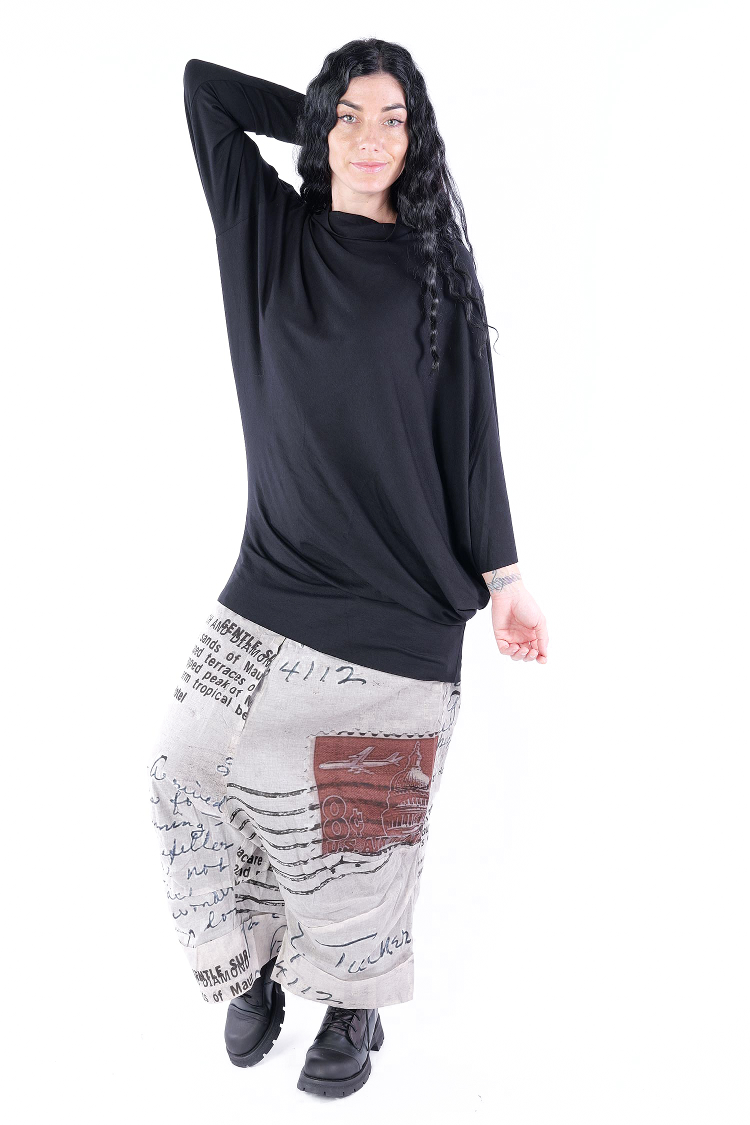 - Asymmetrisch geschnitten, eine Seite rafft sich hoch