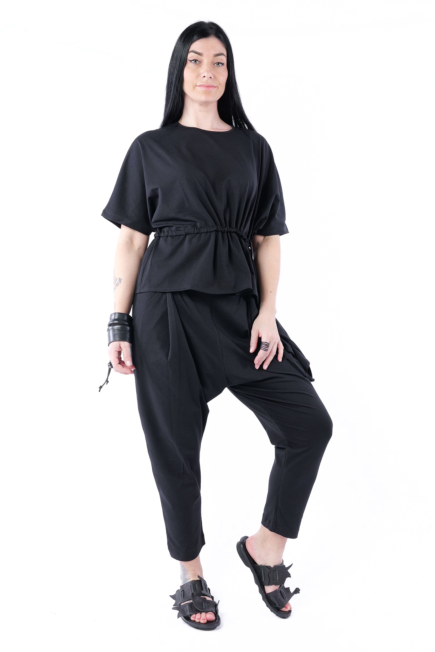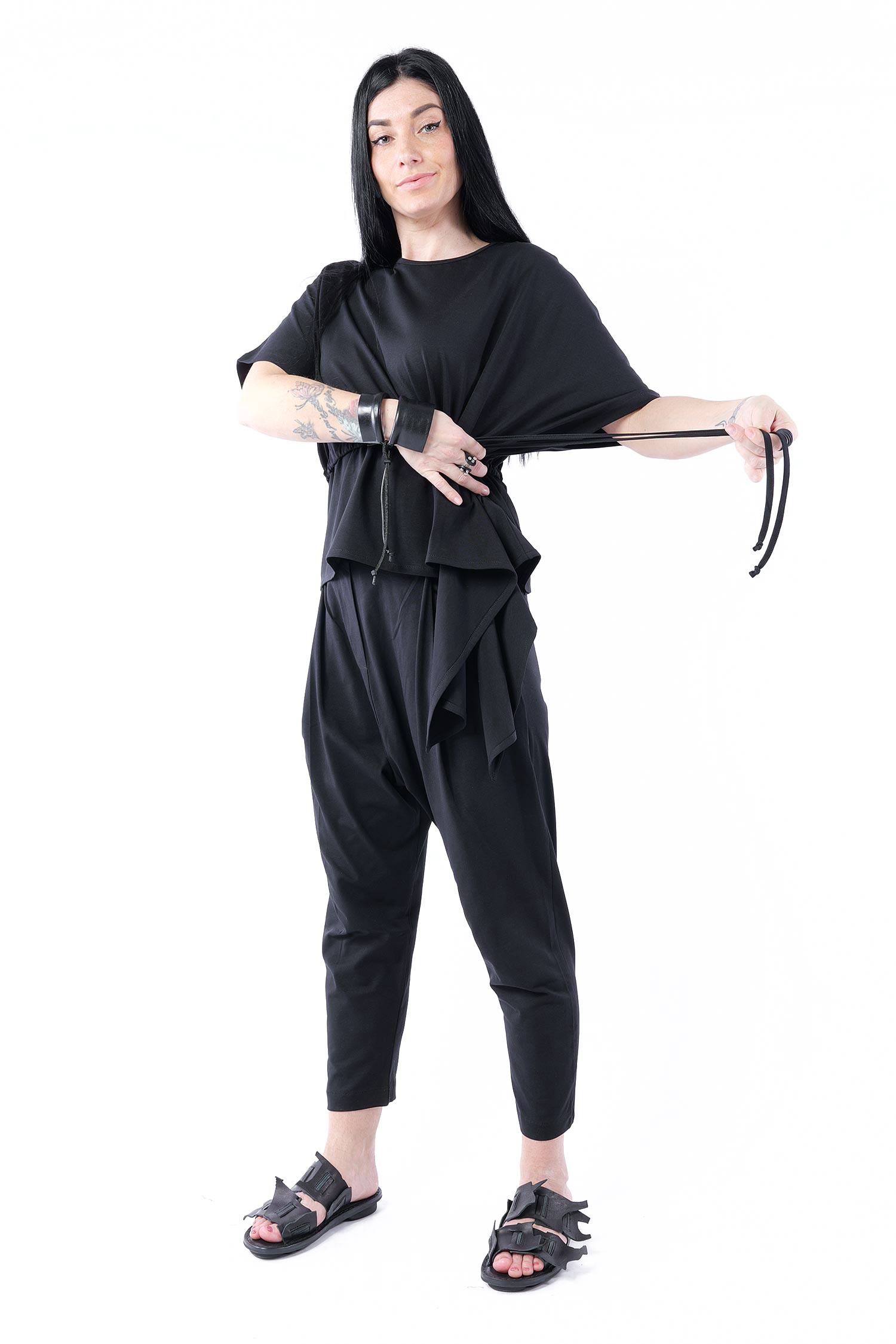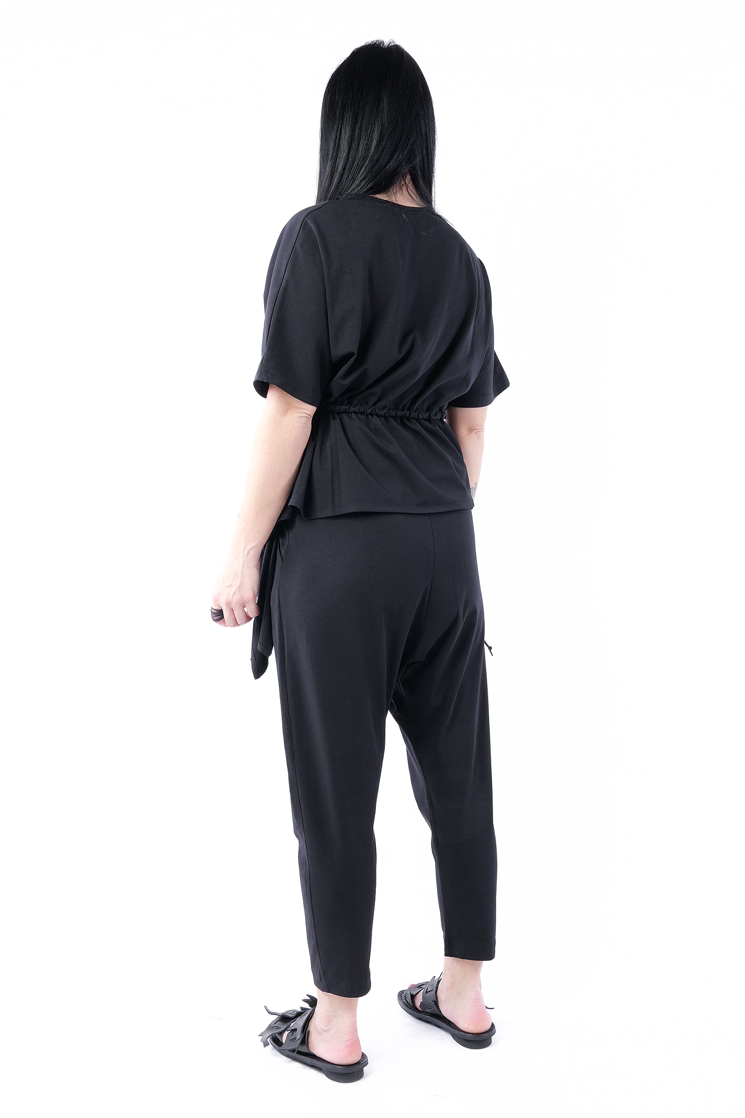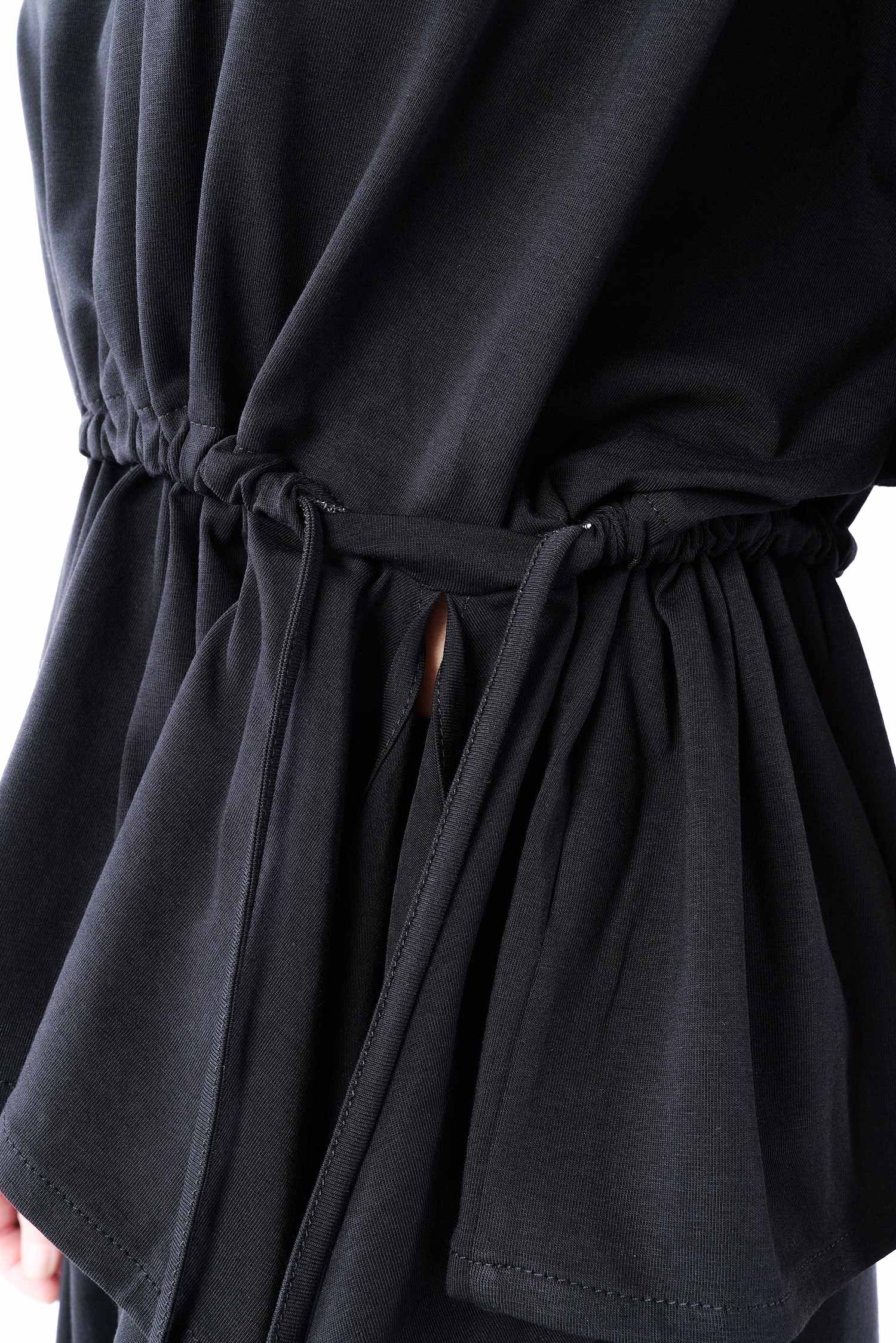 - Auf Taillenhöhe ein Zugband zum raffen