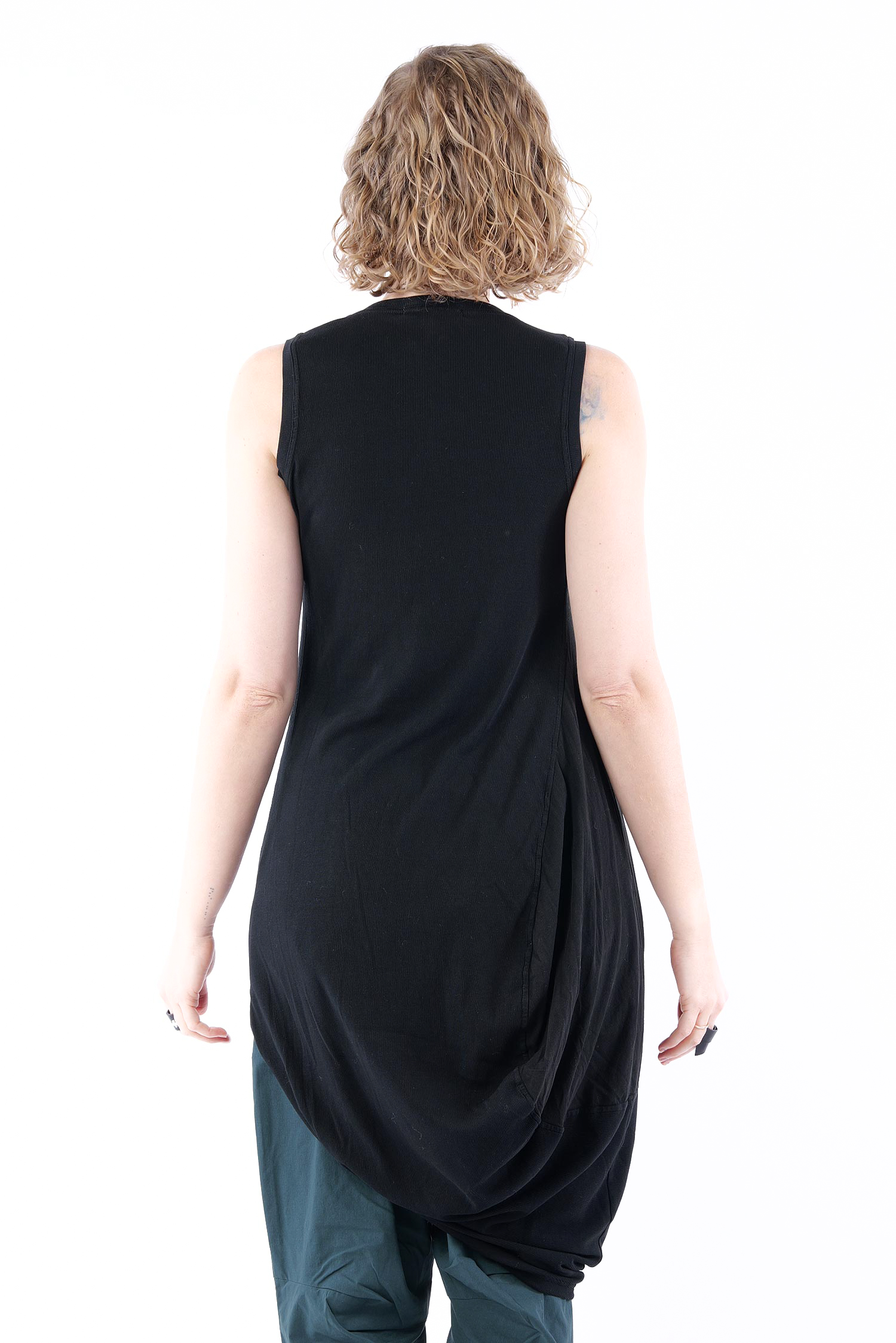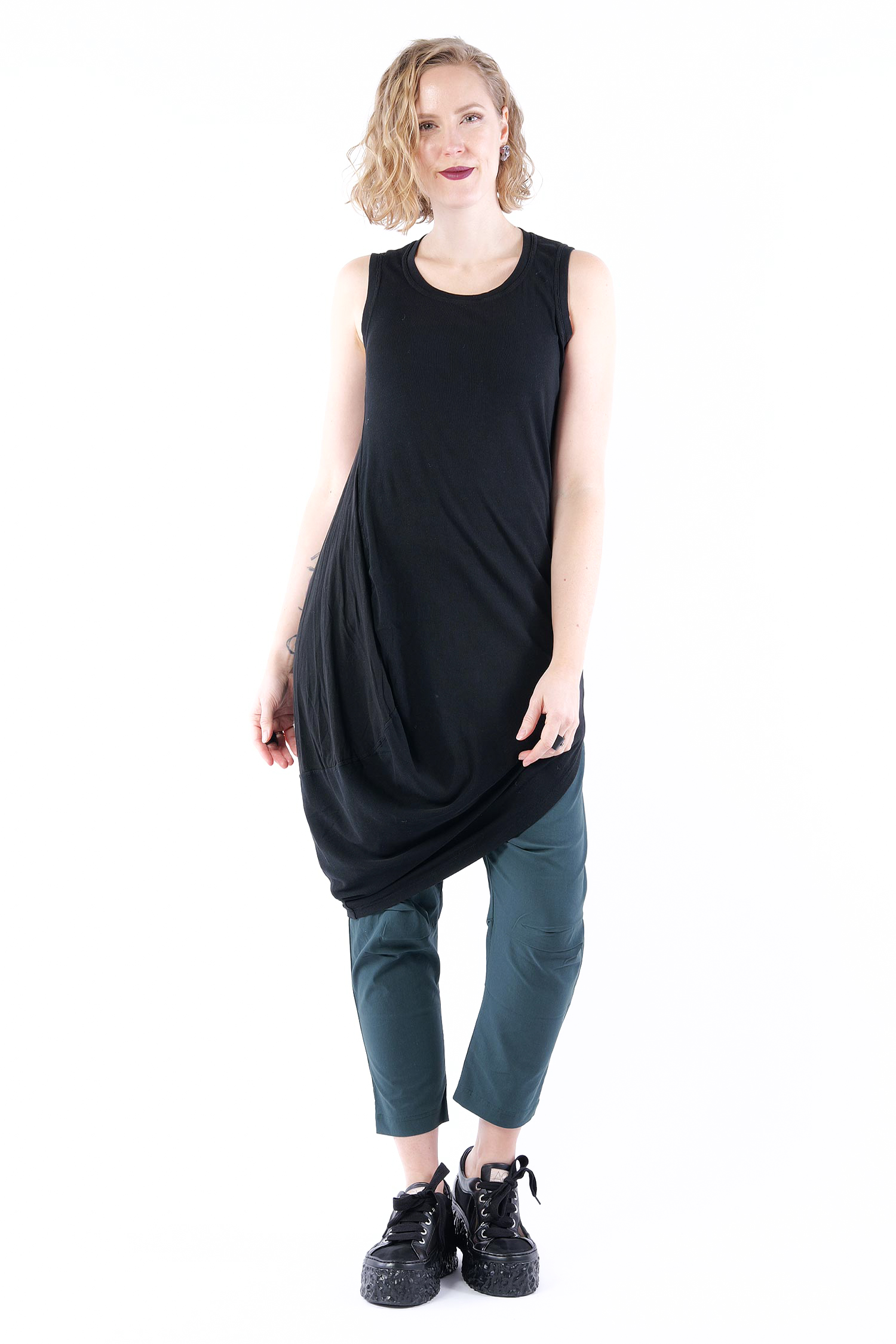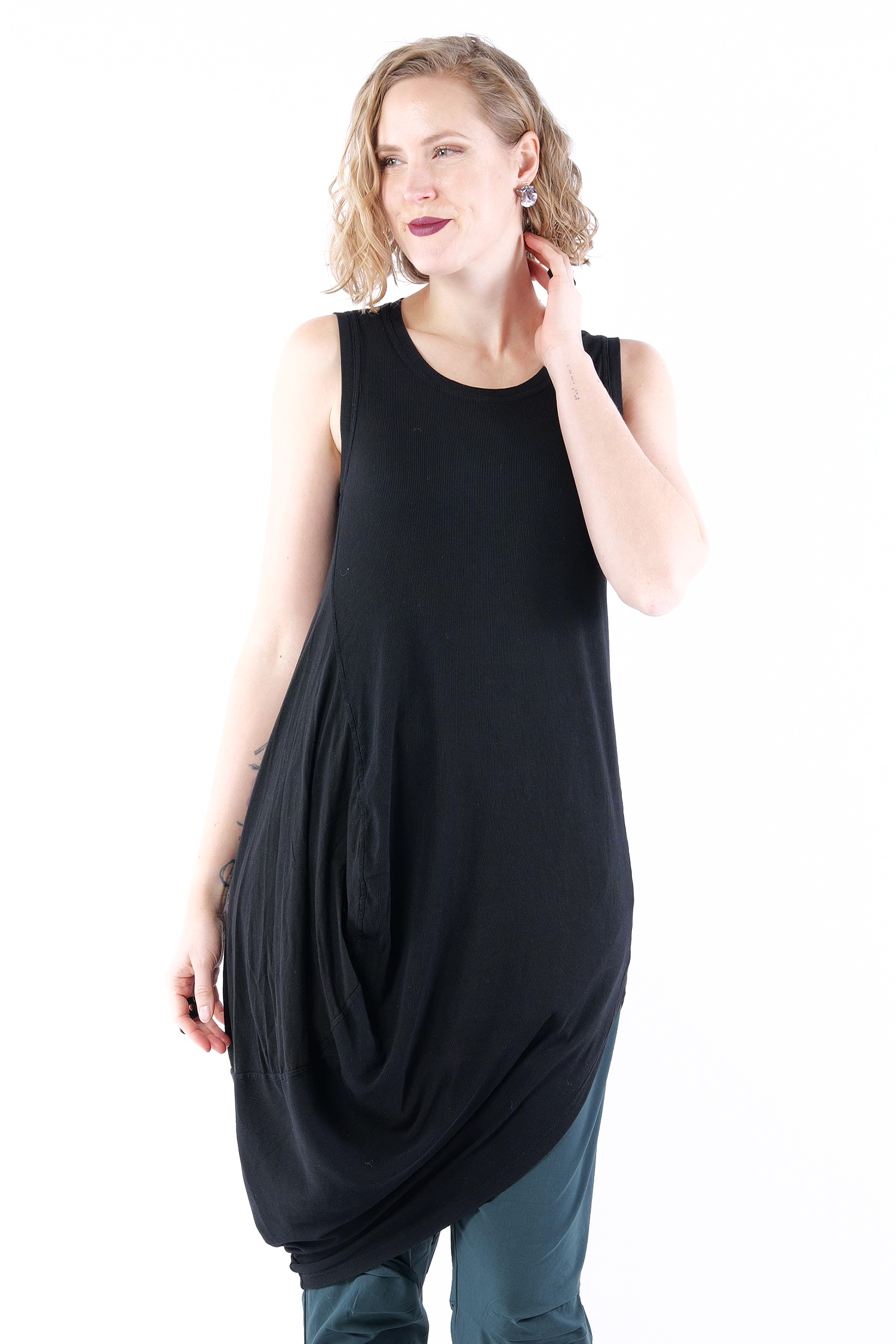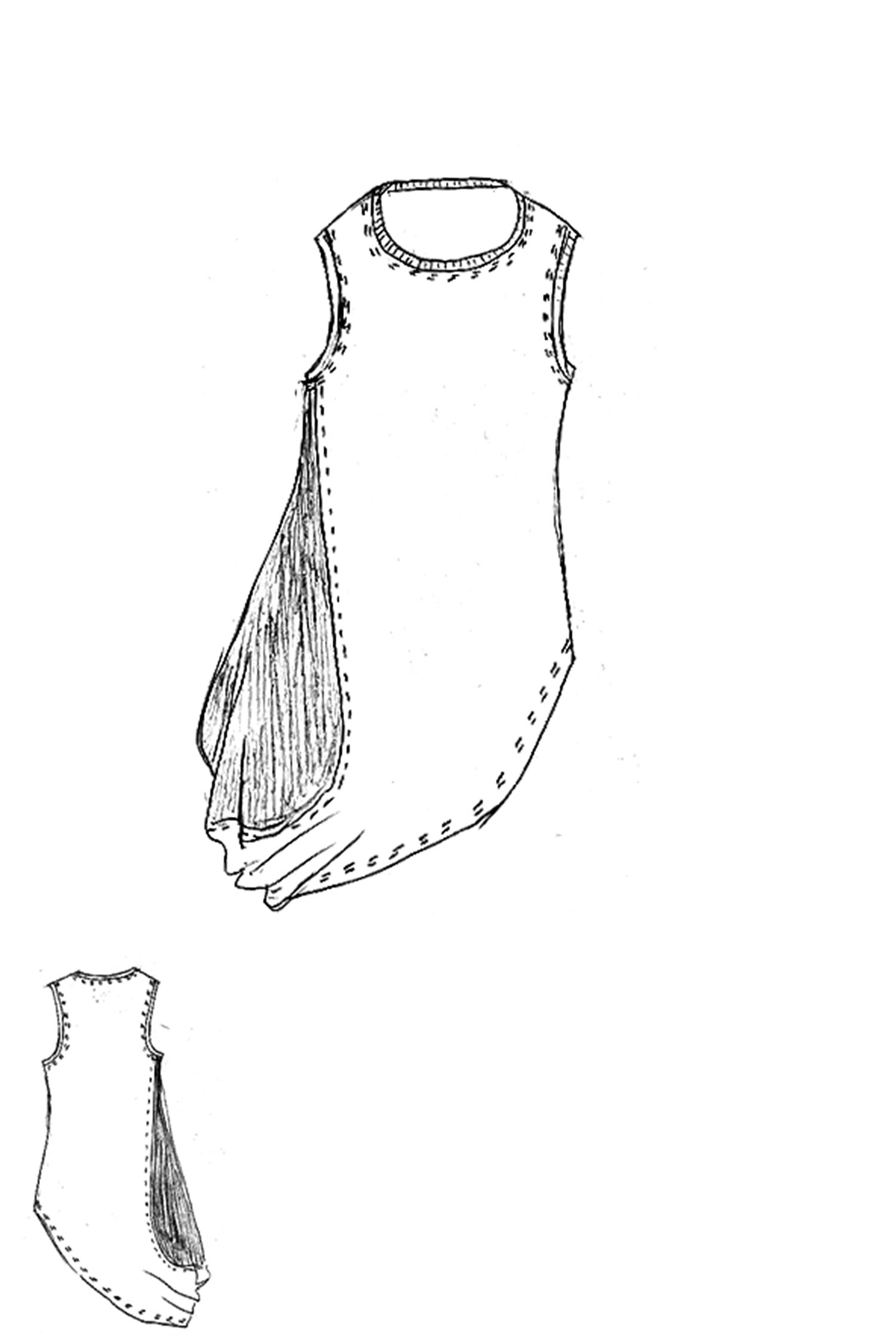 - Linke Seite tulpig geschnitten mit glattem Jersey eingesetzt, rafft sich beim tragen hoch