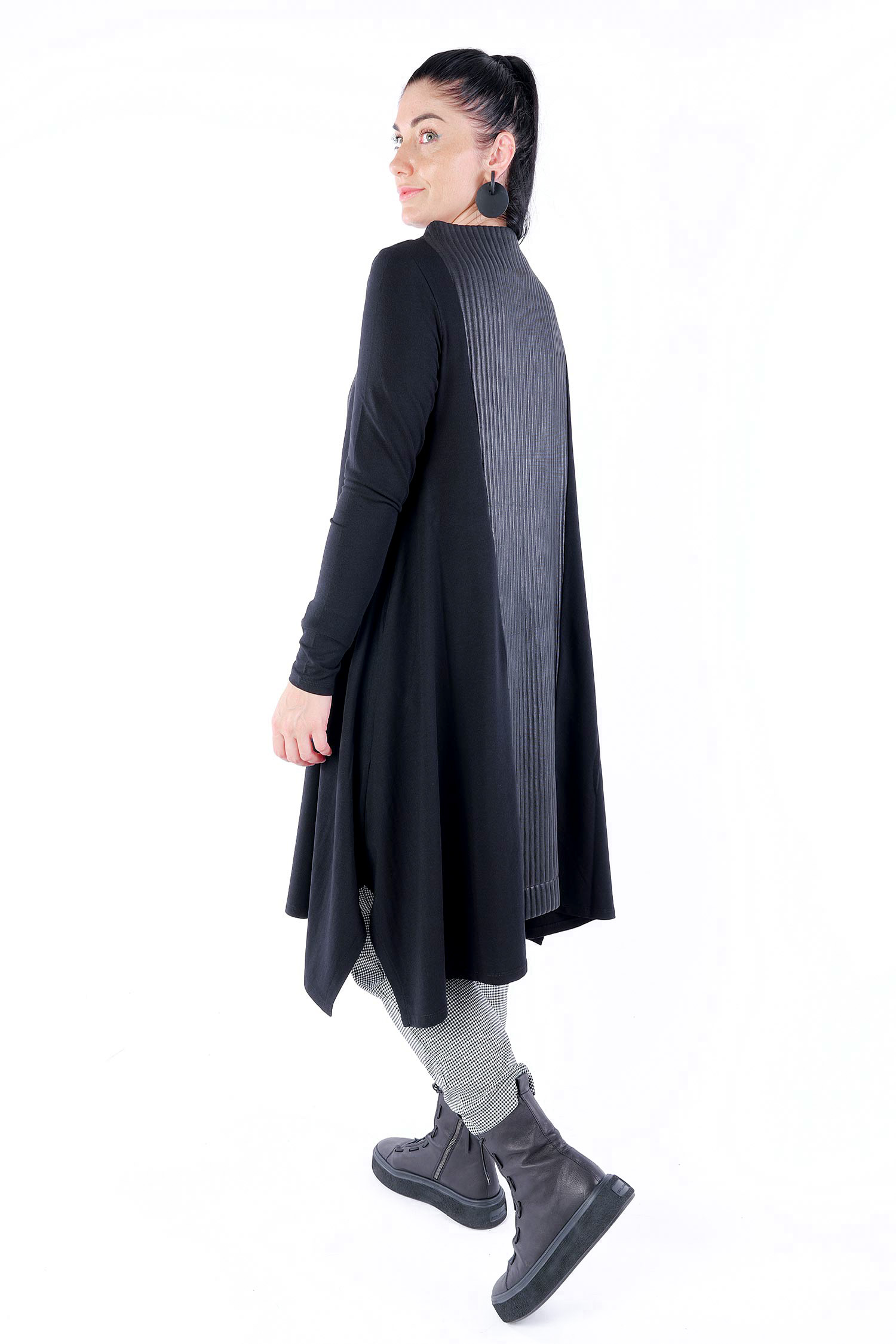 Detailreiches Jerseykleid - Schwarz - 766017
