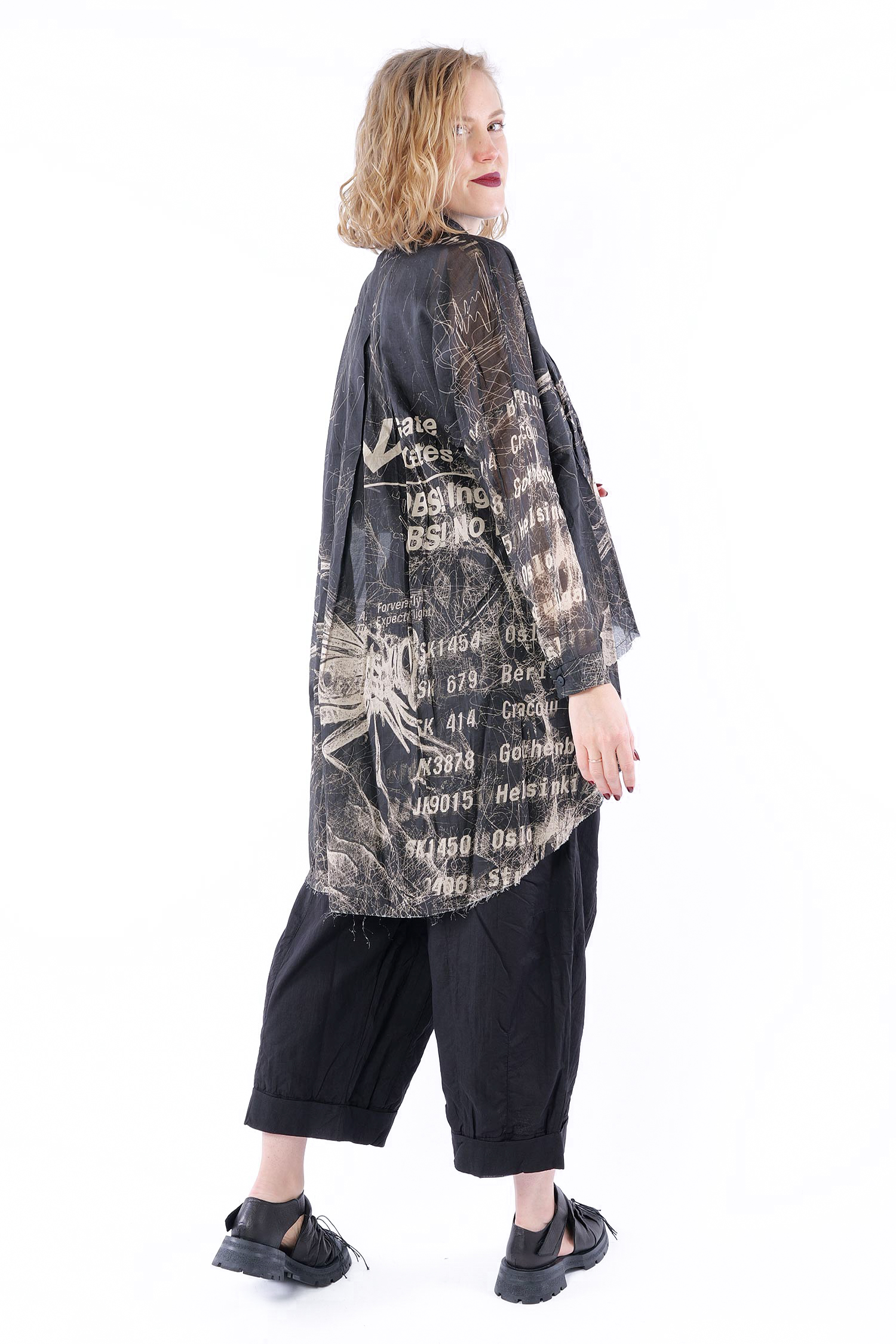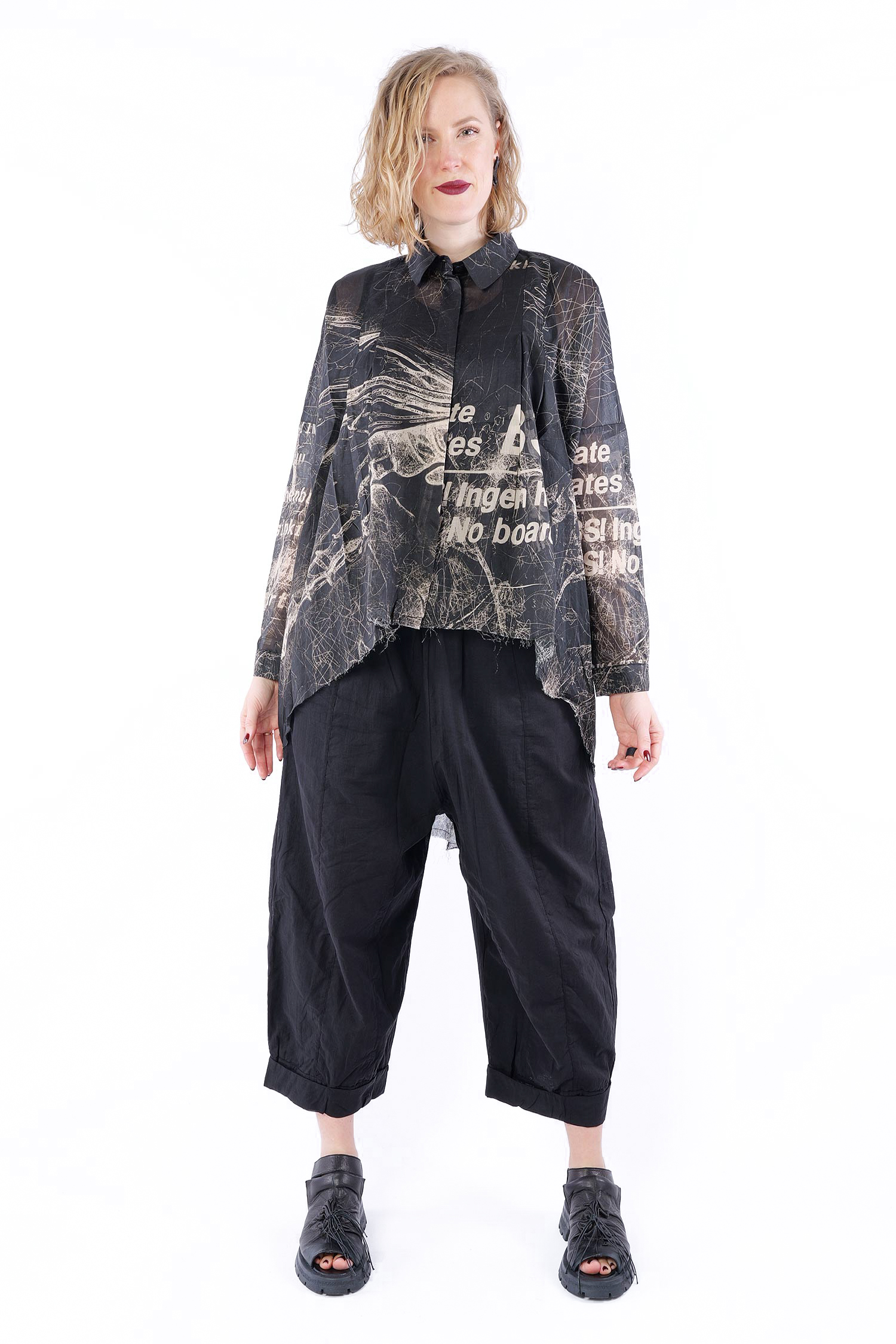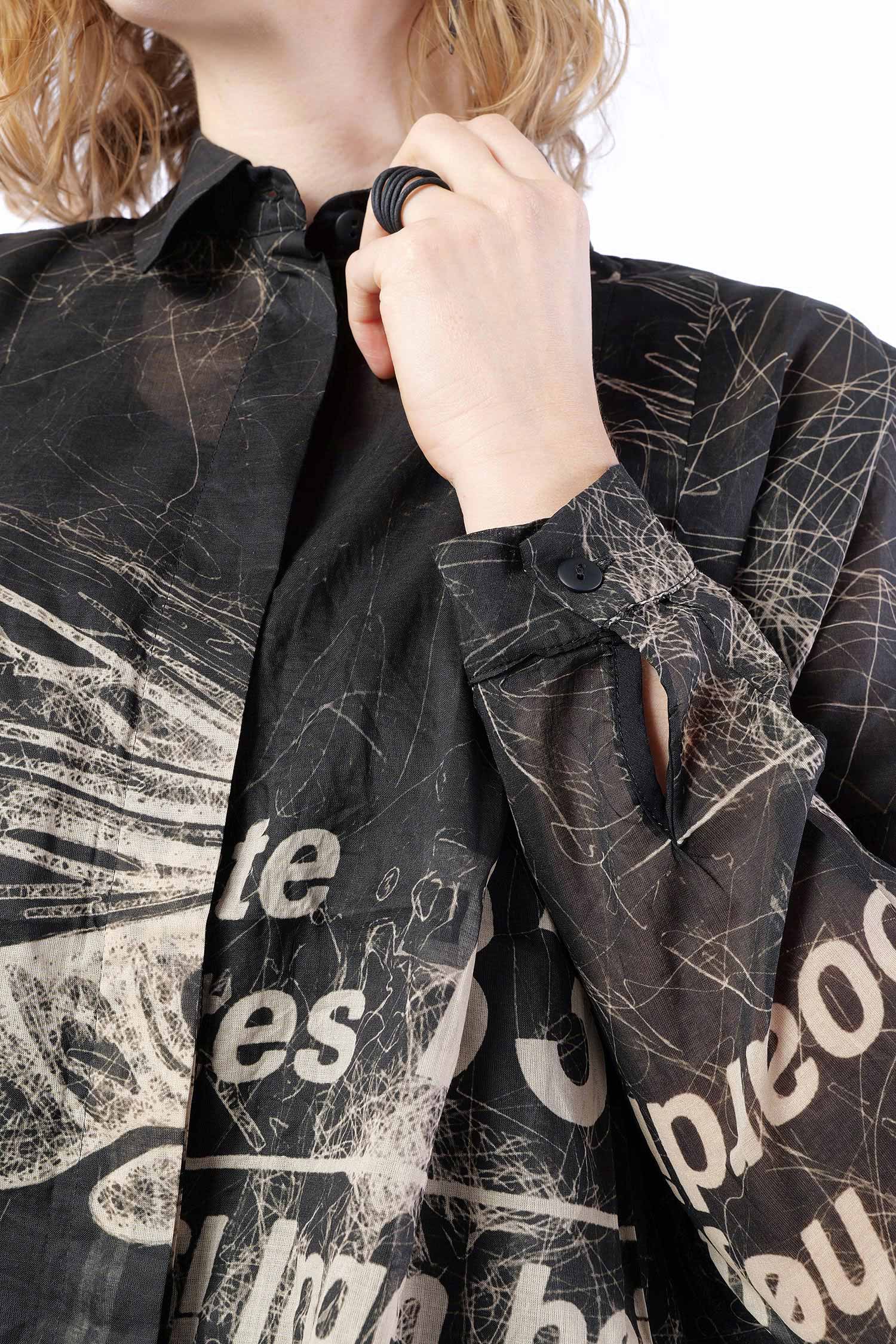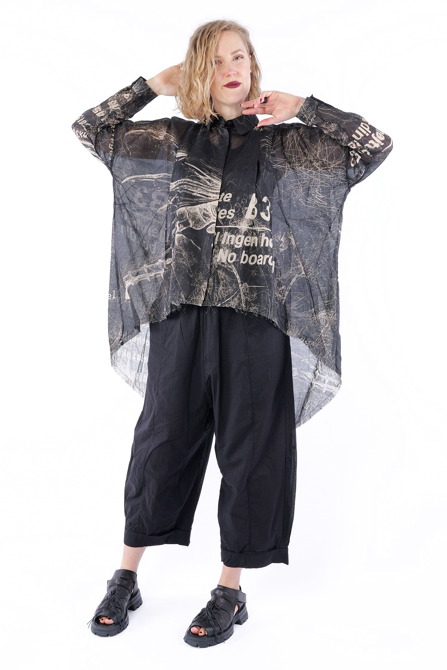 Details: - Leichter Baumwoll-Voile - Weit und kastig - Oversize - Verdeckte Knopfleiste - Kragen - Abgerundeter Saum - Ärmelsaum mit einem Knopf und Schlitz - Offene fransige Kanten - Hinten deutlich länger - Falten im Brustbereich - Kellerfalte im oberen Rücken