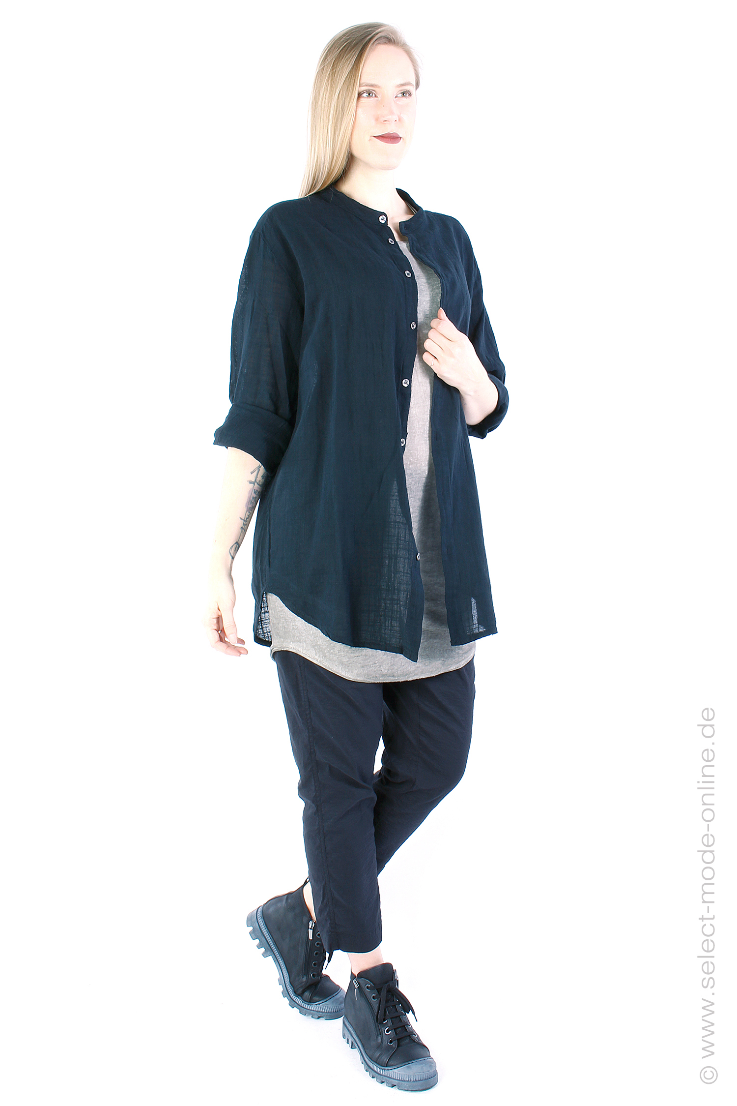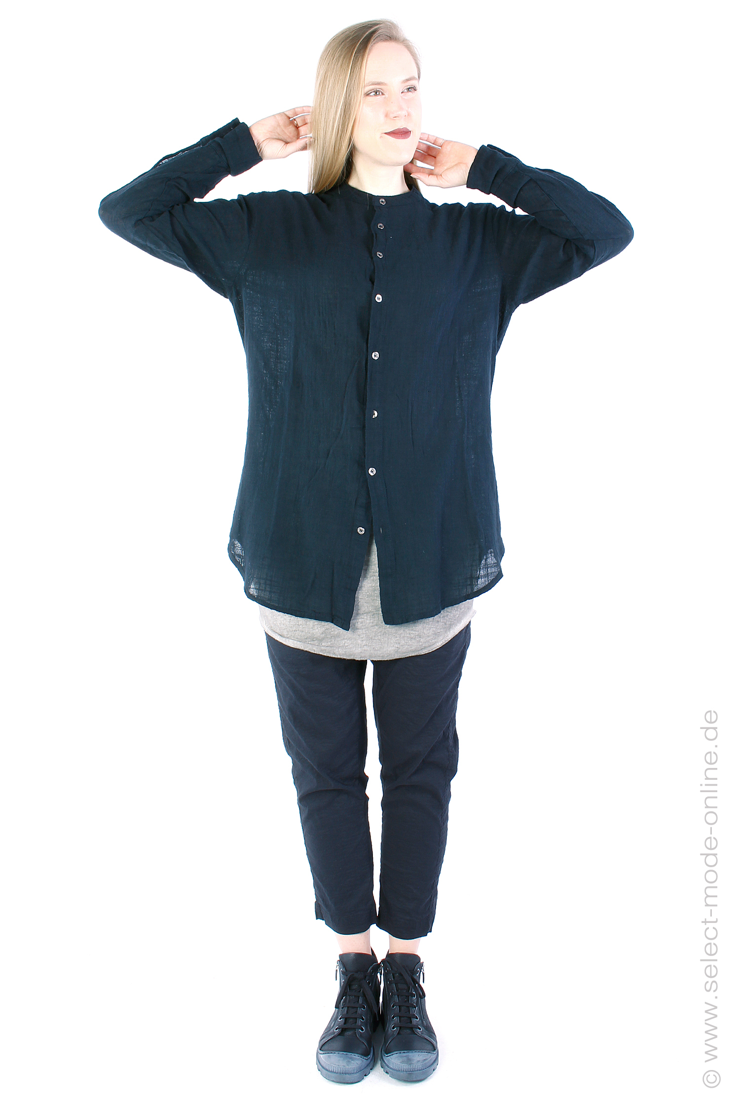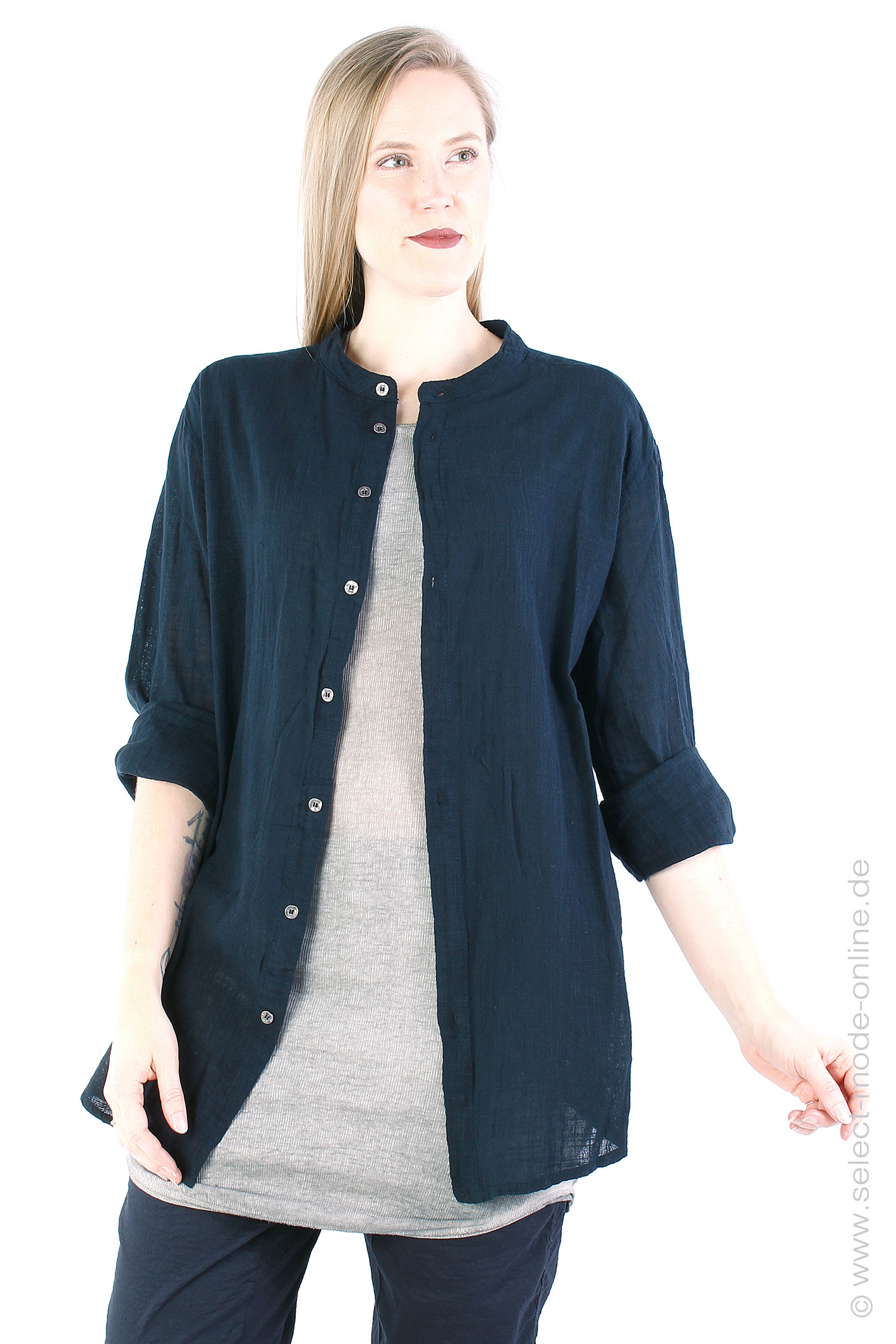 Baumwollhemd mit leichter Struktur, ohne Kragen, von
