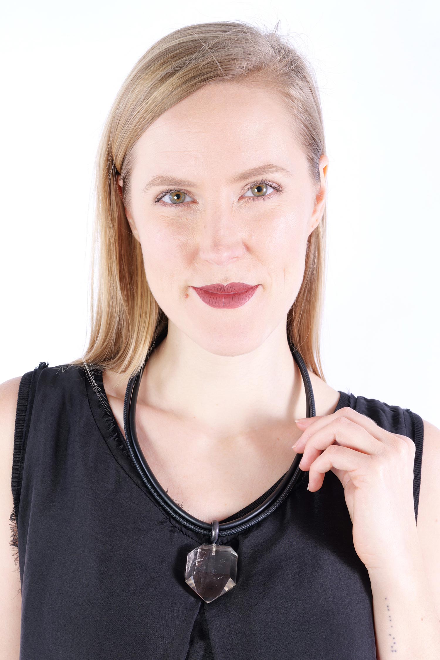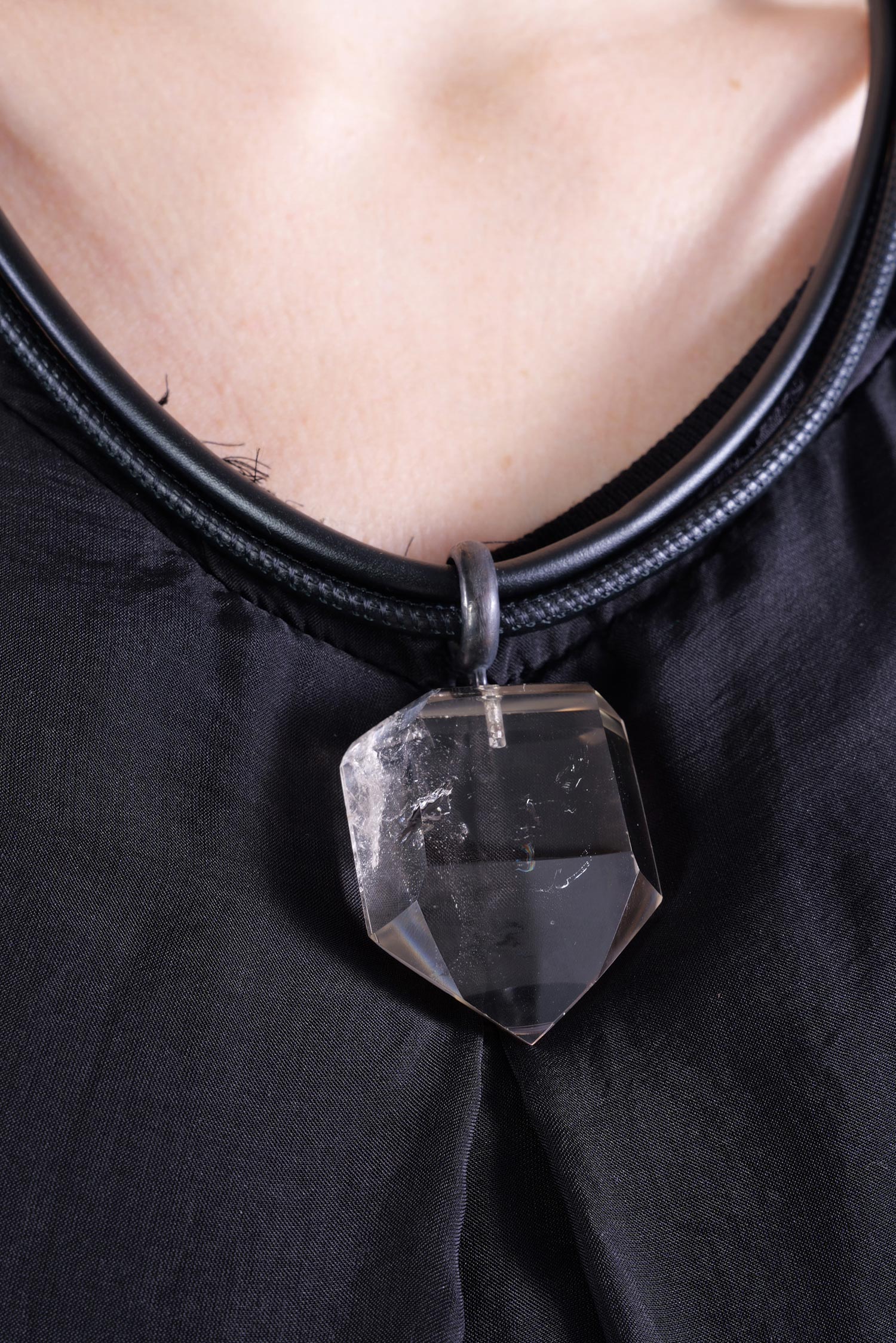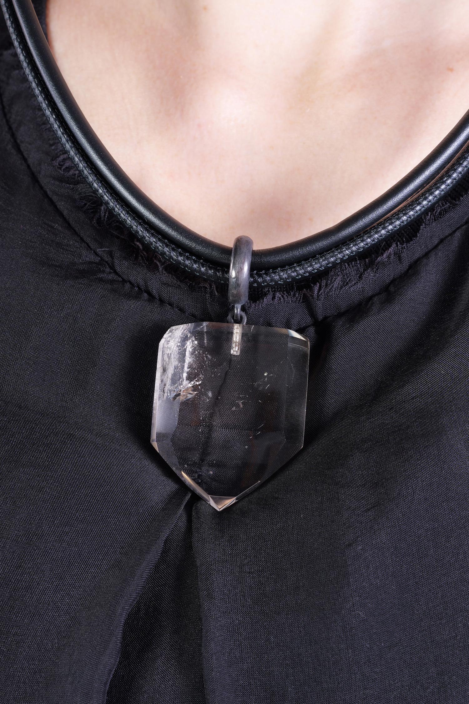 Lederkette mit 925 Silber und Bergkristall-Anhänger von Darkgem.