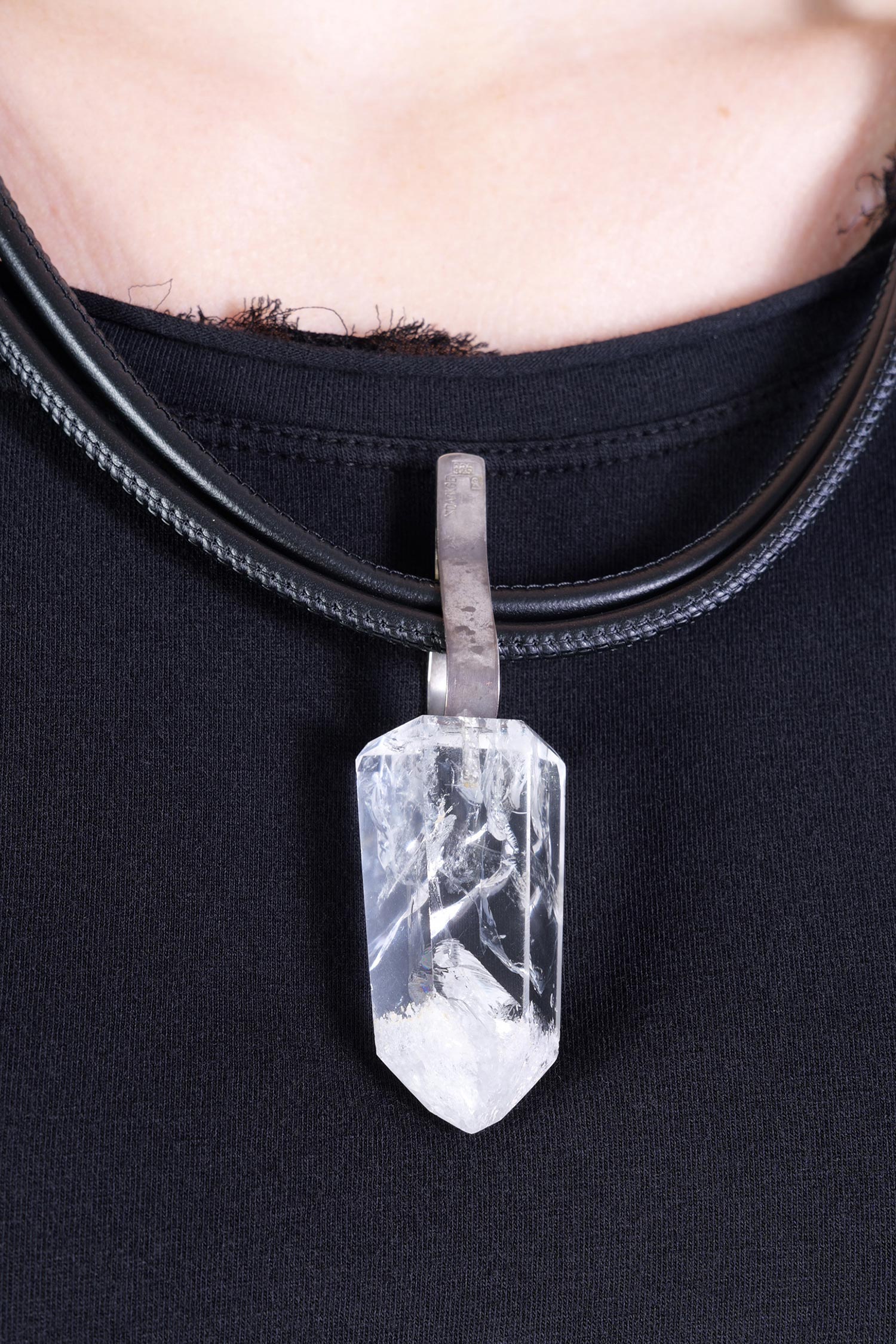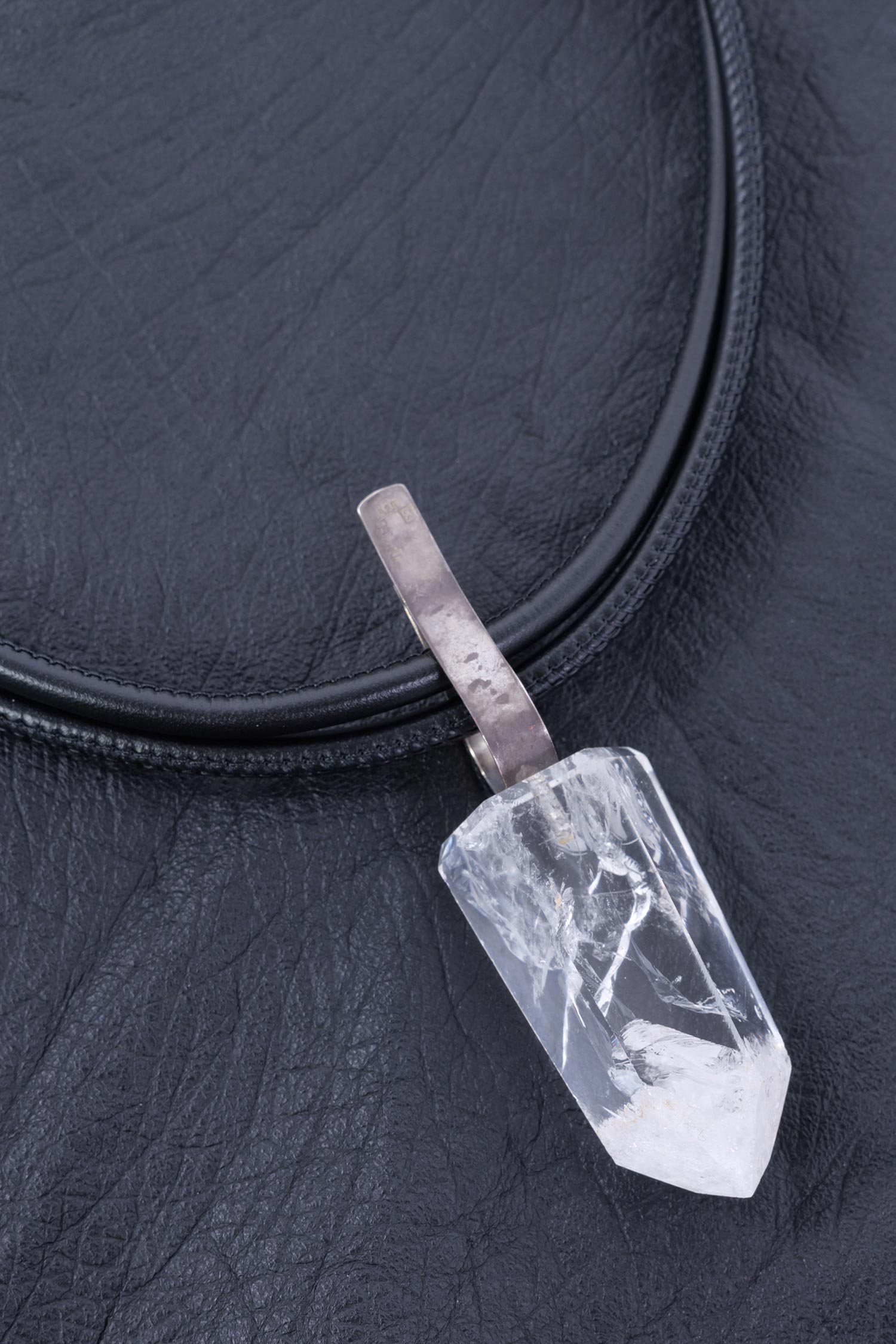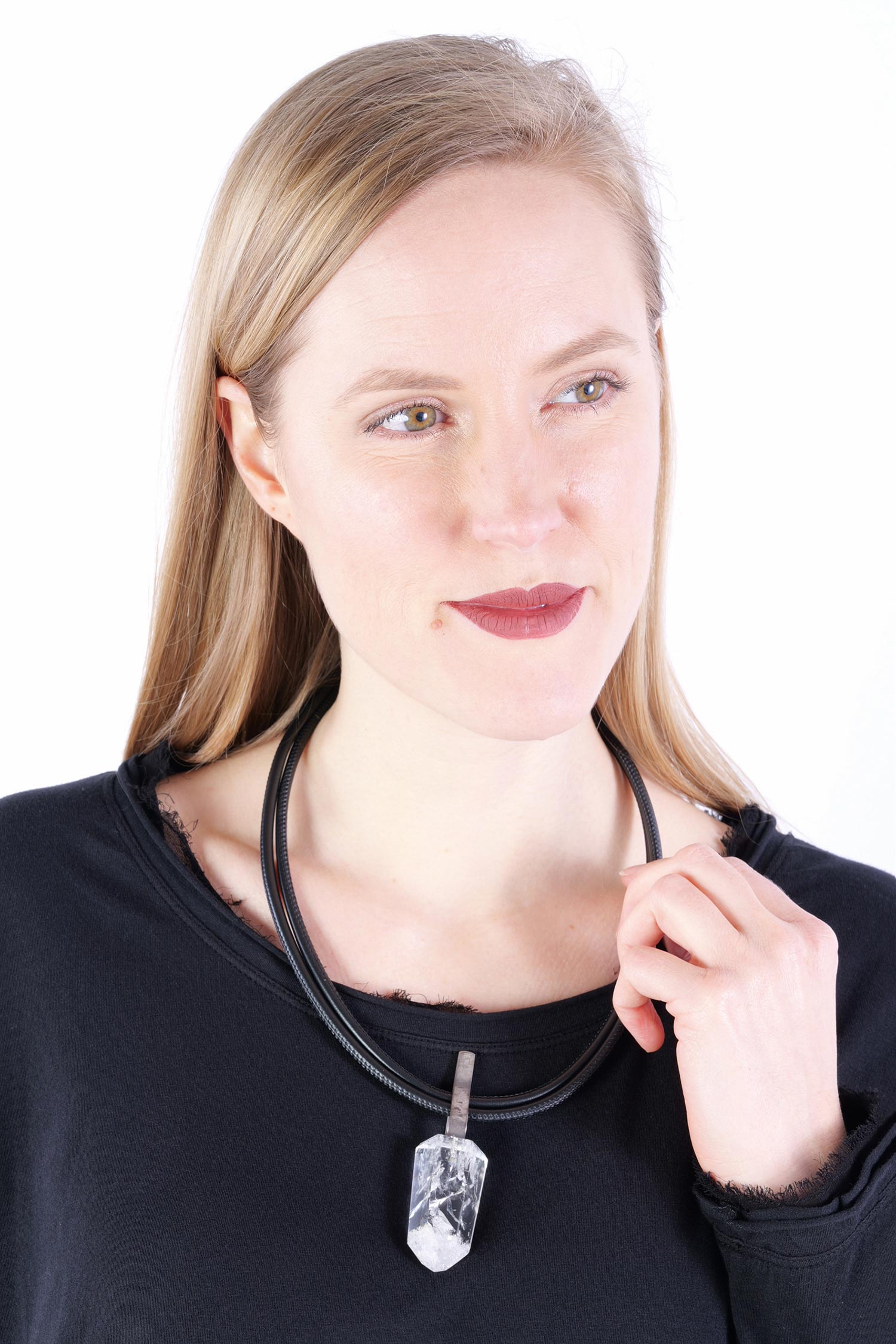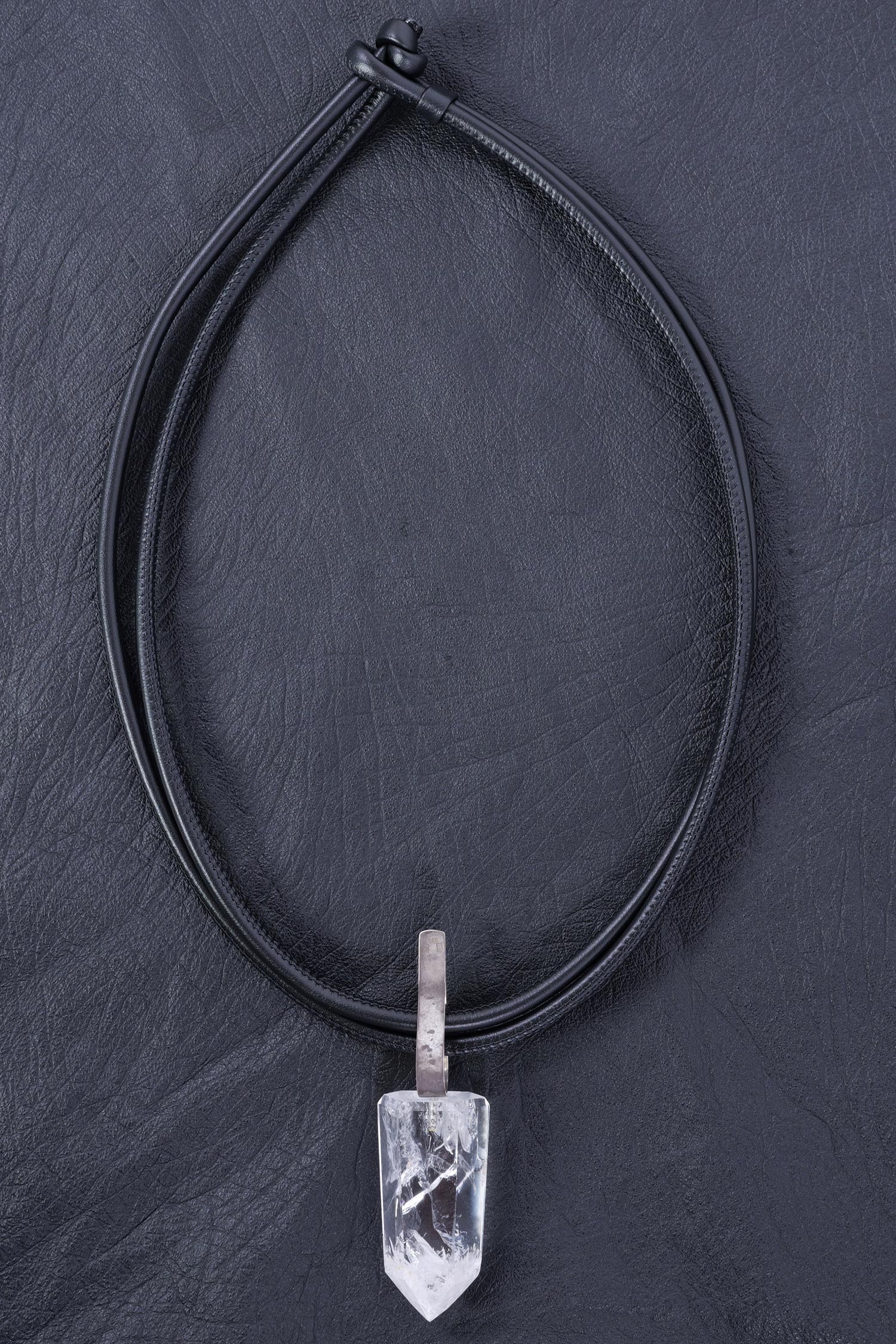 Lederkette mit 925 Silber und Bergkristall-Anhänger von Darkgem.