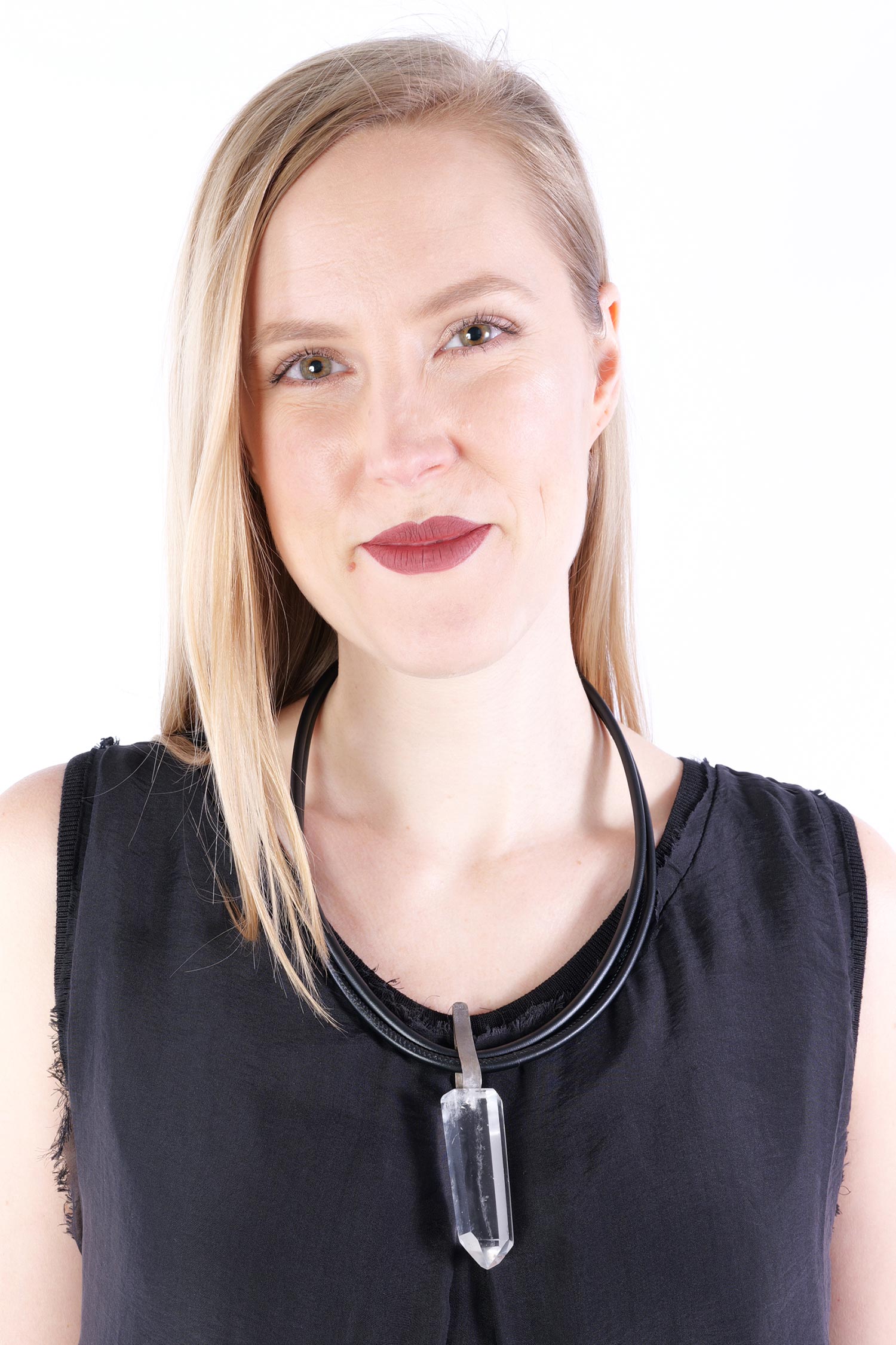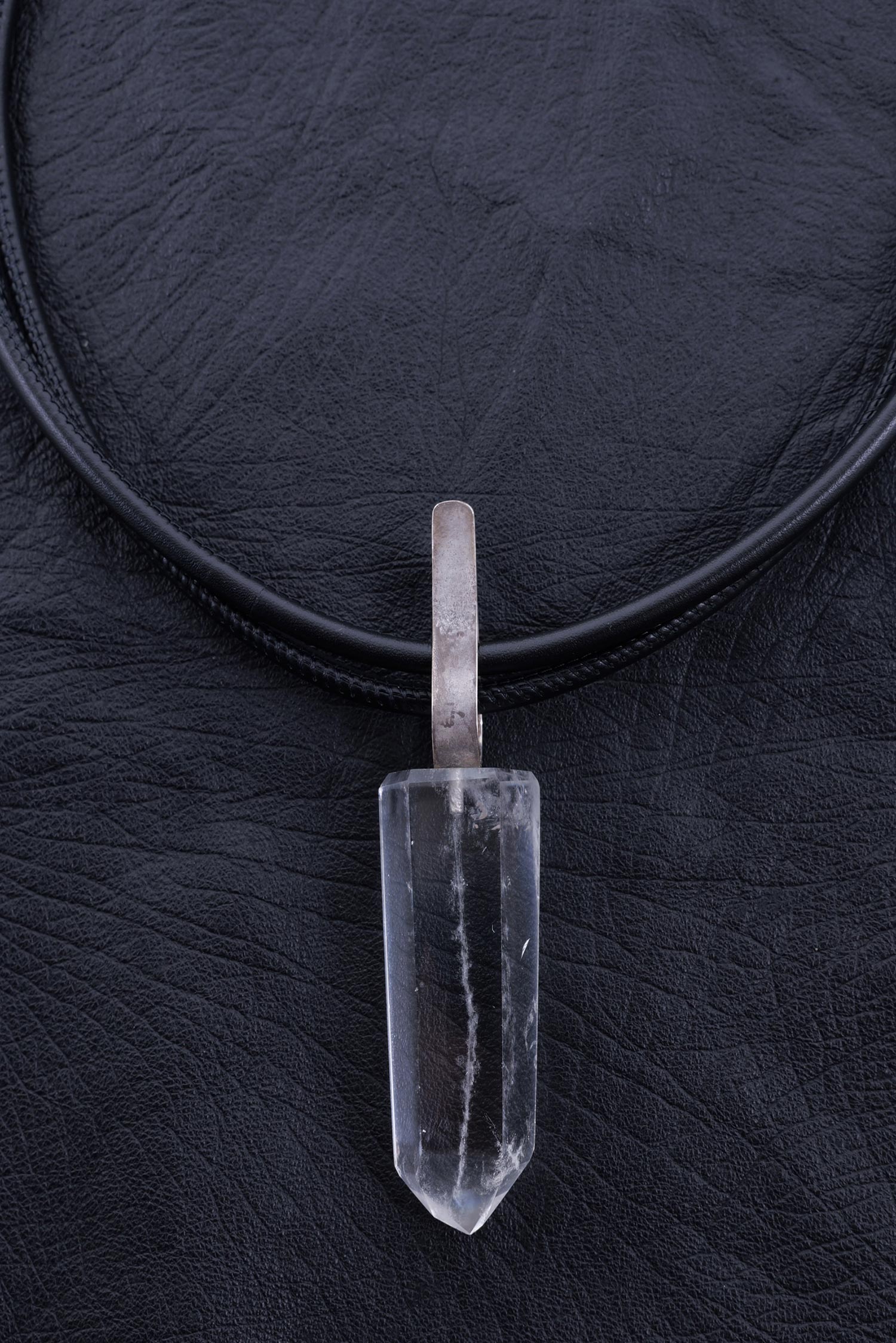 Lederkette mit 925 Silber und Bergkristall-Anhänger von Darkgem.