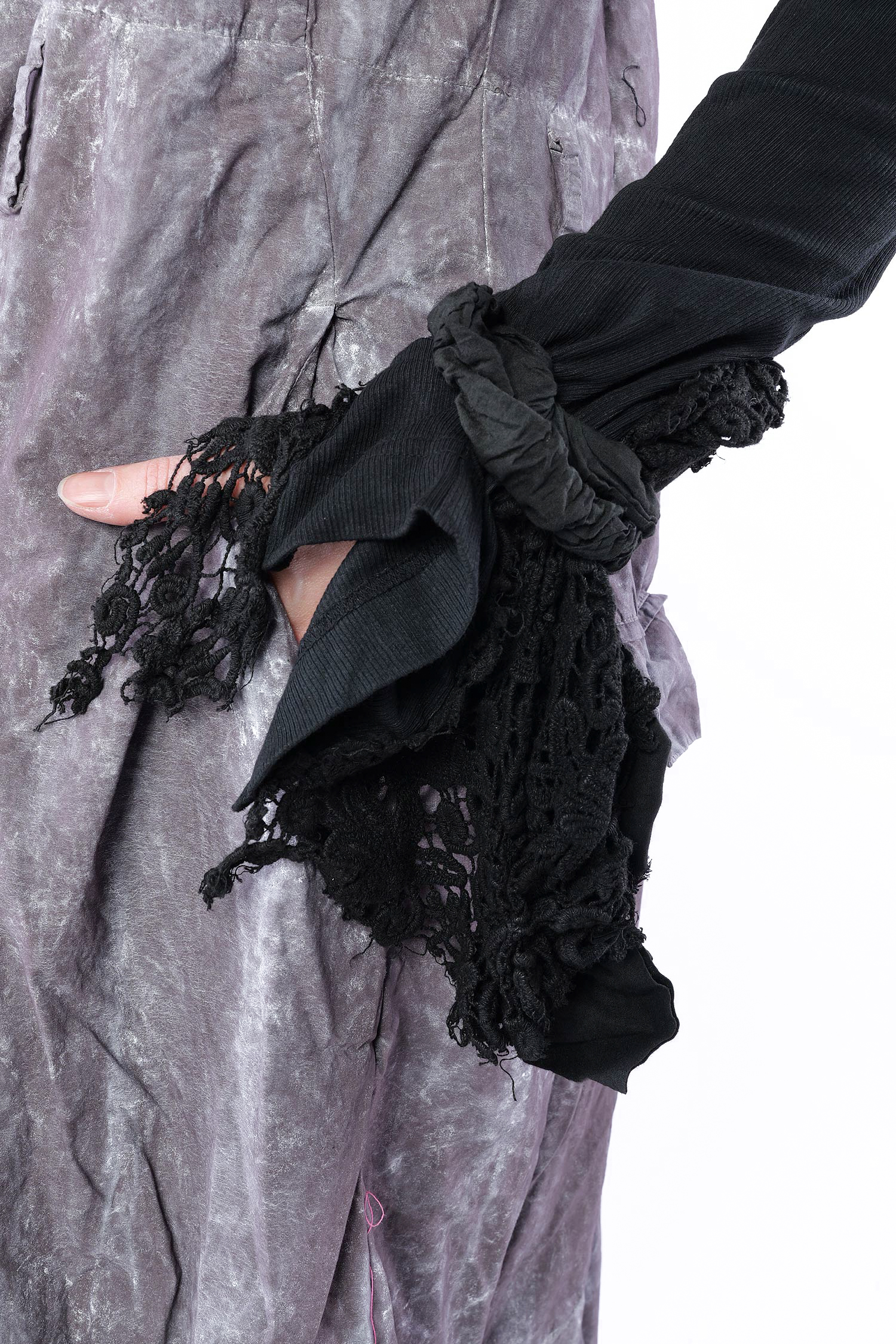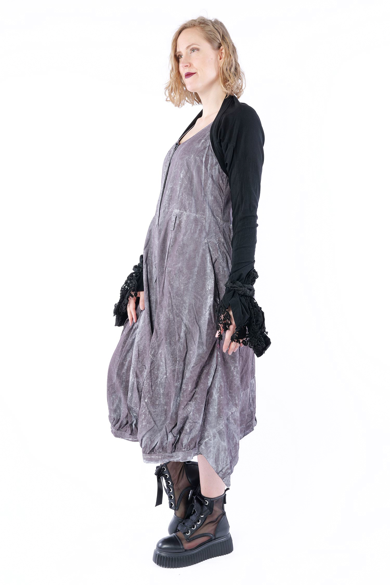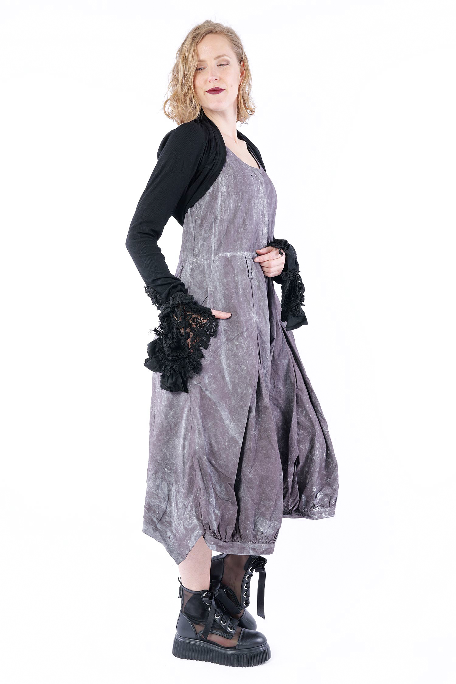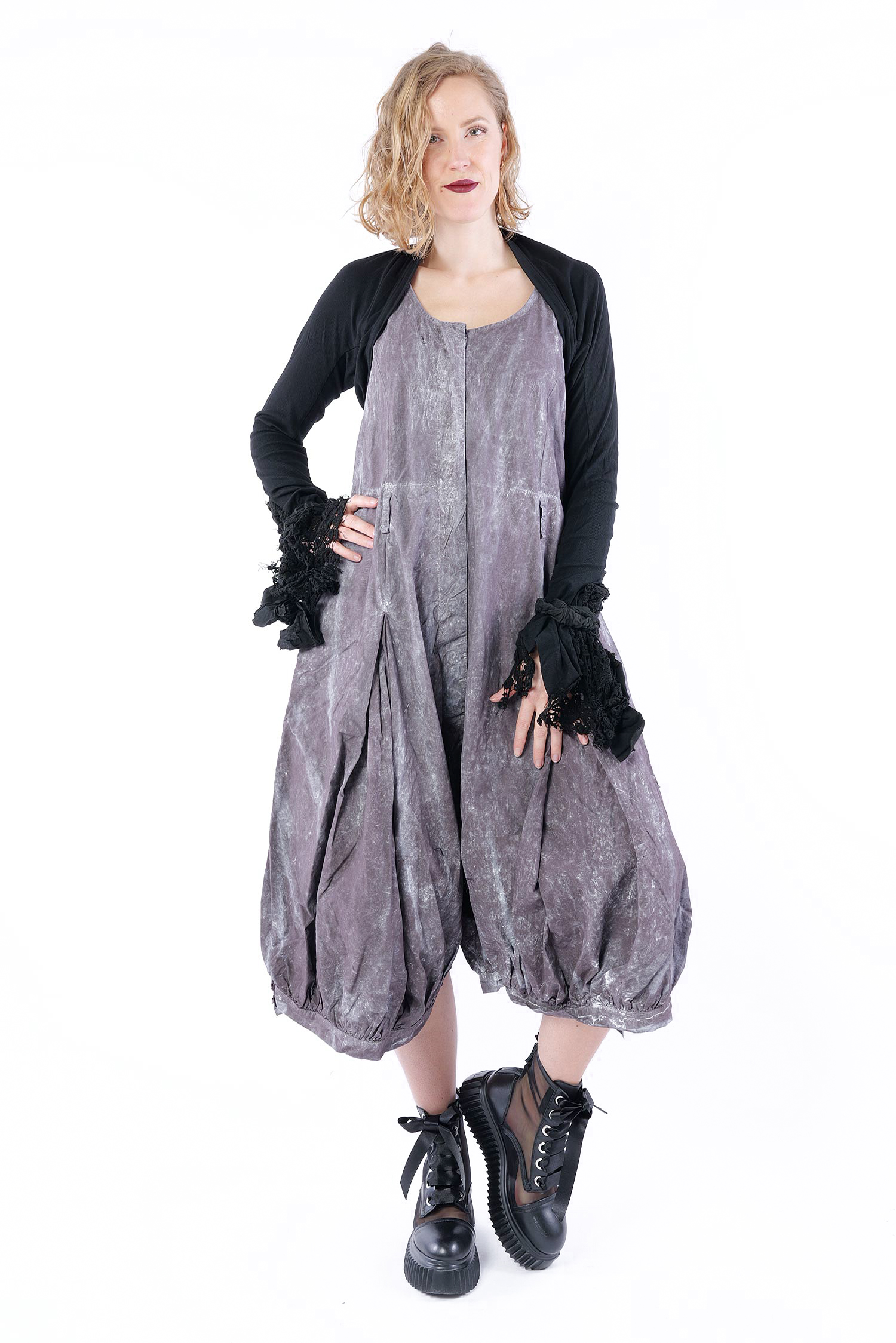 Details: - Wird offen getragen - Lange Ärmel - Ärmelsaum aus Baumwollspitze mit Gummiband zur „Befestigung“ - Used Look bei der Spitze - Korpus aus Rippjersey