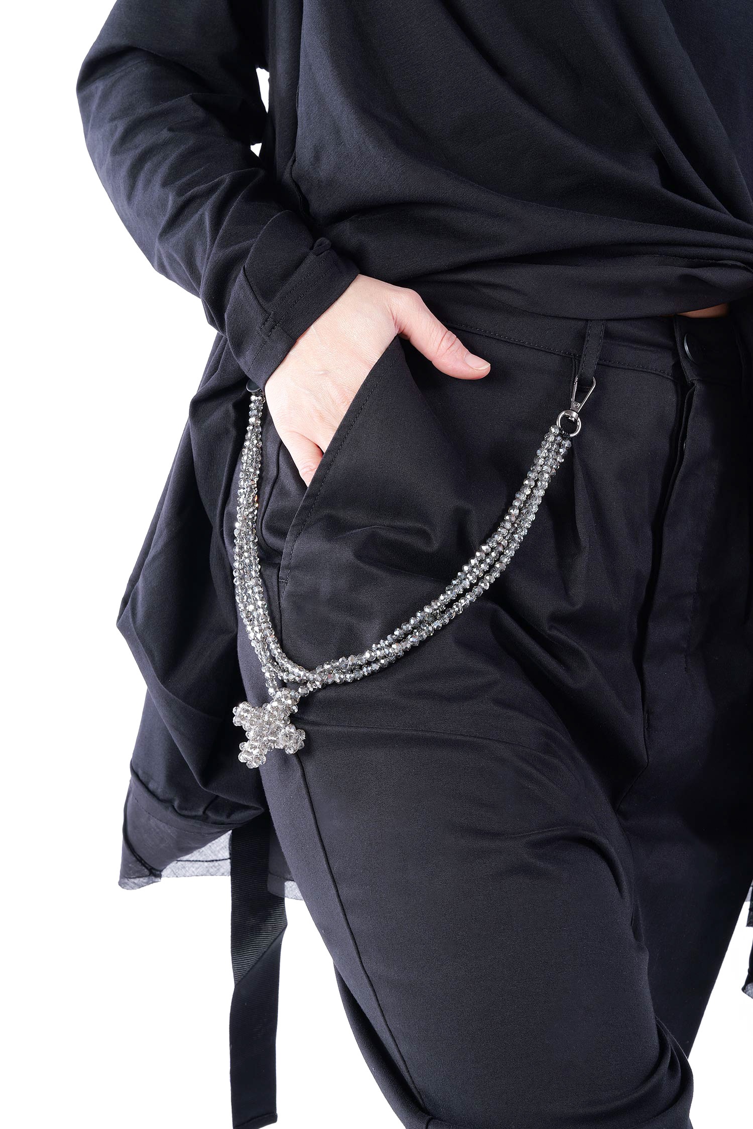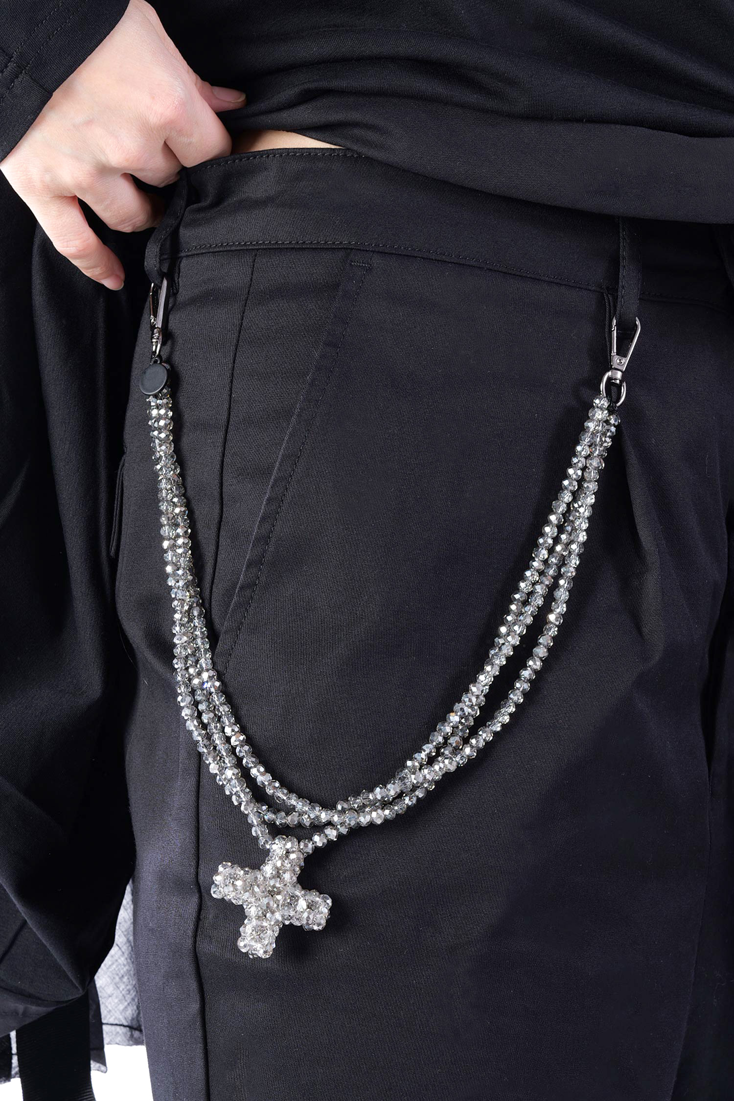 Kette zum Anclipsen an Gürtelschlaufen oder Knopflöcher mit einem Plus aus facettiertem Glas von Plü · Pluslavie.