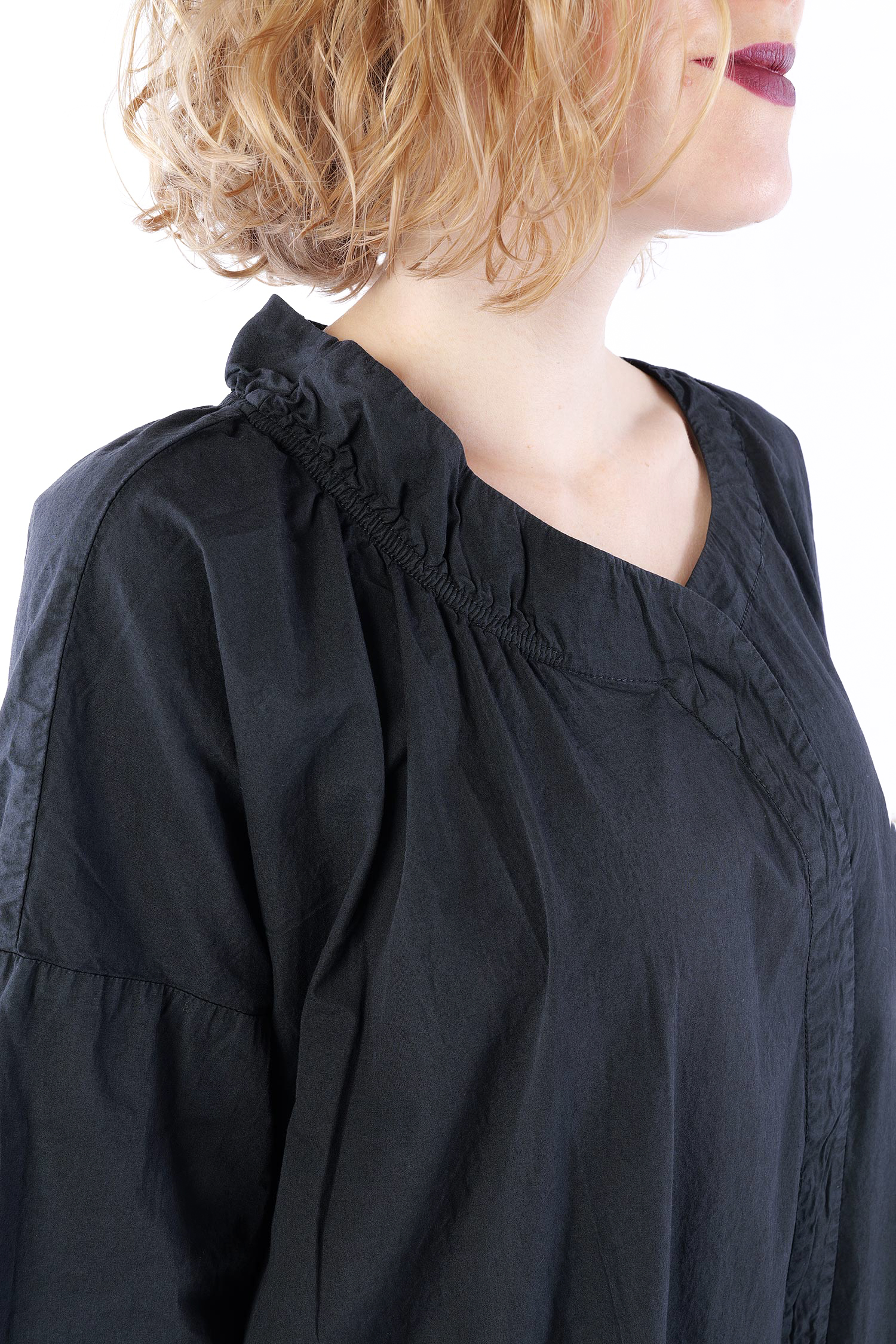 - Asymmetrisch einseitig geraffter Ausschnitt
