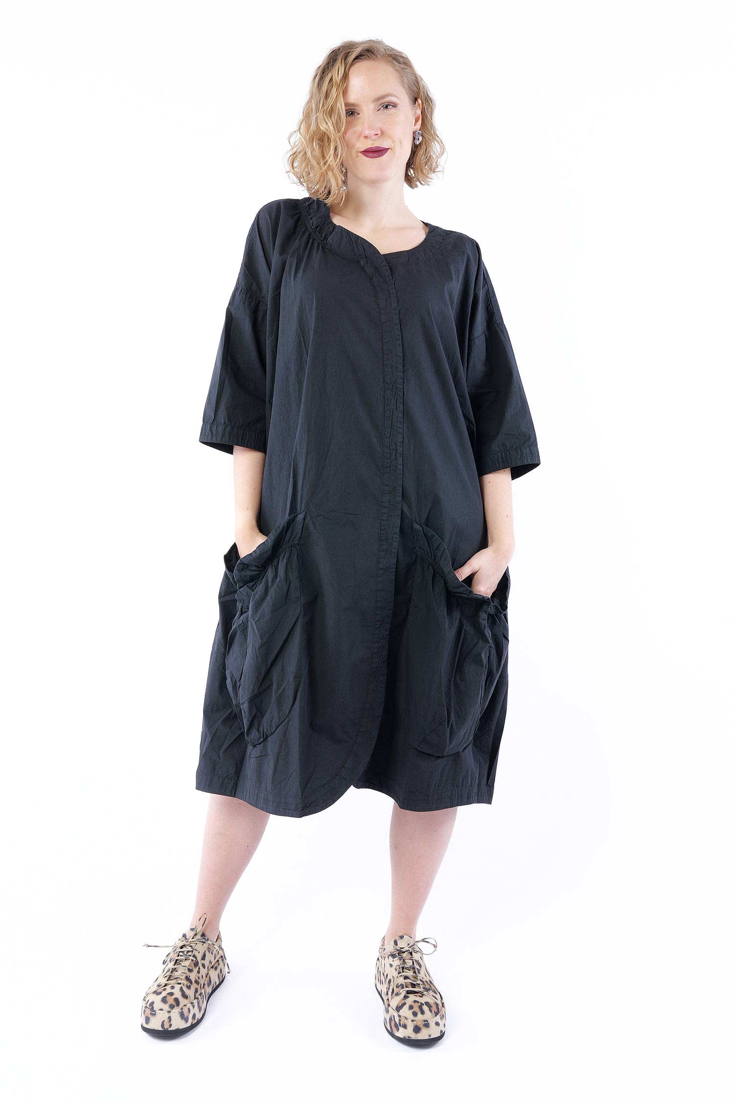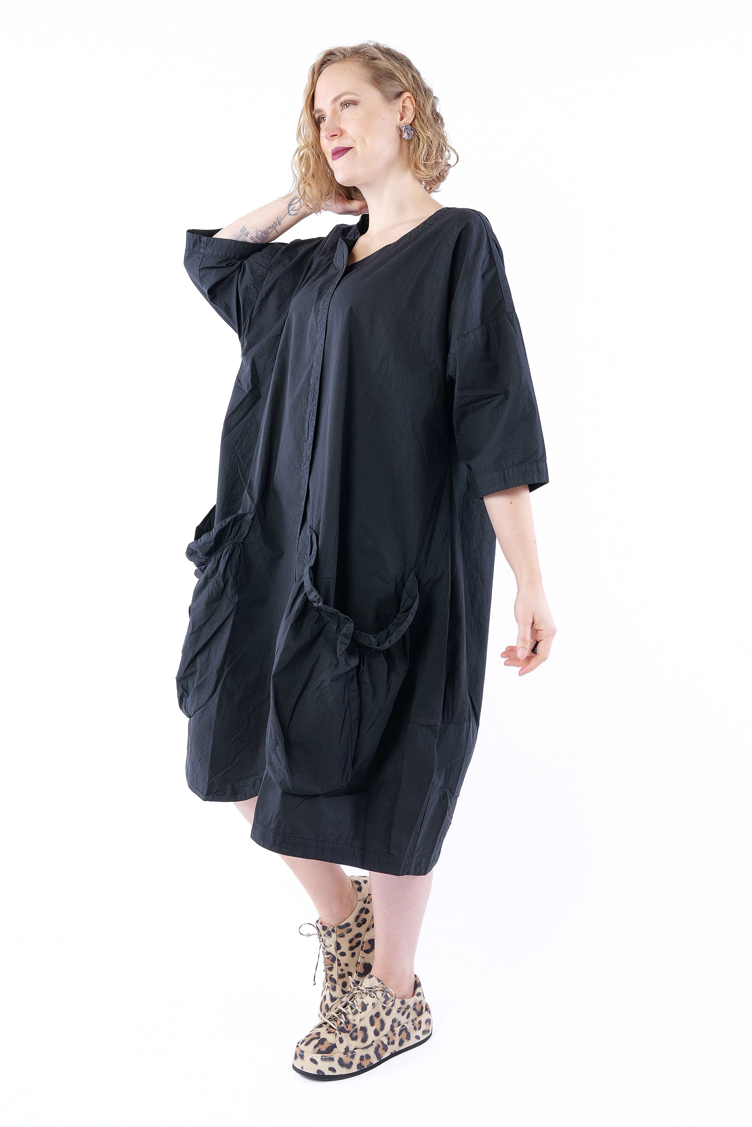 Oversize Leinenkleid - Schwarz - 1263540906