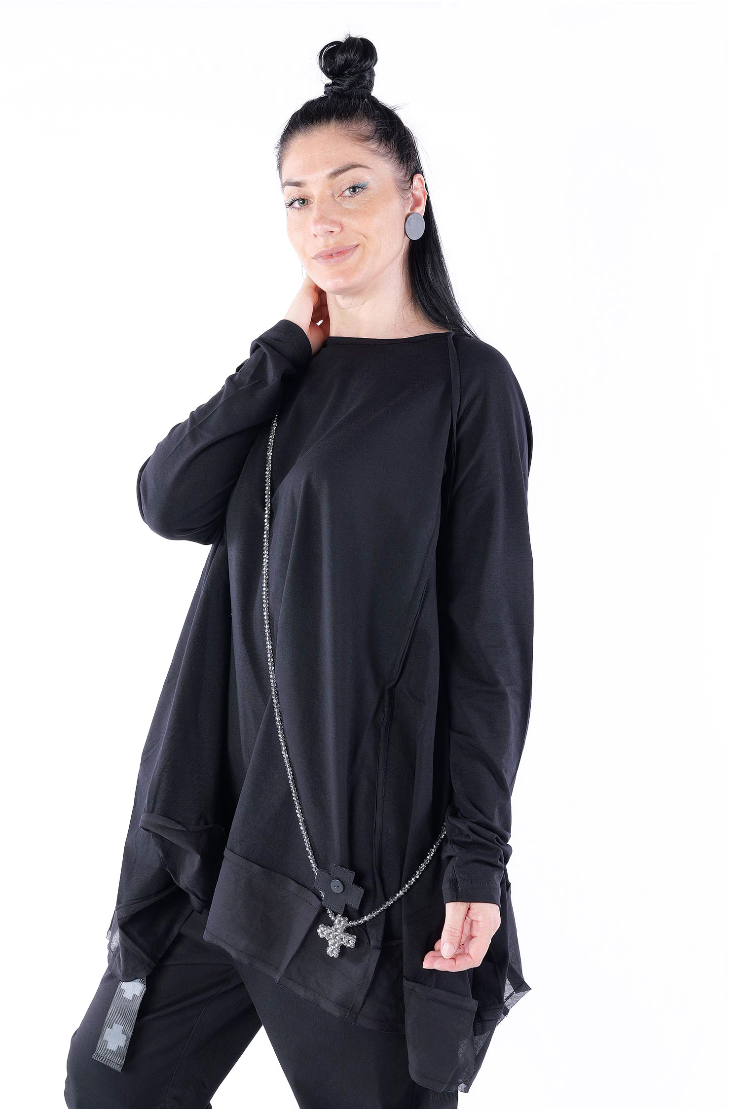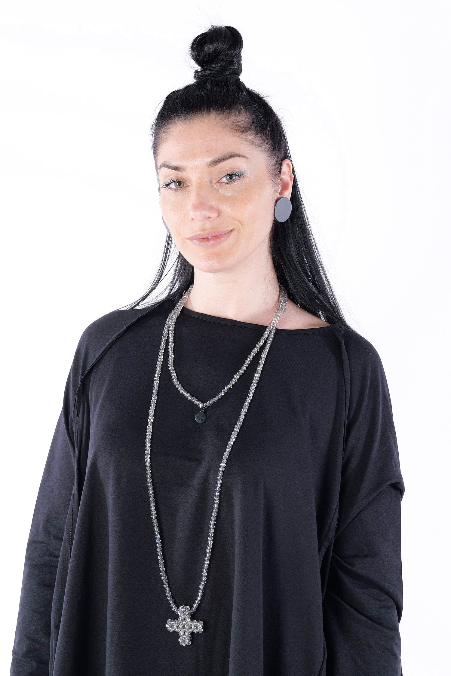 Extra lange Kette mit einem Plus aus facettiertem Glas von Plü · Pluslavie.