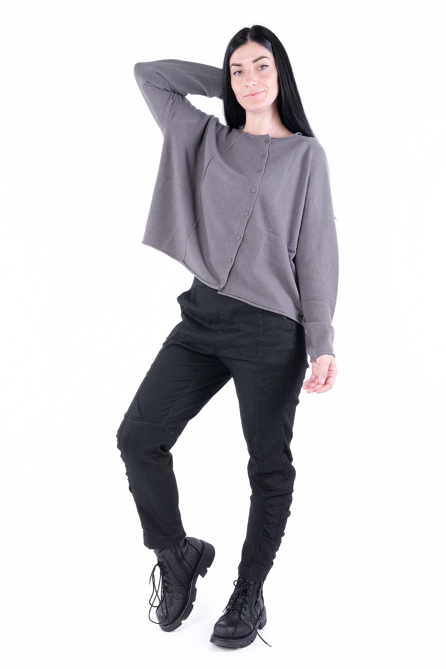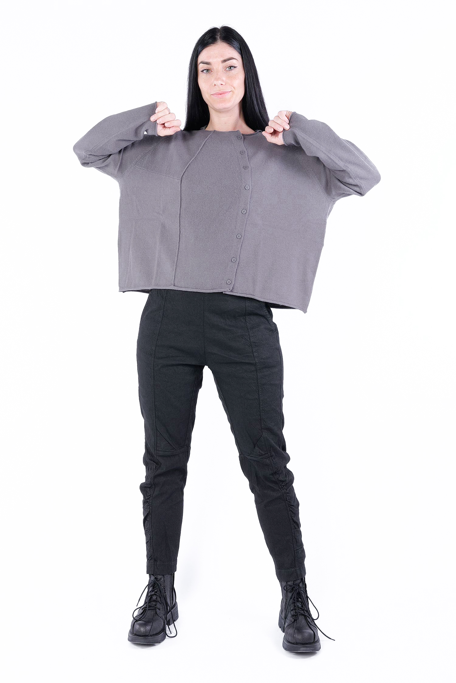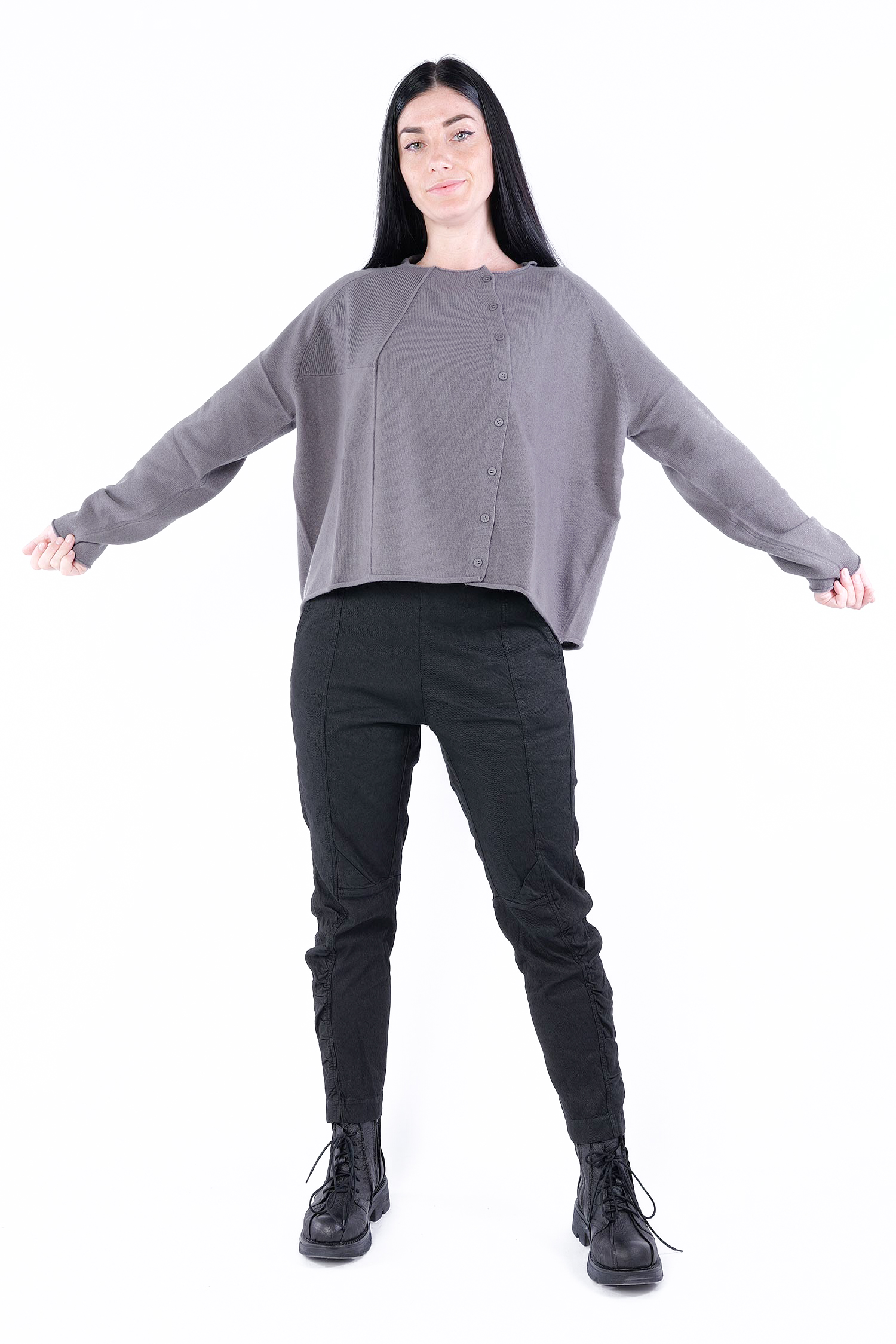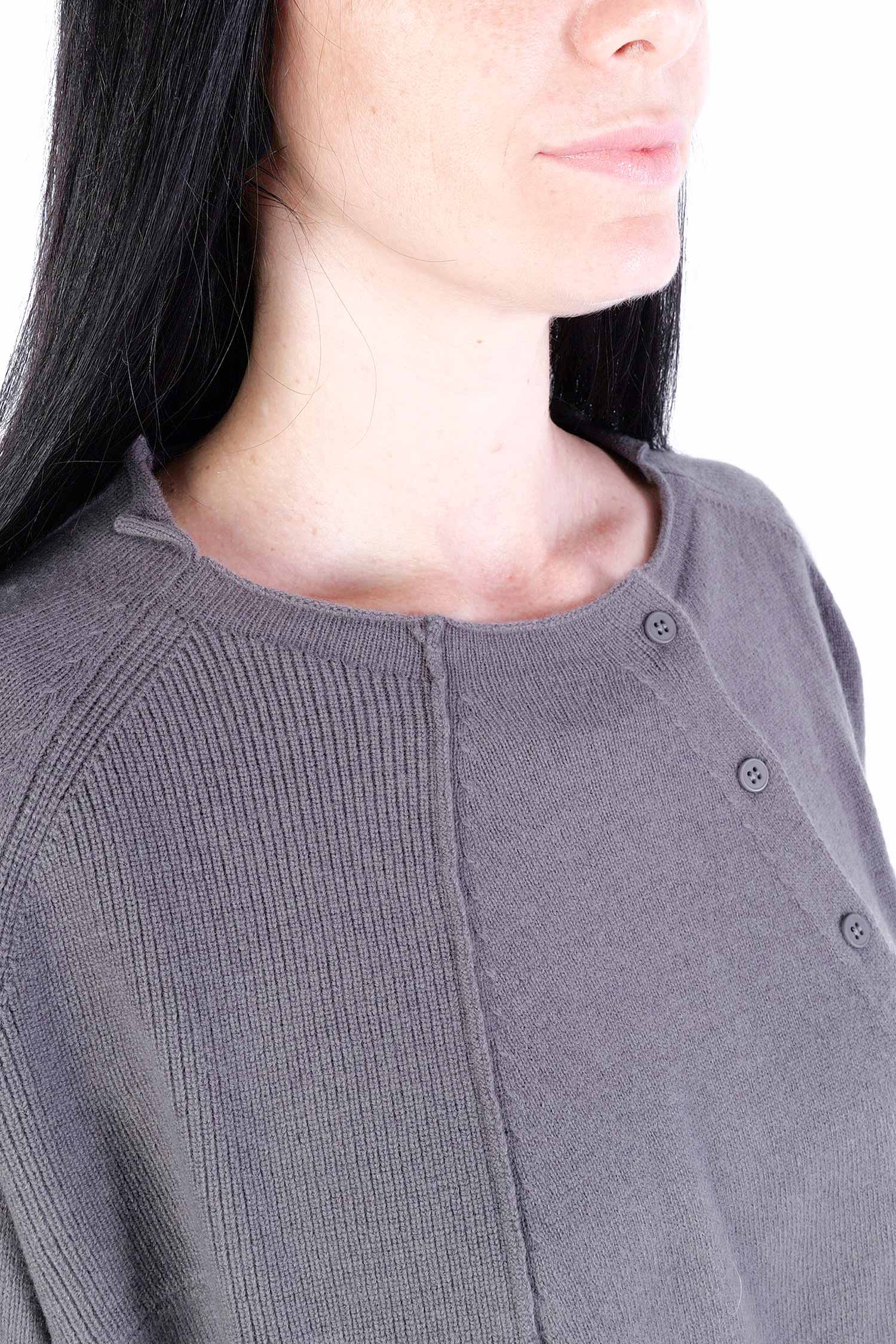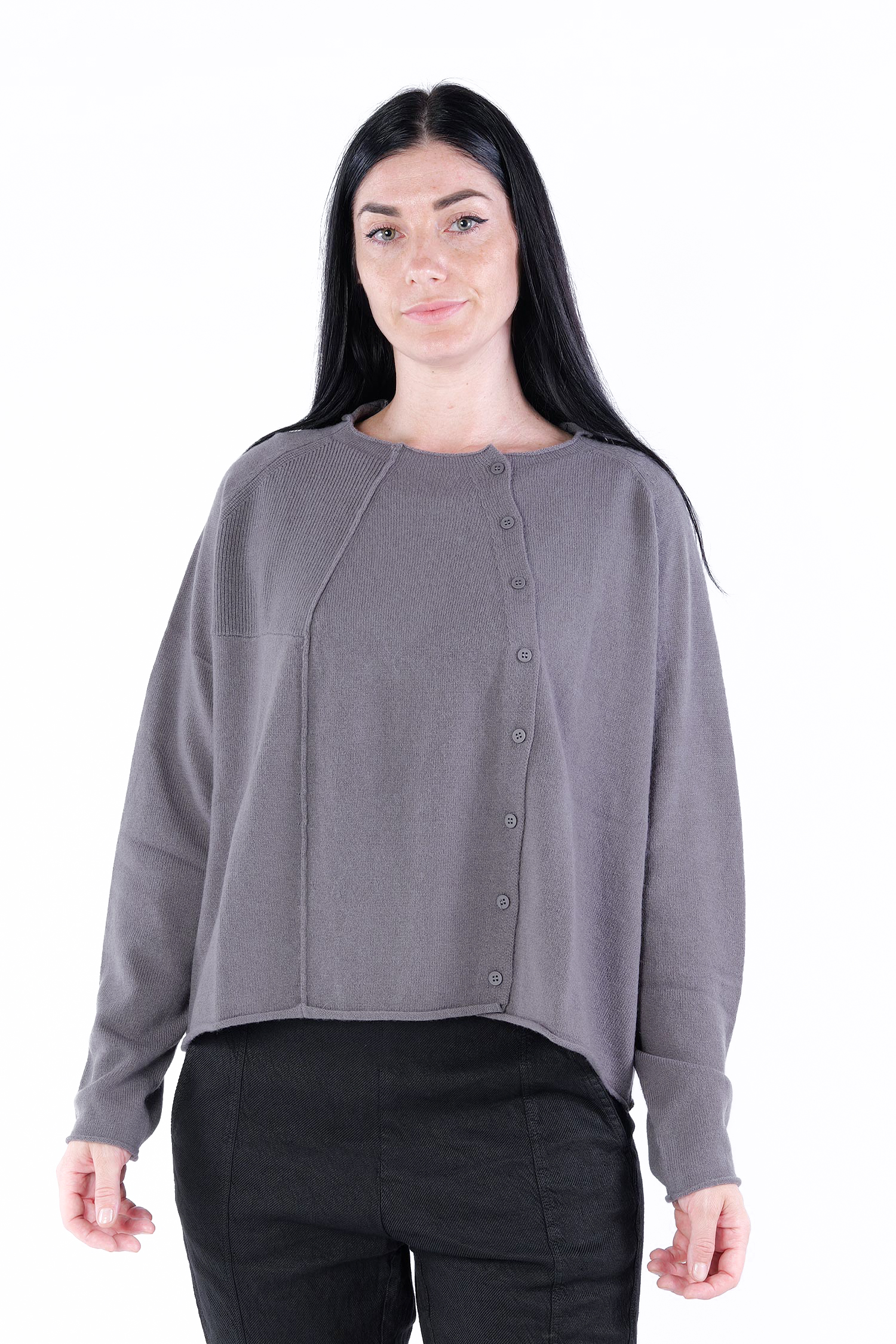 Details: - Asymmetrische Knopfleiste - Weit und kastig - Feinstrick - Ziernähte - Raglanärmel - Säume rollen sich nach außen - Rundhalsausschnitt, hinten mit kleinem Stehkragen