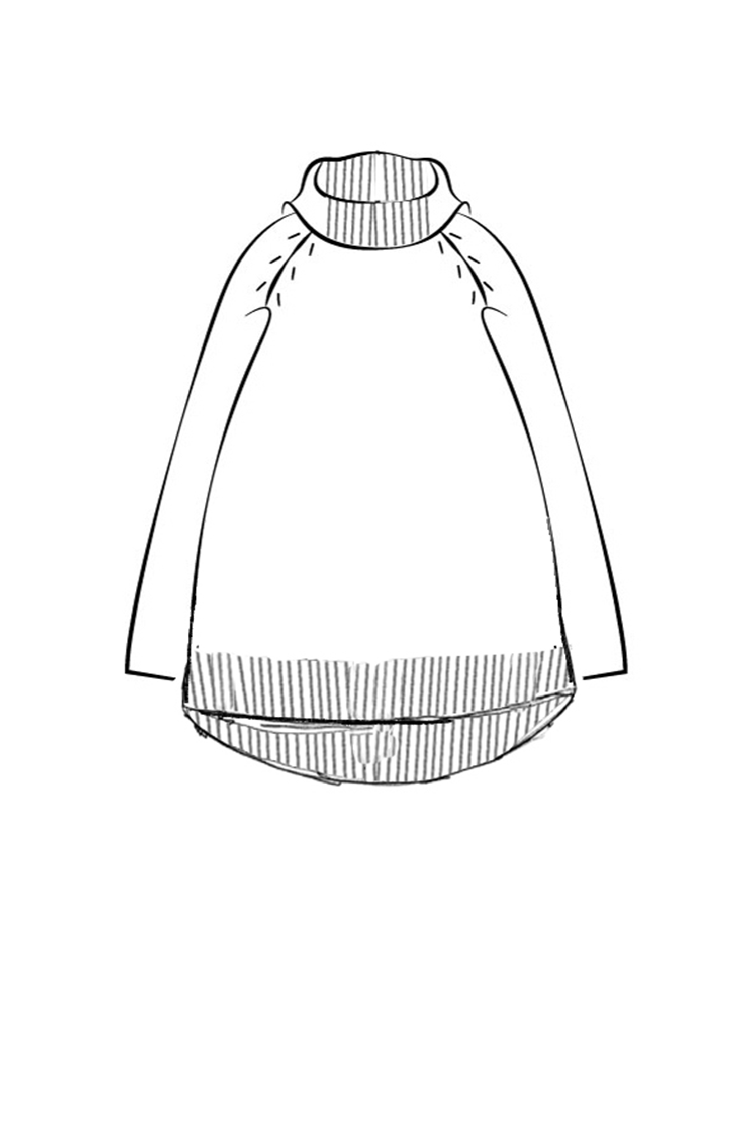 Details: - Weit und kastig - Feinstrick - Rippstricksaum und Rollkragen - Hinten länger - Raglanärmel - Halsferner Rollkragen aus Rippstrick - Säume rollen sich nach außen an den Ärmeln