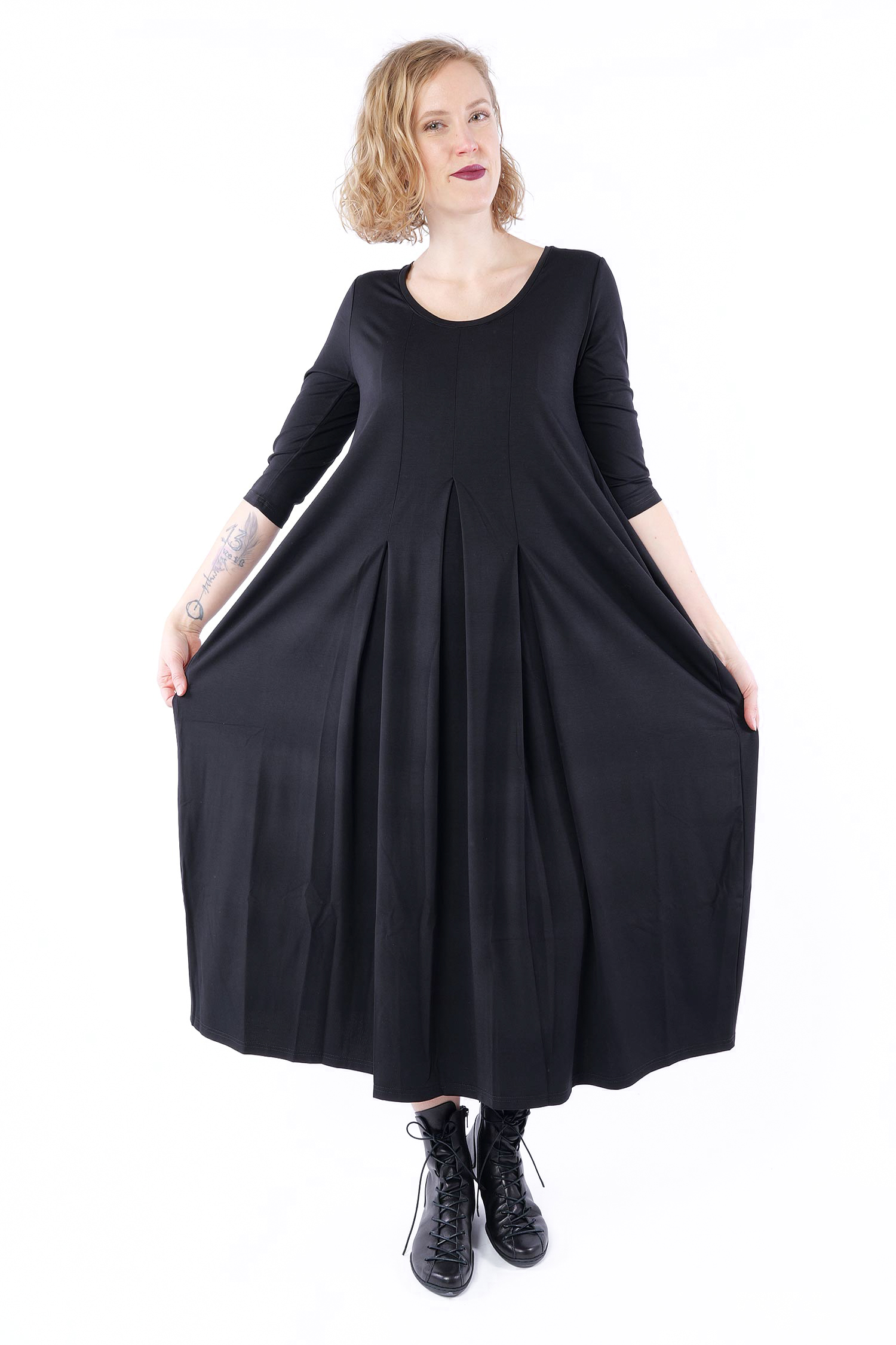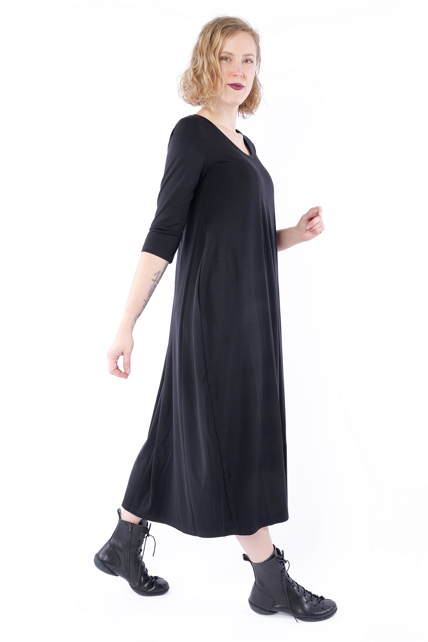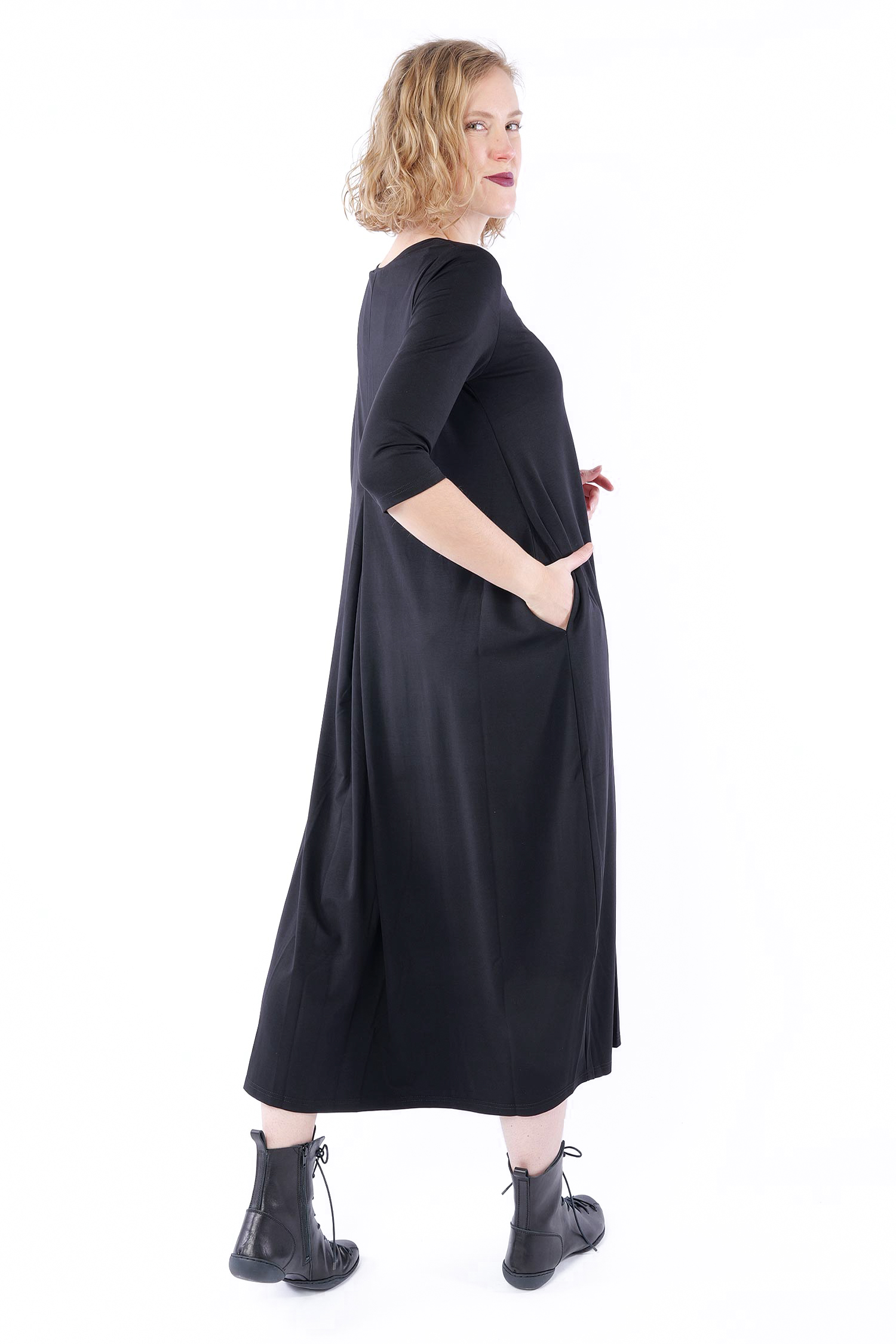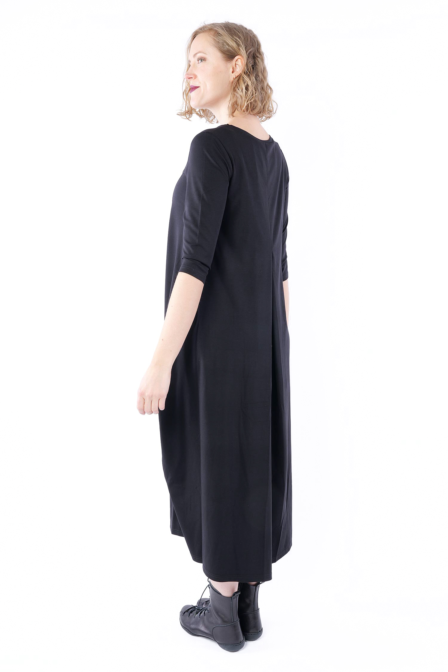 Fließendes langes Kleid - Schwarz - S26-20