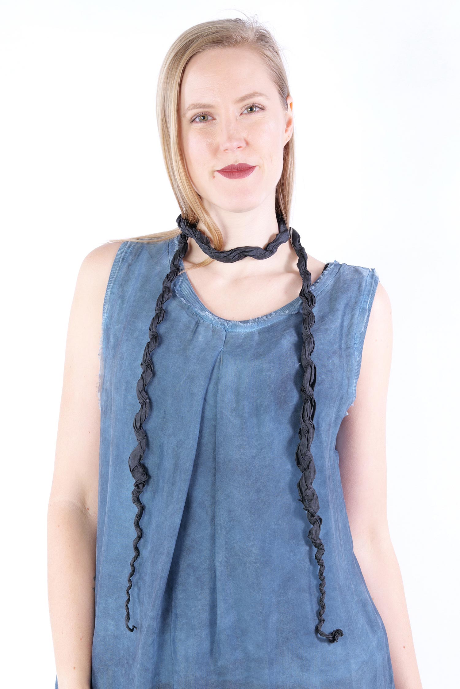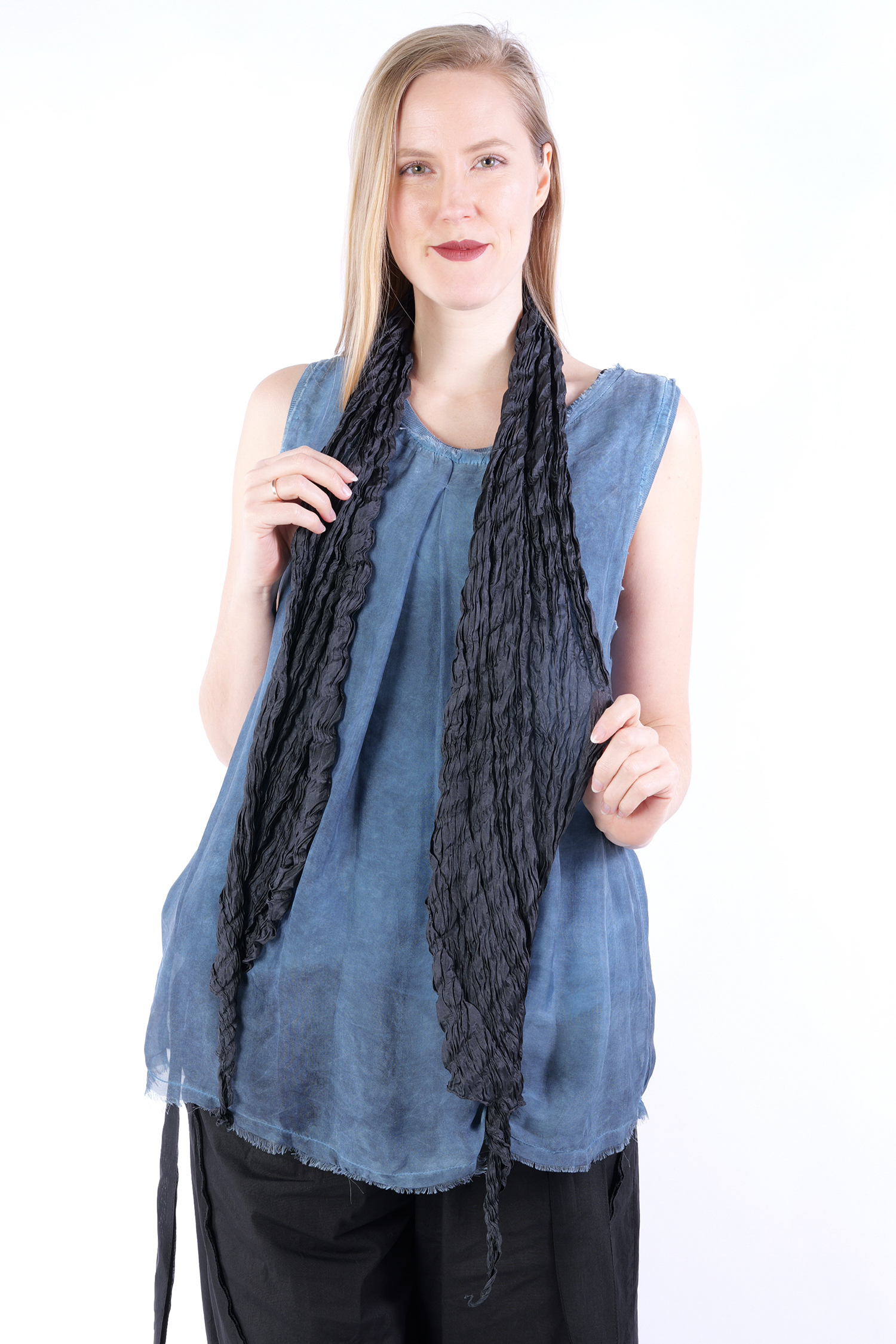 Gekräschter Seidenschal 180x45 - Schwarz - Cornuta