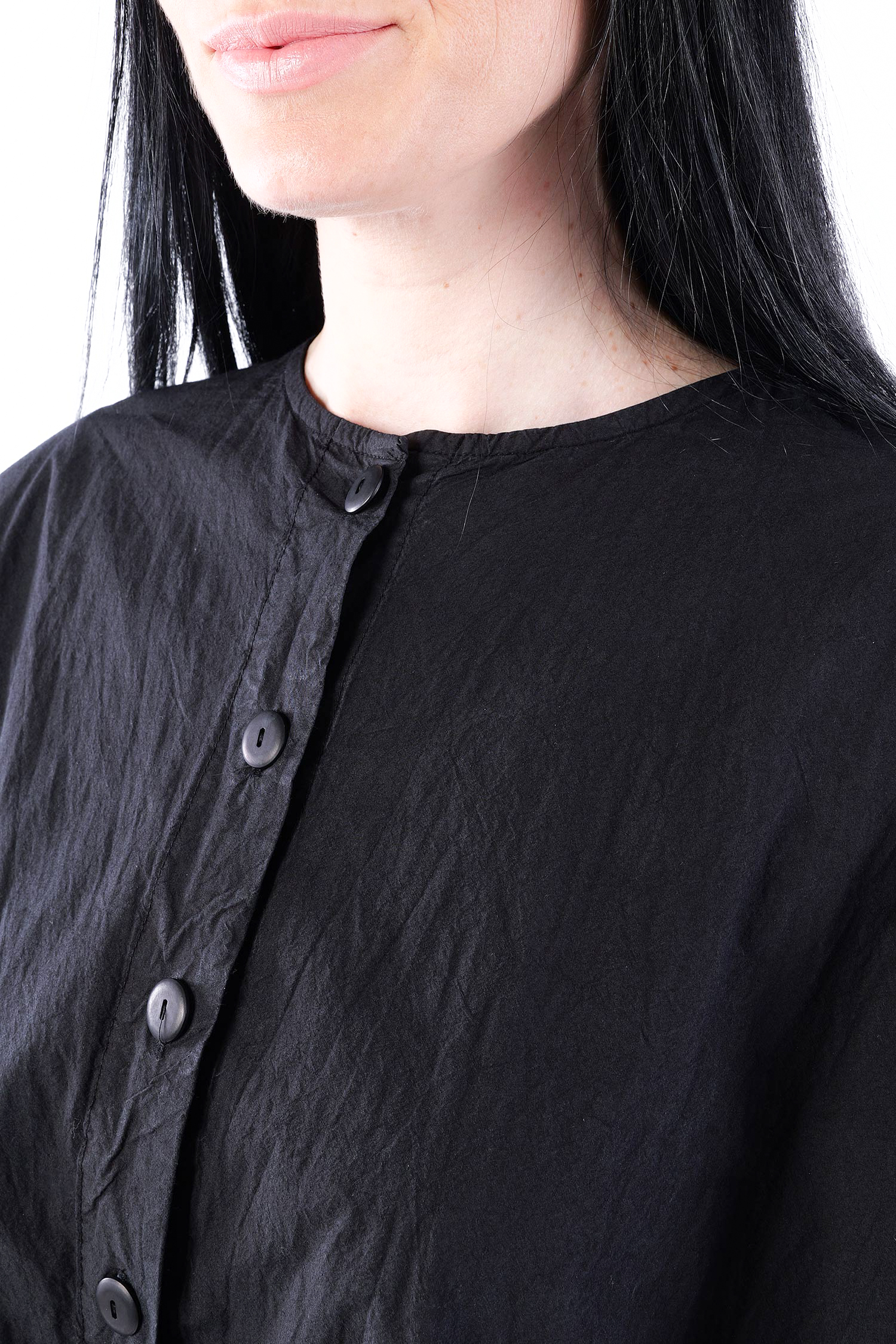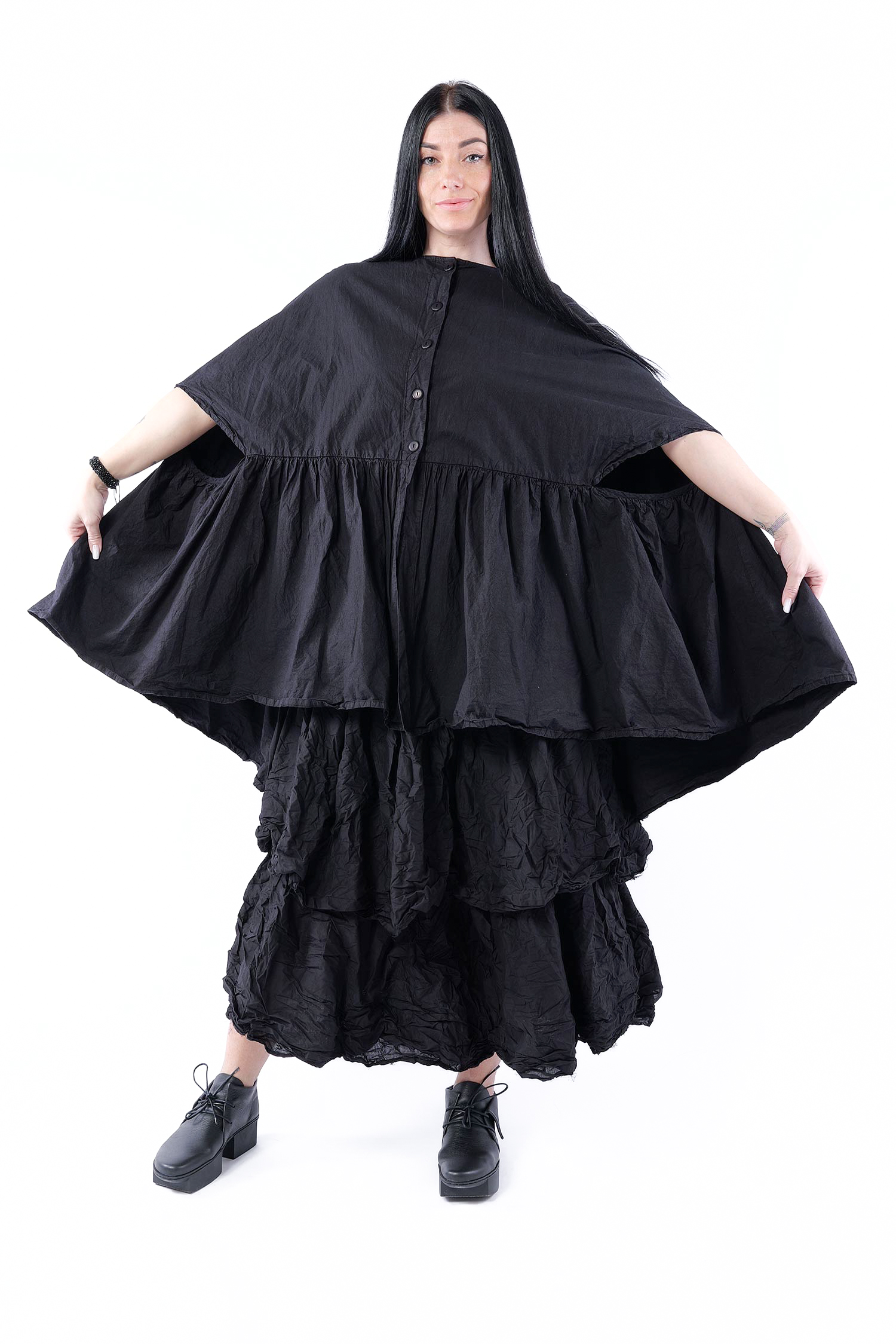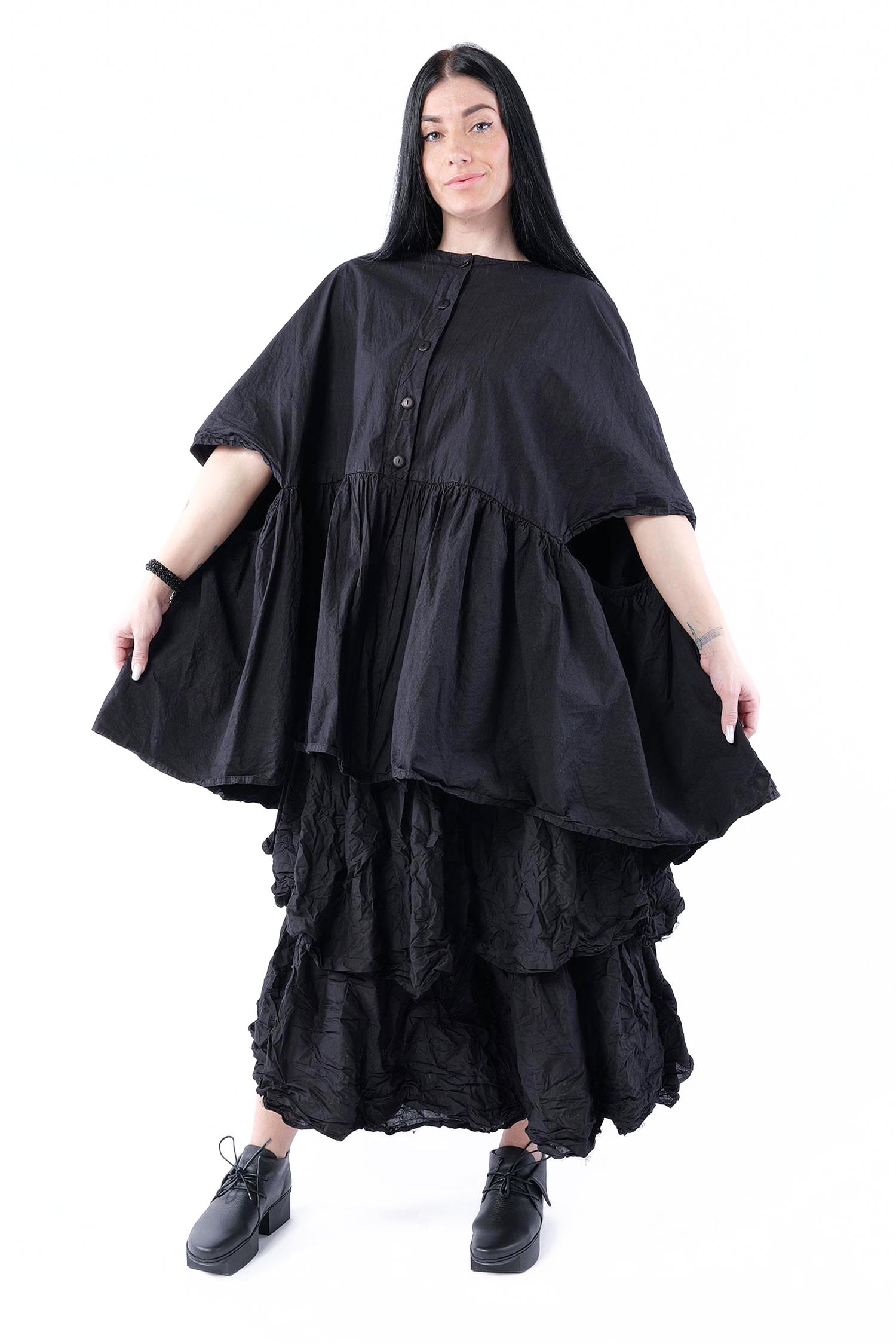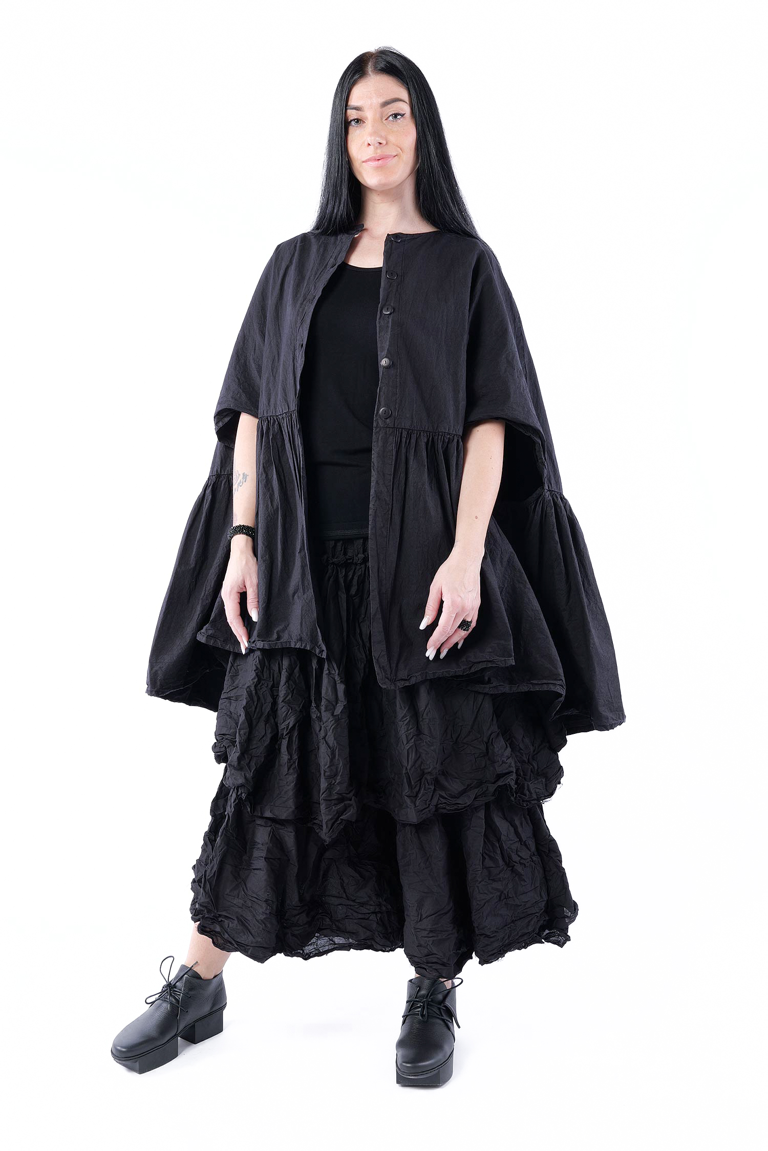 Details: - Knopfleiste - Geräuschebaumwolle - Hinten länger - Überschnittene Schulter ohne Ärmelnaht - Ziernaht in der hinteren Mitte im oberen Bereich - Armlöcher etwas nach vorne versetzt - Capeform - Rundhalsausschnitt - Versäuberte Kanten