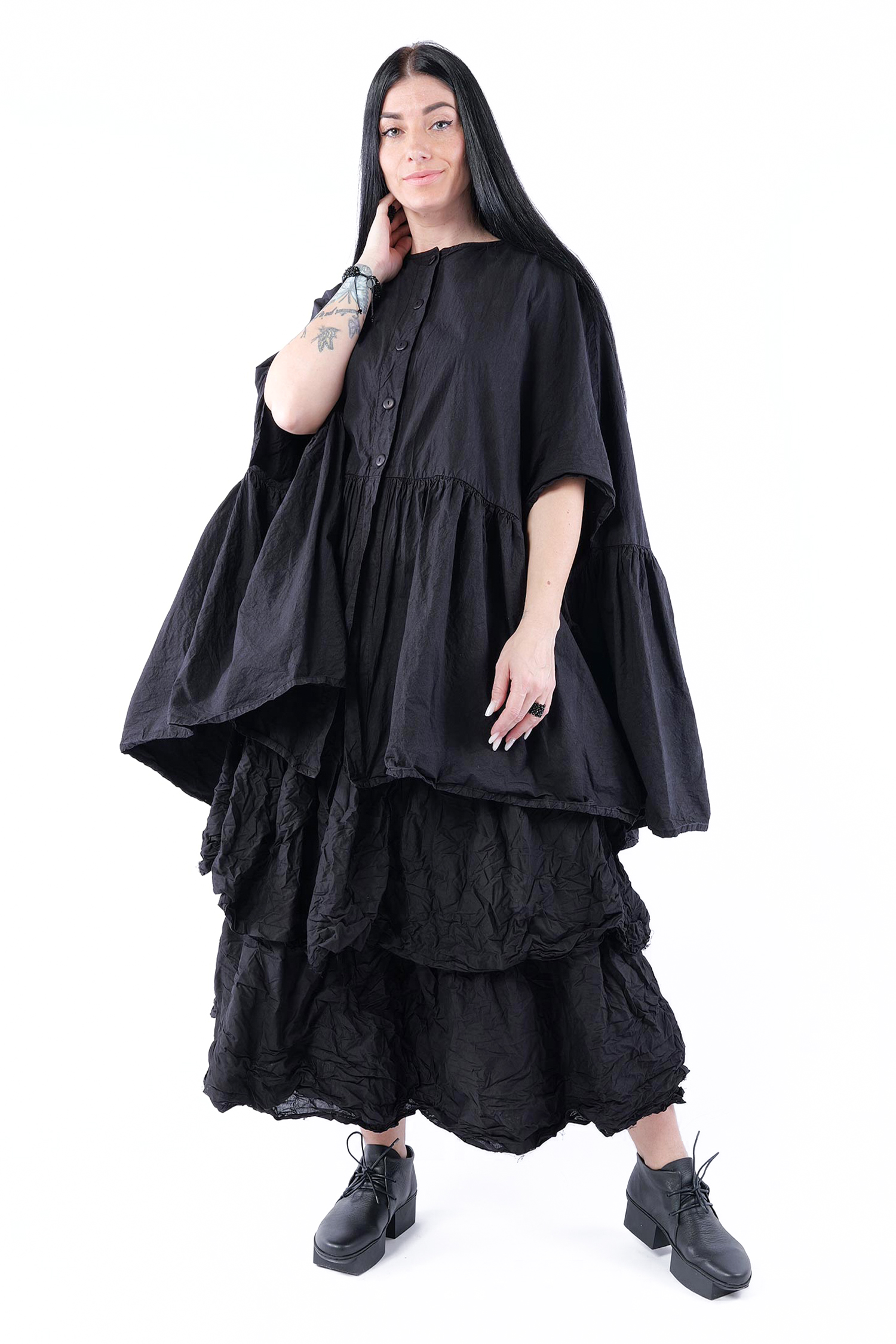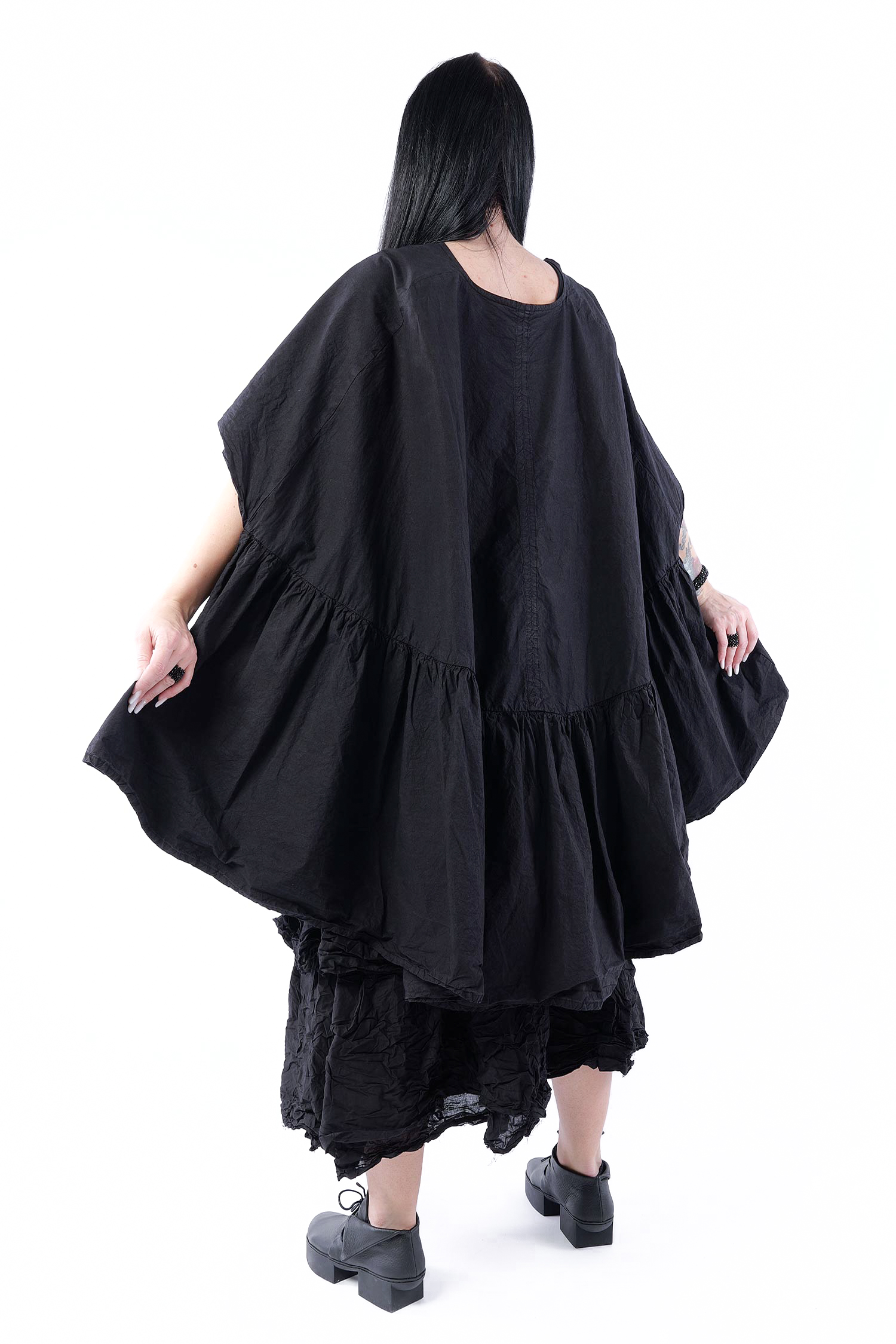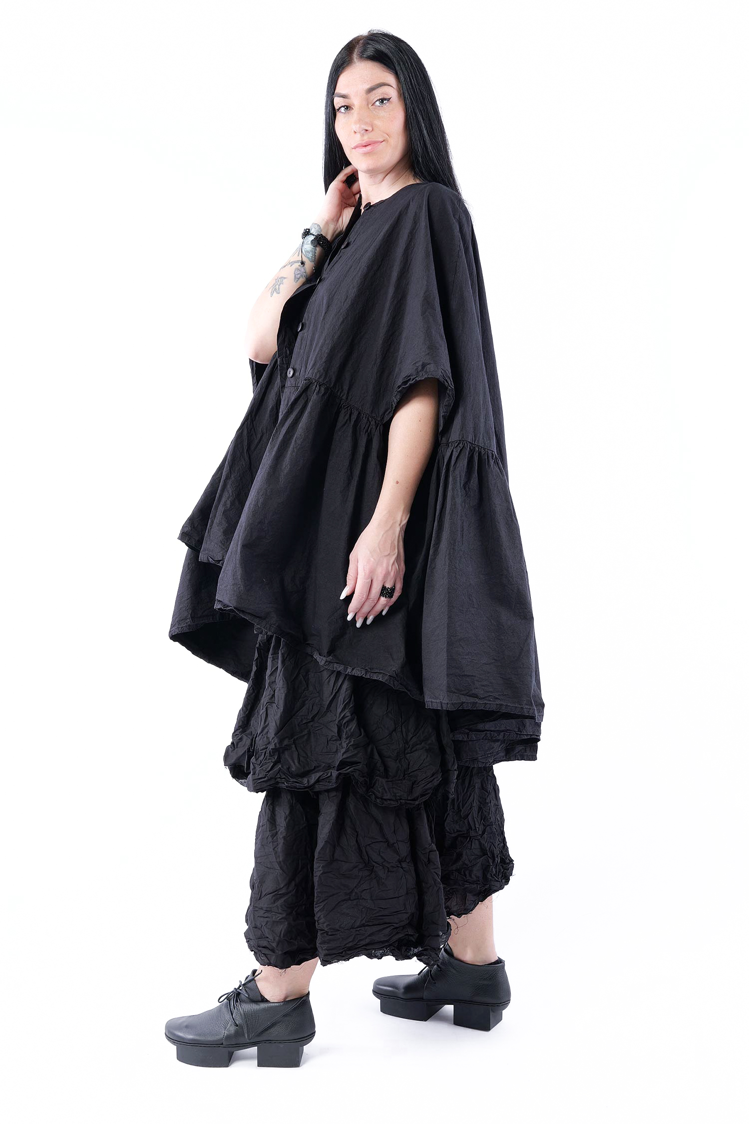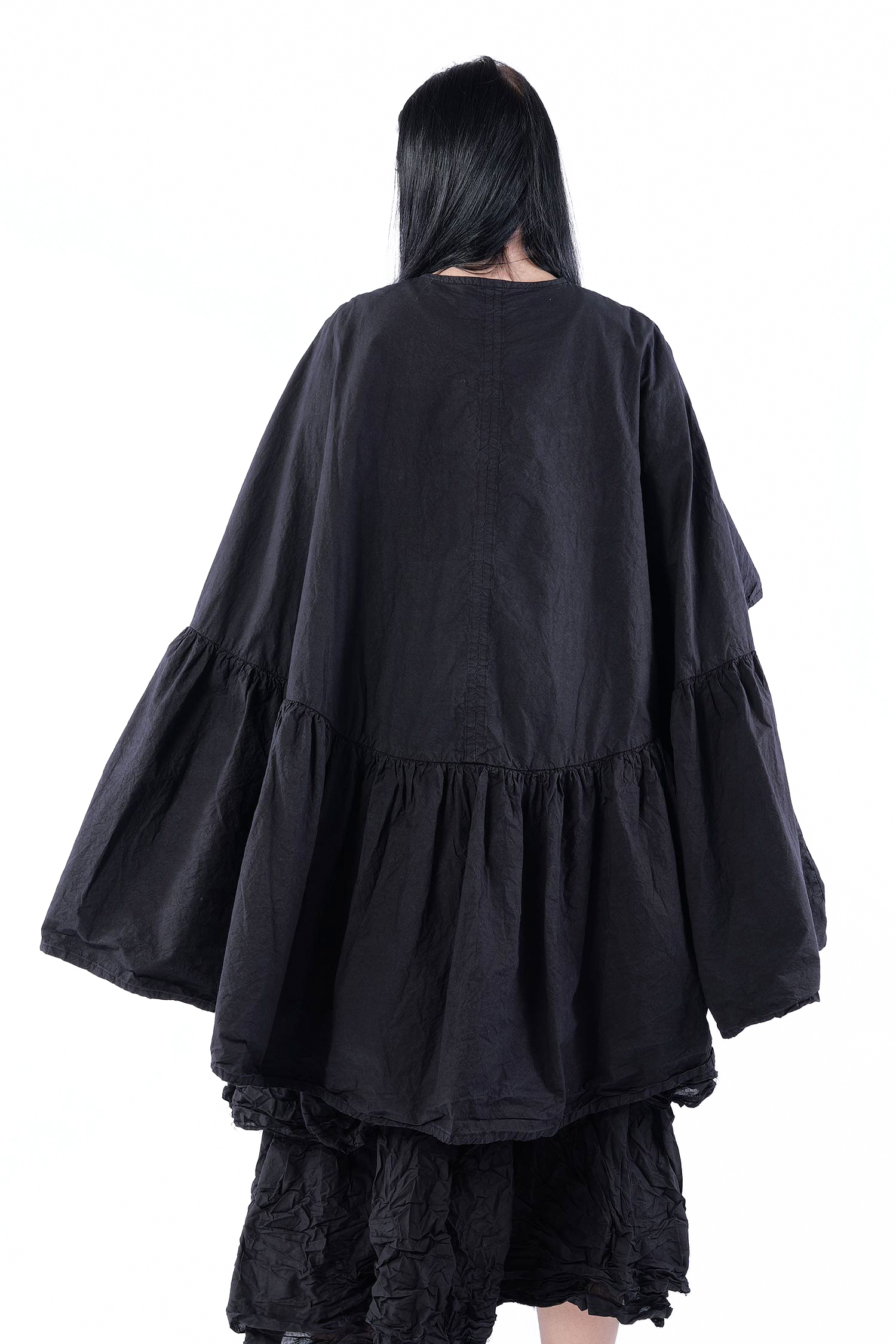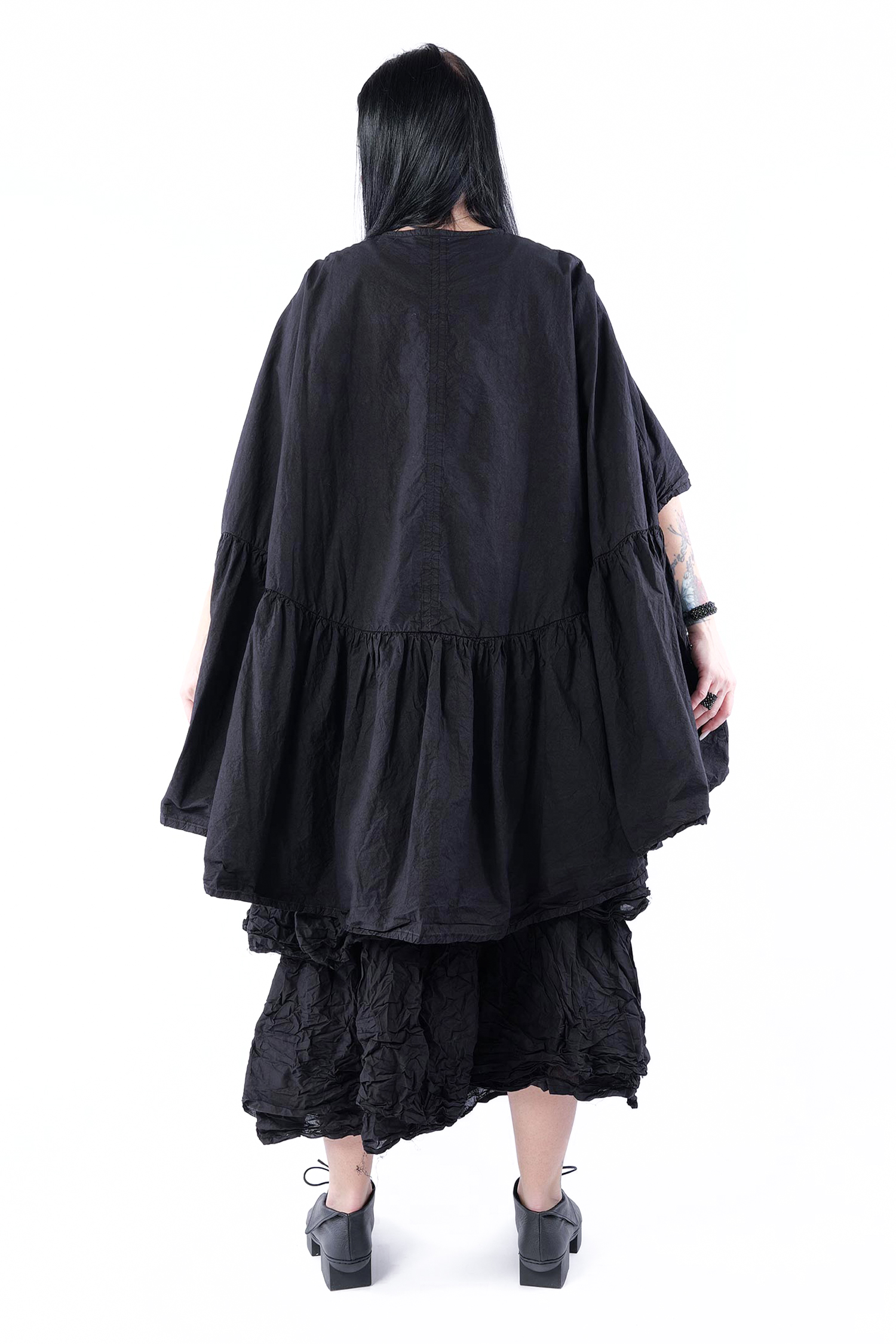 Details: - Knopfleiste - Geräuschebaumwolle - Hinten länger - Überschnittene Schulter ohne Ärmelnaht - Ziernaht in der hinteren Mitte im oberen Bereich - Armlöcher etwas nach vorne versetzt - Capeform - Rundhalsausschnitt - Versäuberte Kanten