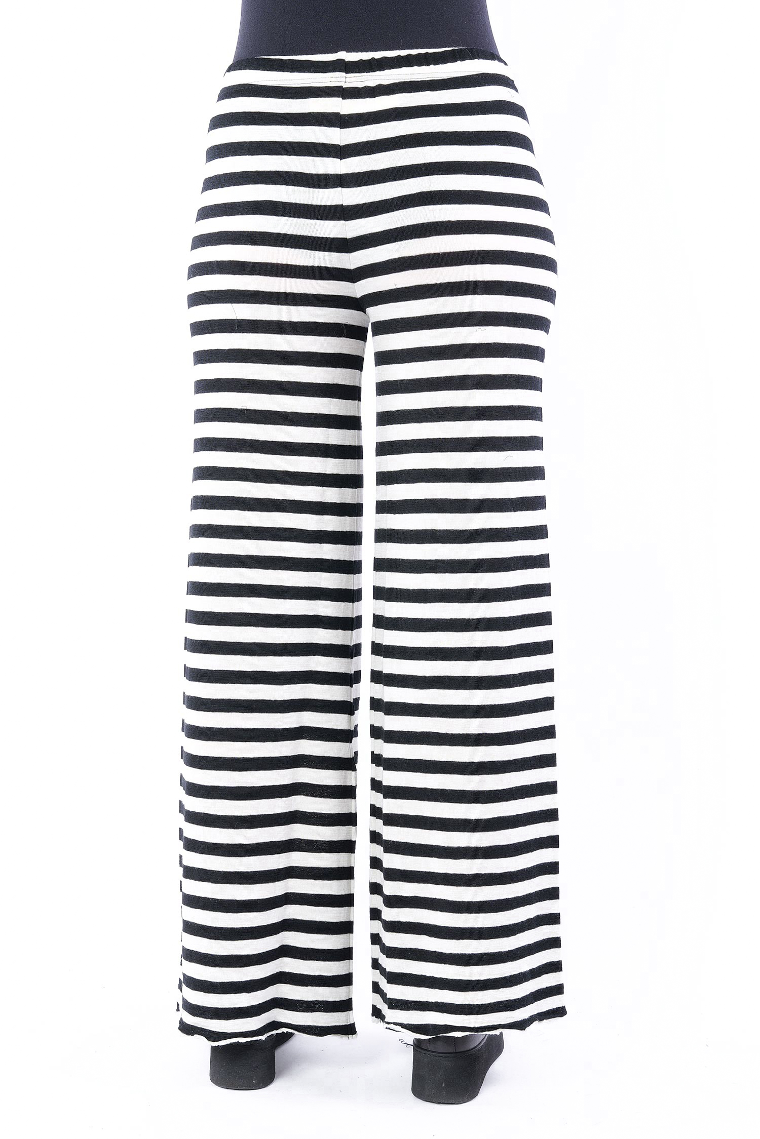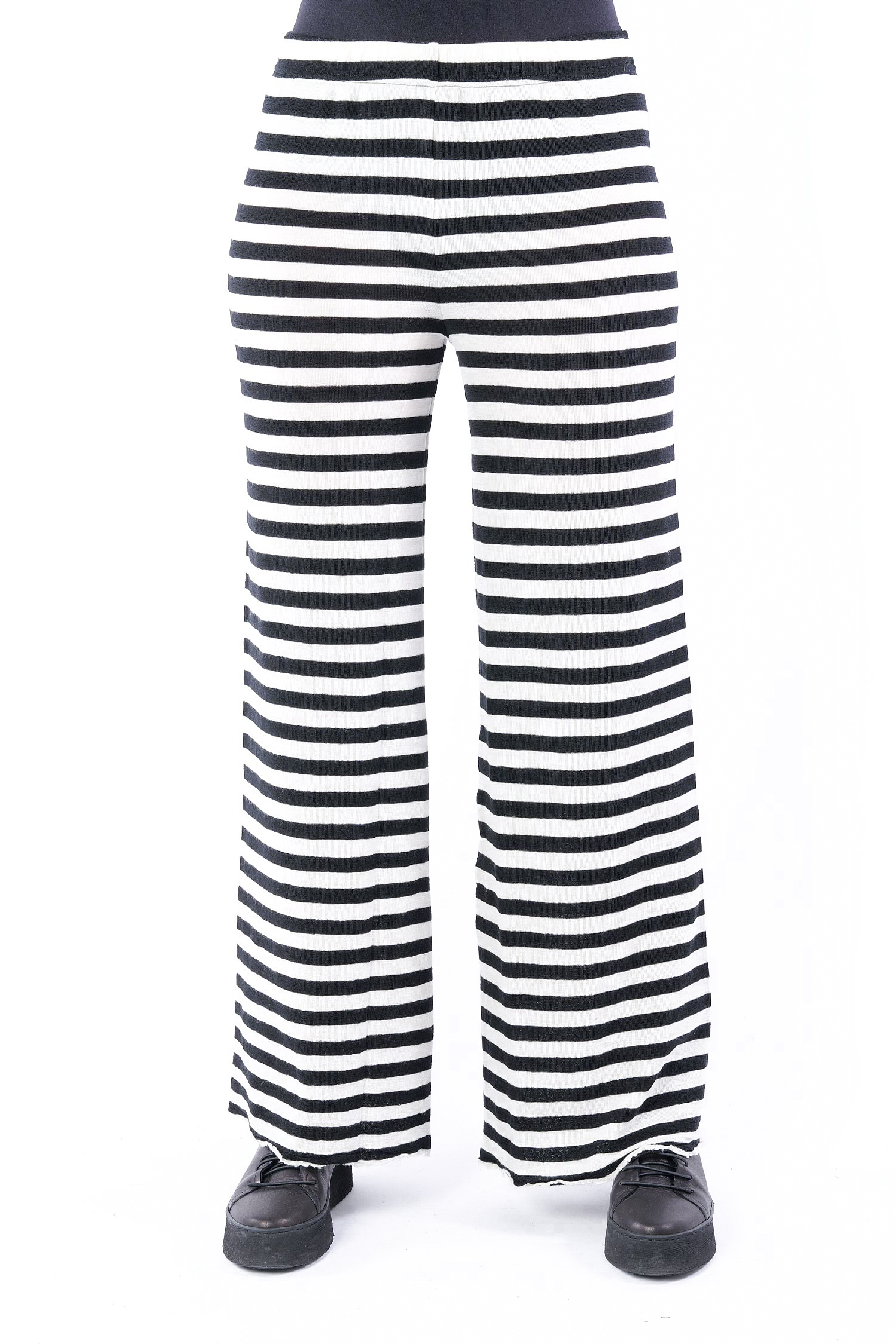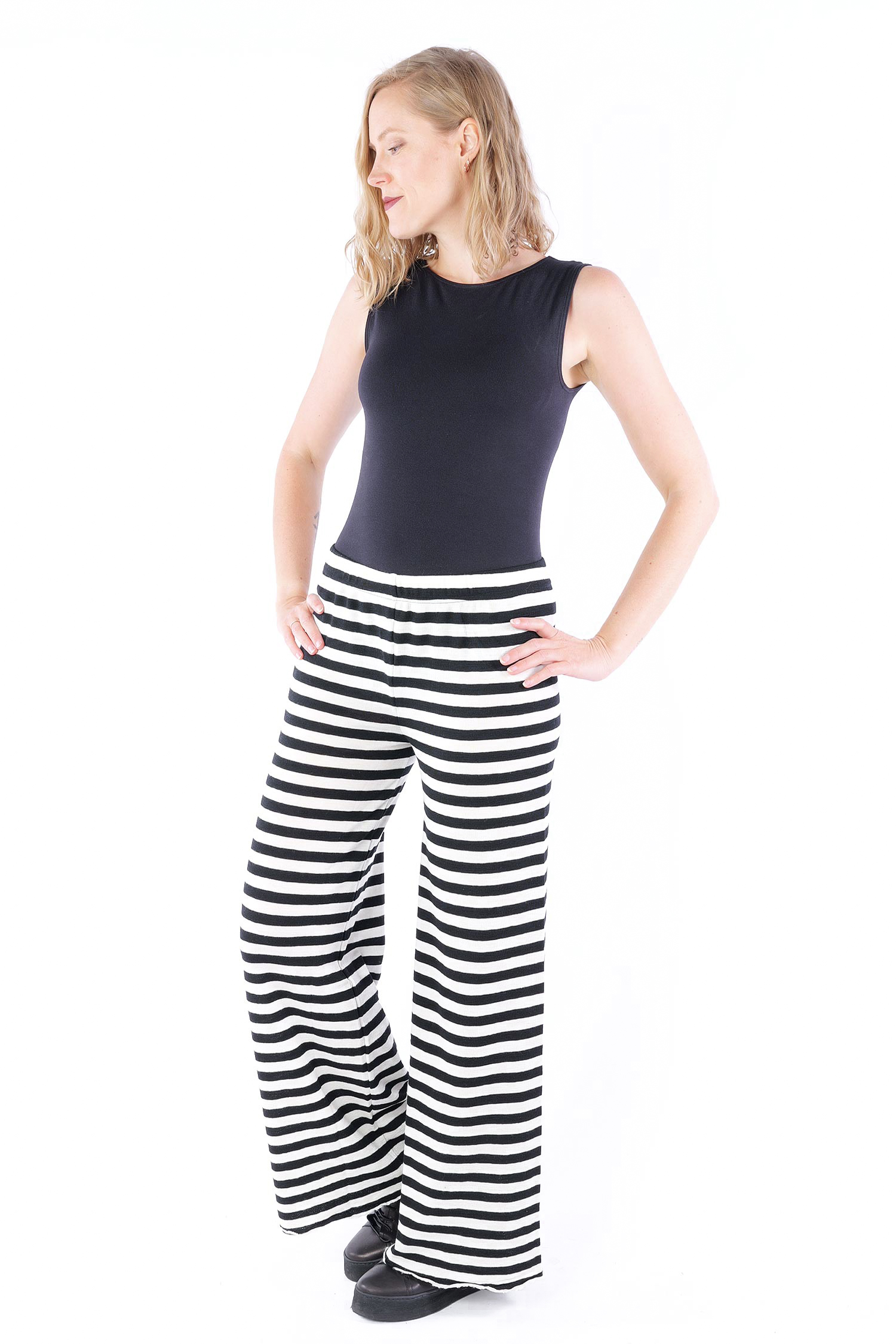 Gestreifte Merinohose - white/black-breite Streifen - 3010