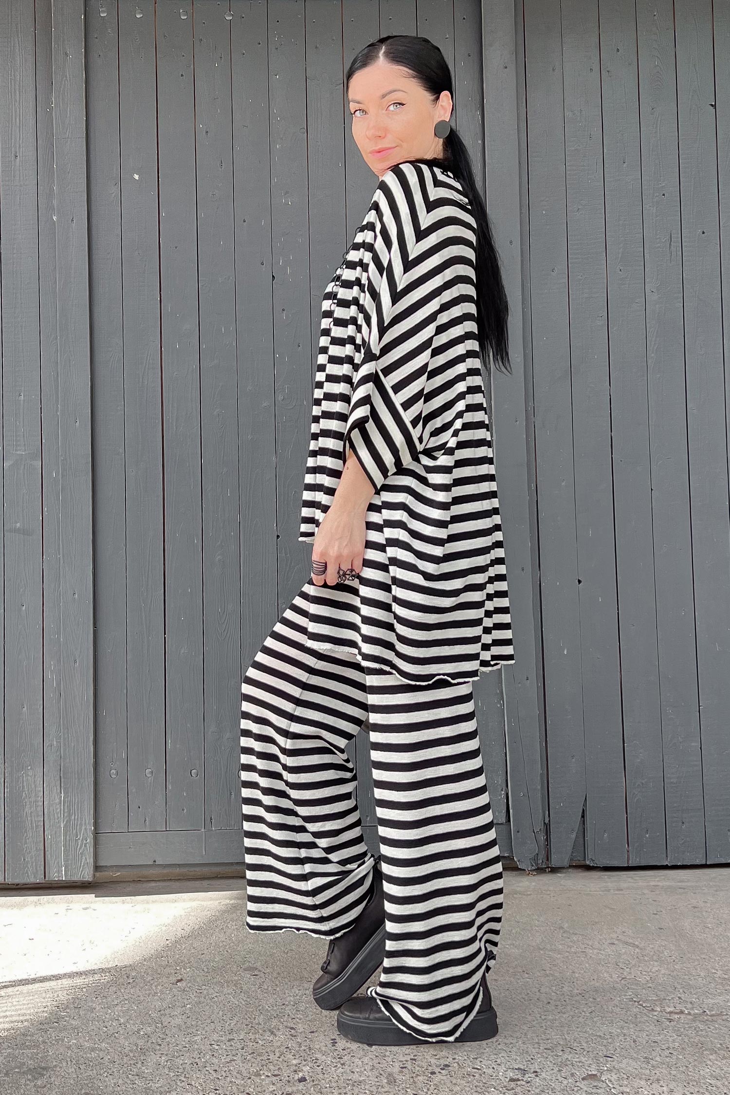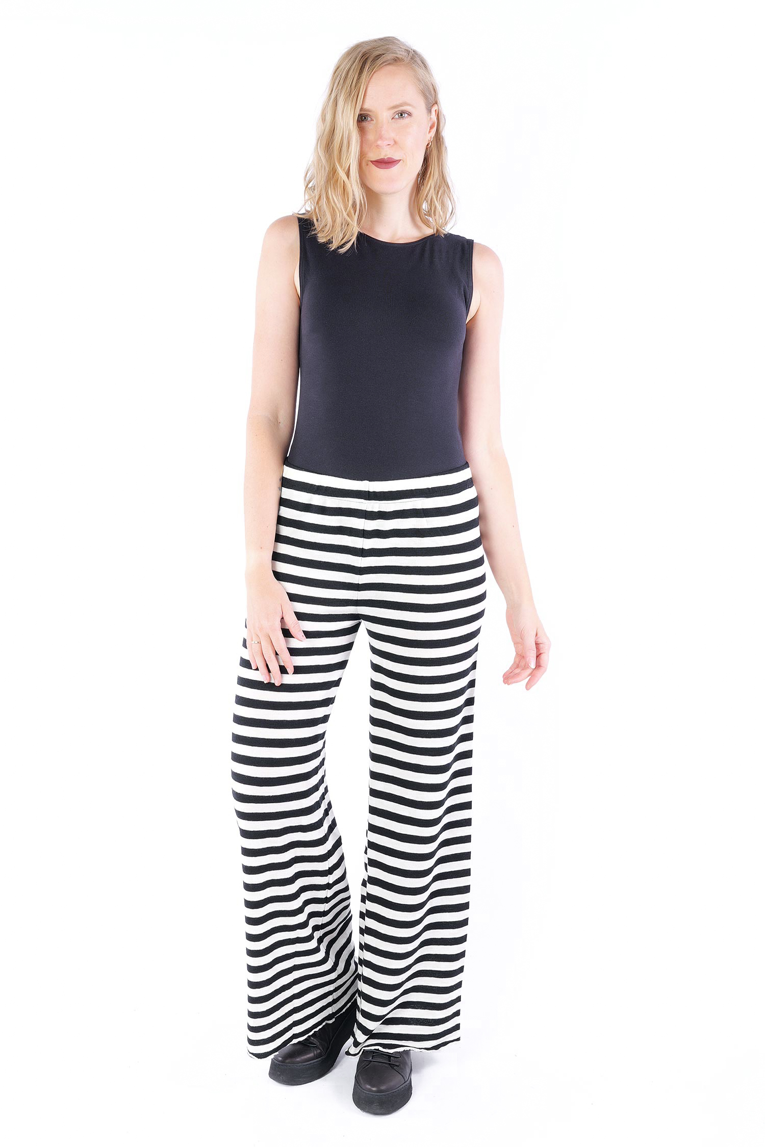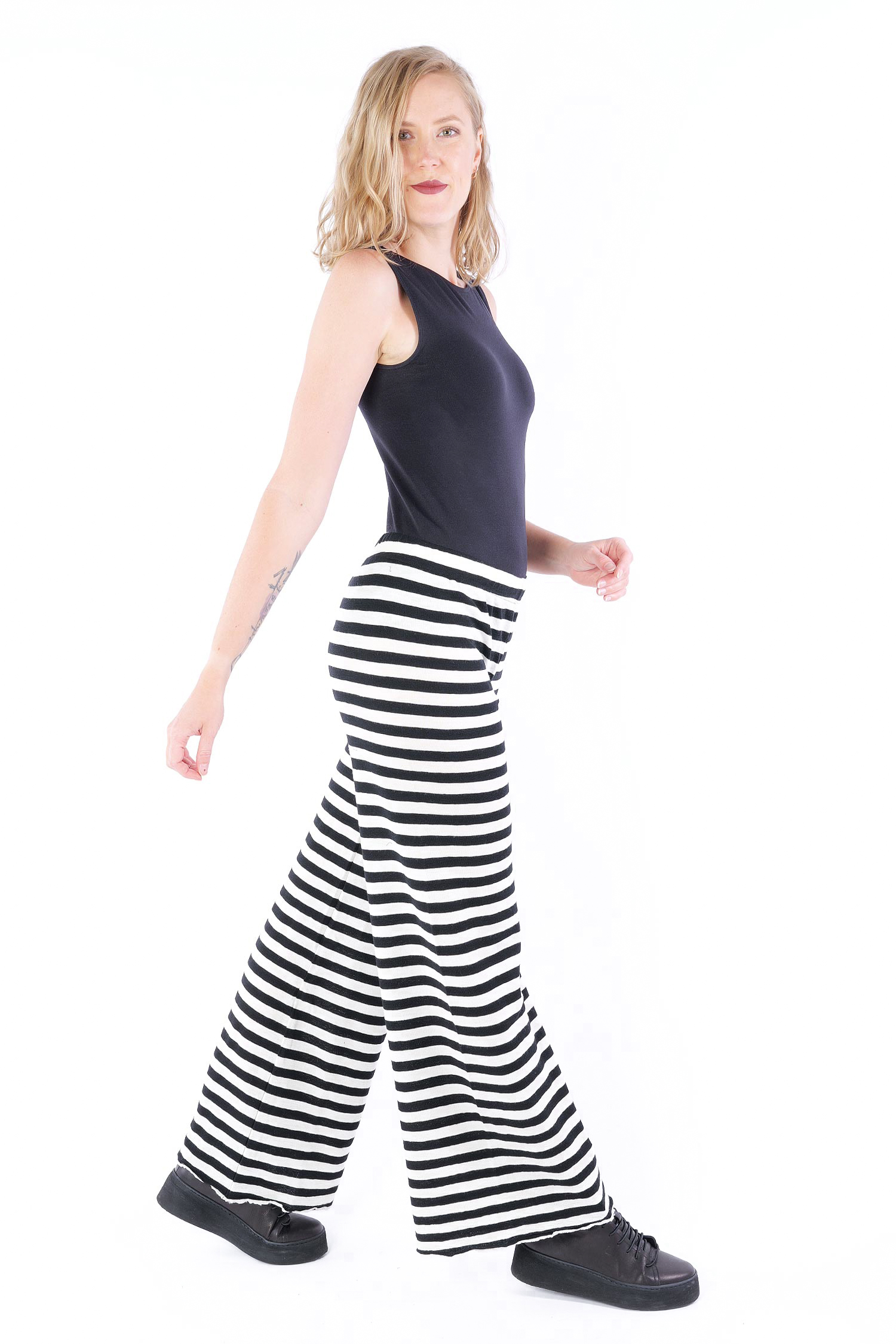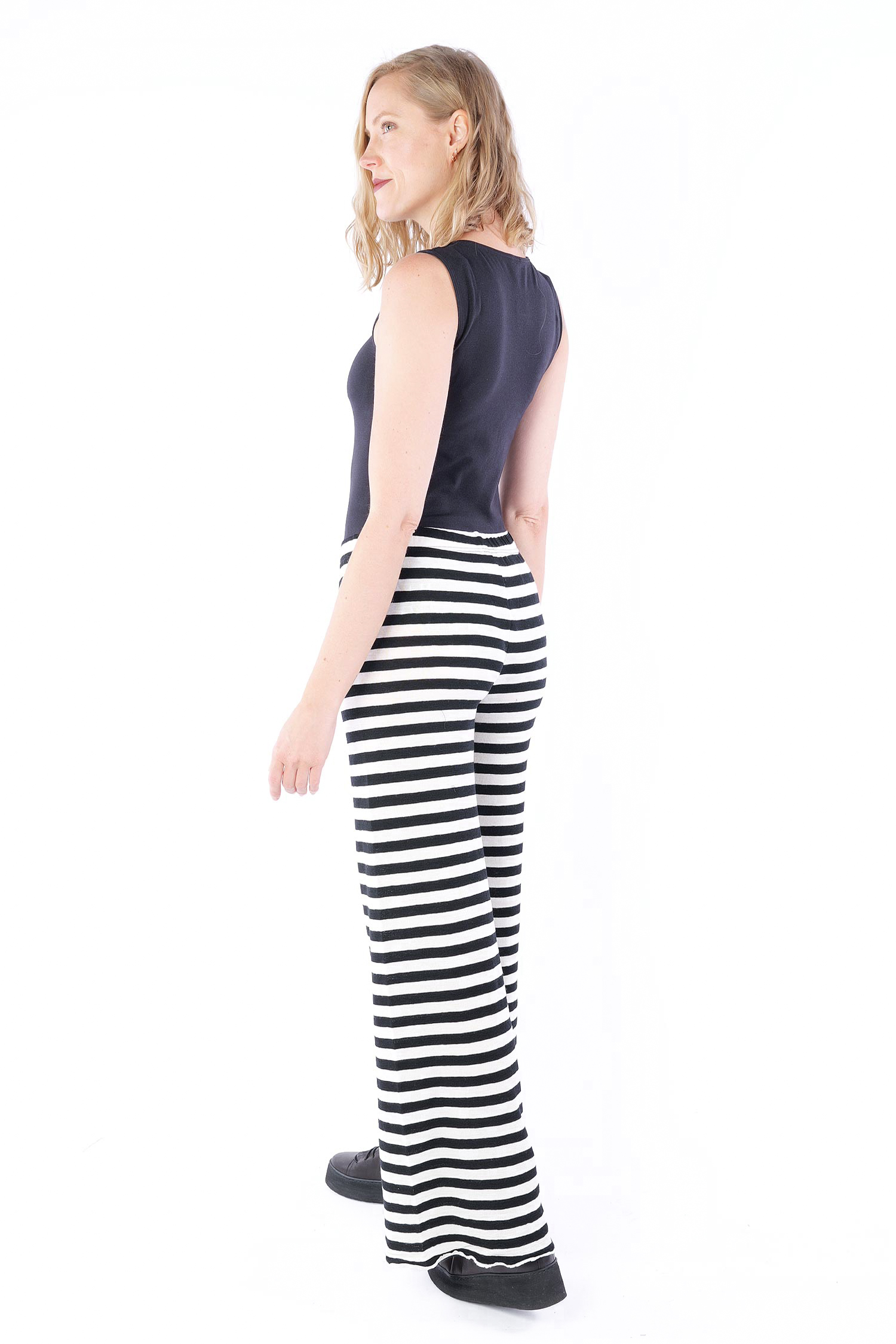 Gestreifte Merinohose - white/black-breite Streifen - 3010