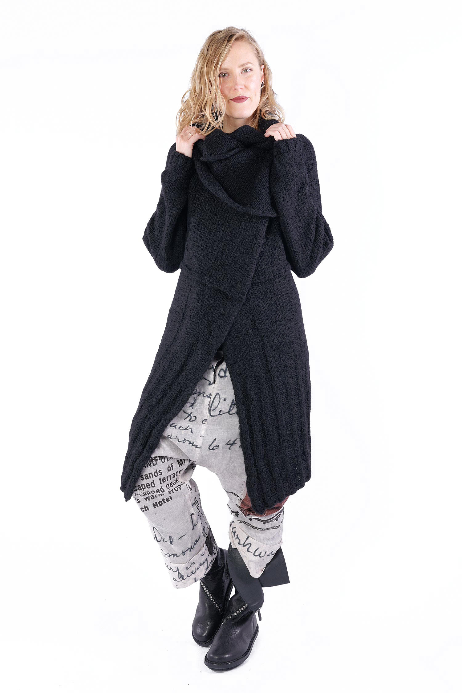 - Kann mit dem Saum als Kragen getragen werden (dann ist der Mantel kürzer)