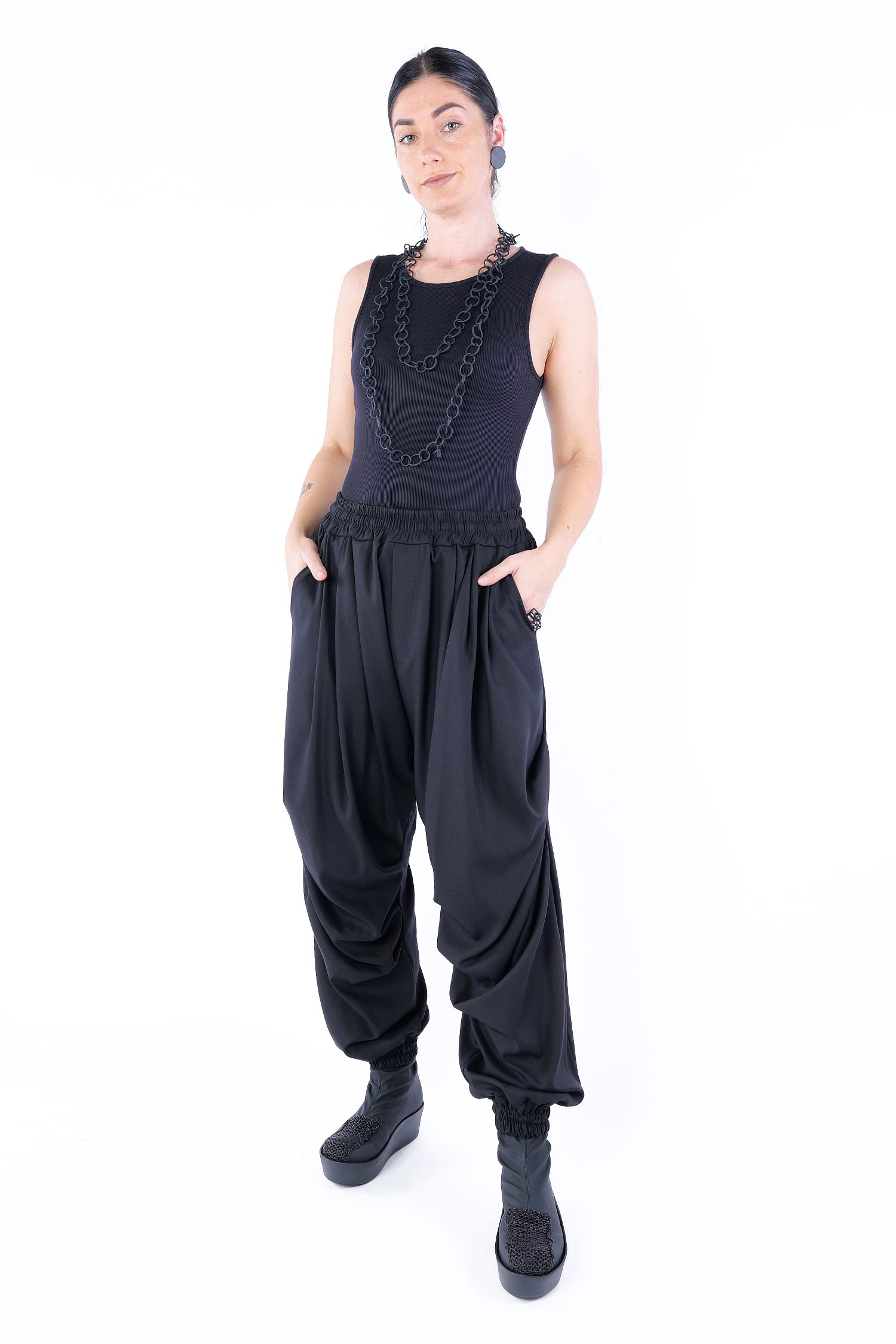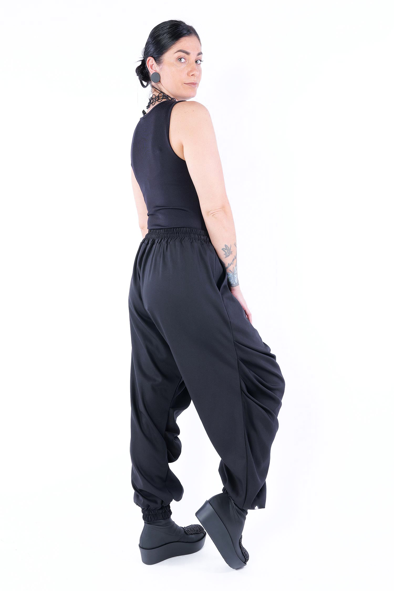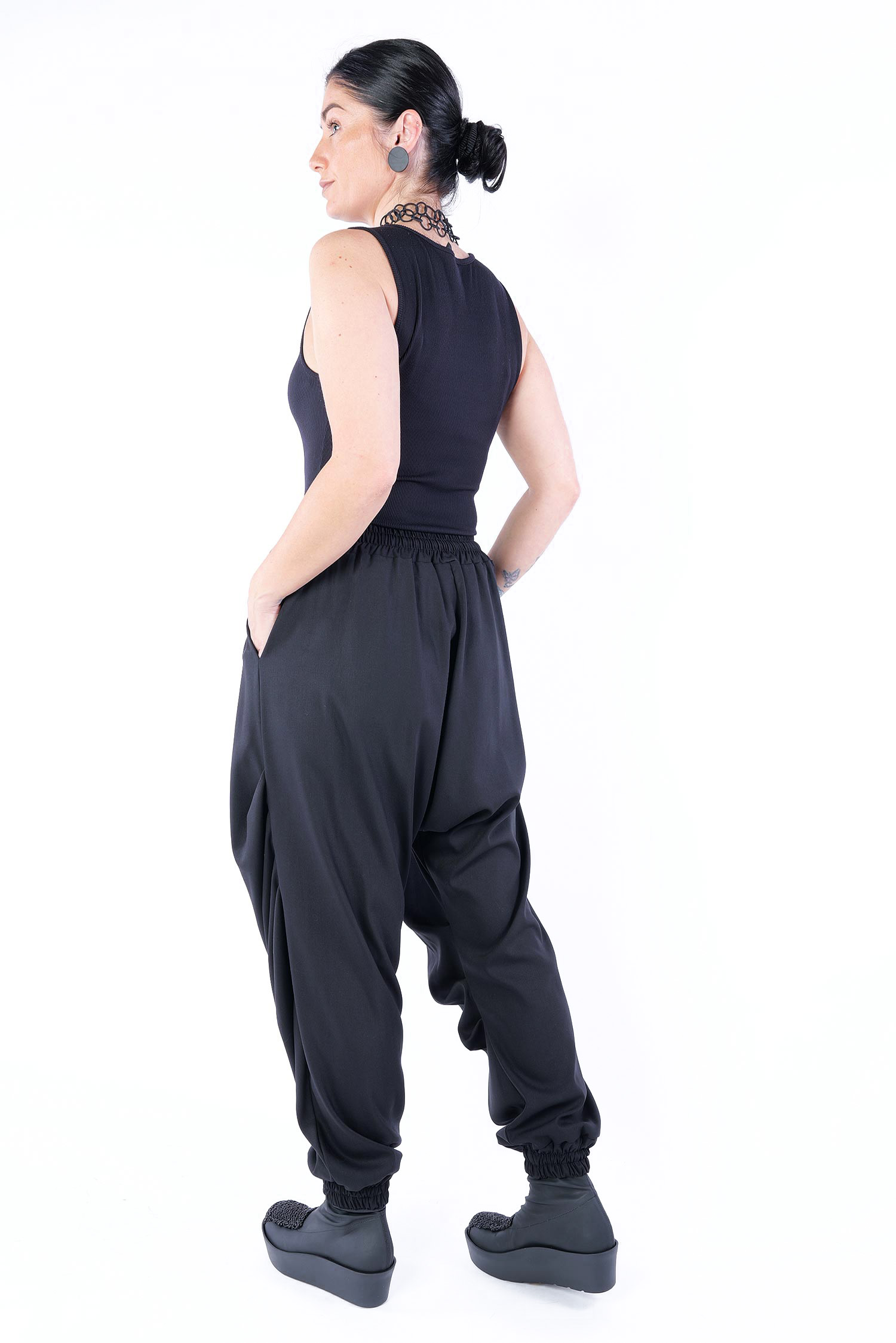 Größe M: Bund ungedehnt = 37 cm, gedehnt = 56 cm / Schritthöhe = 46 cm / Hüfte = 68 cm / Länge = 101 cm