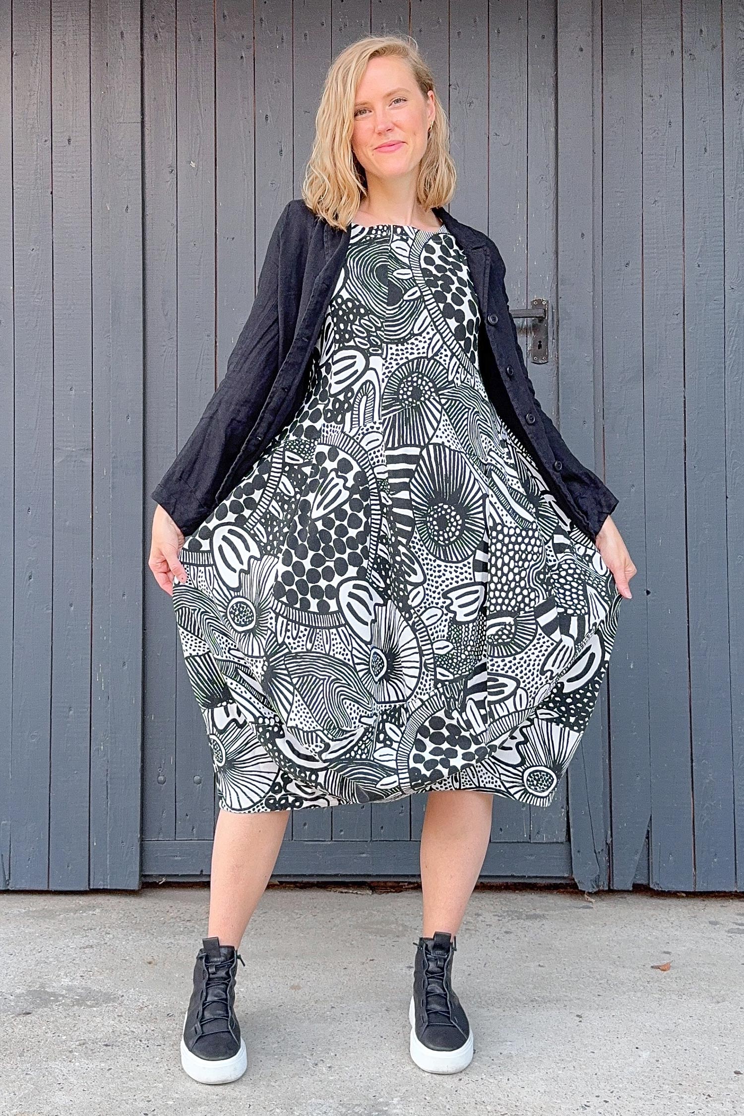 Ninas Maße sind 86cm / 72cm / 101cm (Brust / Taille / Hüfte) und sie ist 170cm groß. Sie trägt immer die kleinste Größe, andernfalls ist ein Hinweis in der Produktbeschreibung zu finden.