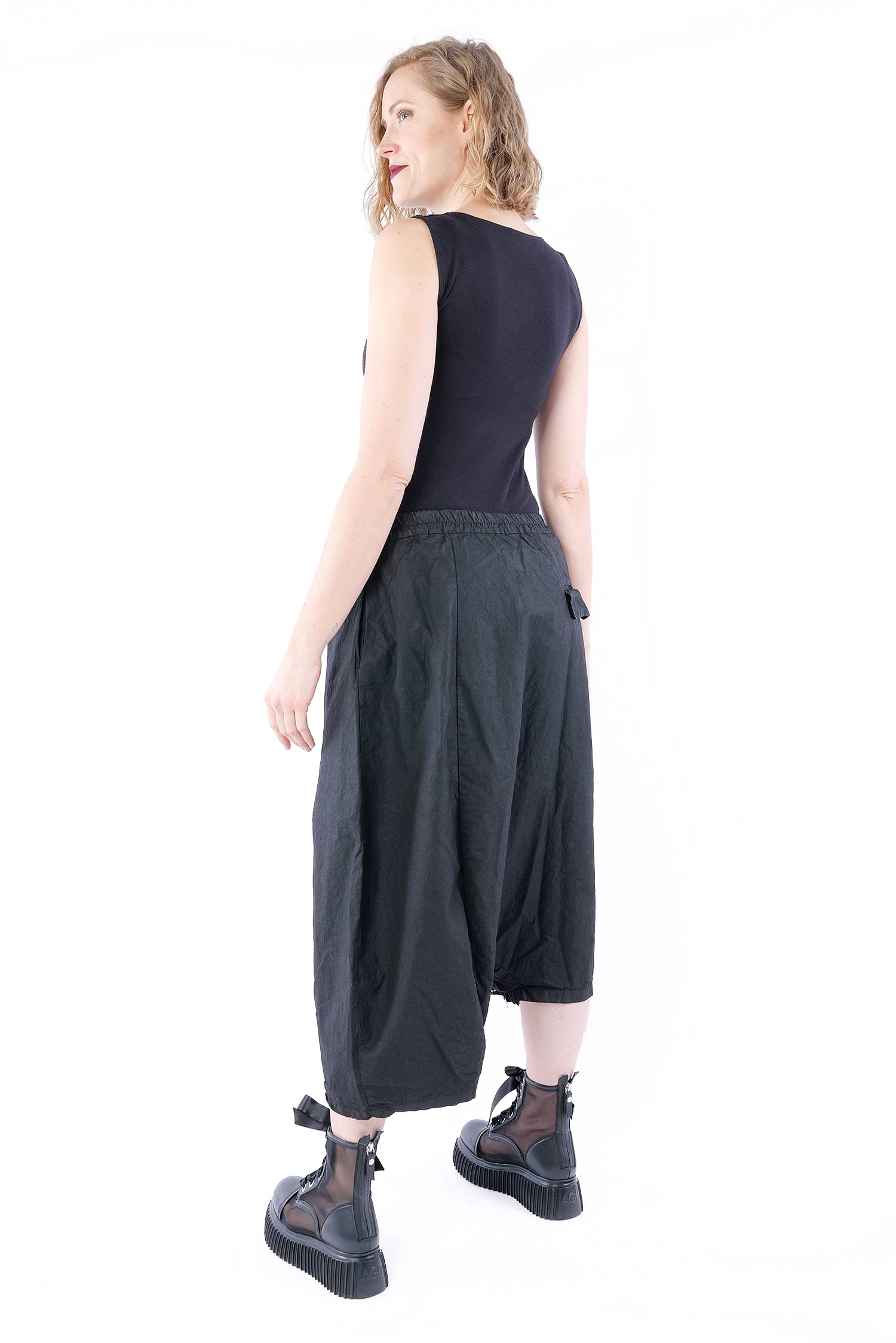 Größe S: Bund ungedehnt = 38 cm, gedehnt = 48 cm / Schritttiefe = 70 cm / Hüfte = 60 cm / Länge (längere Seite)= 83 cm