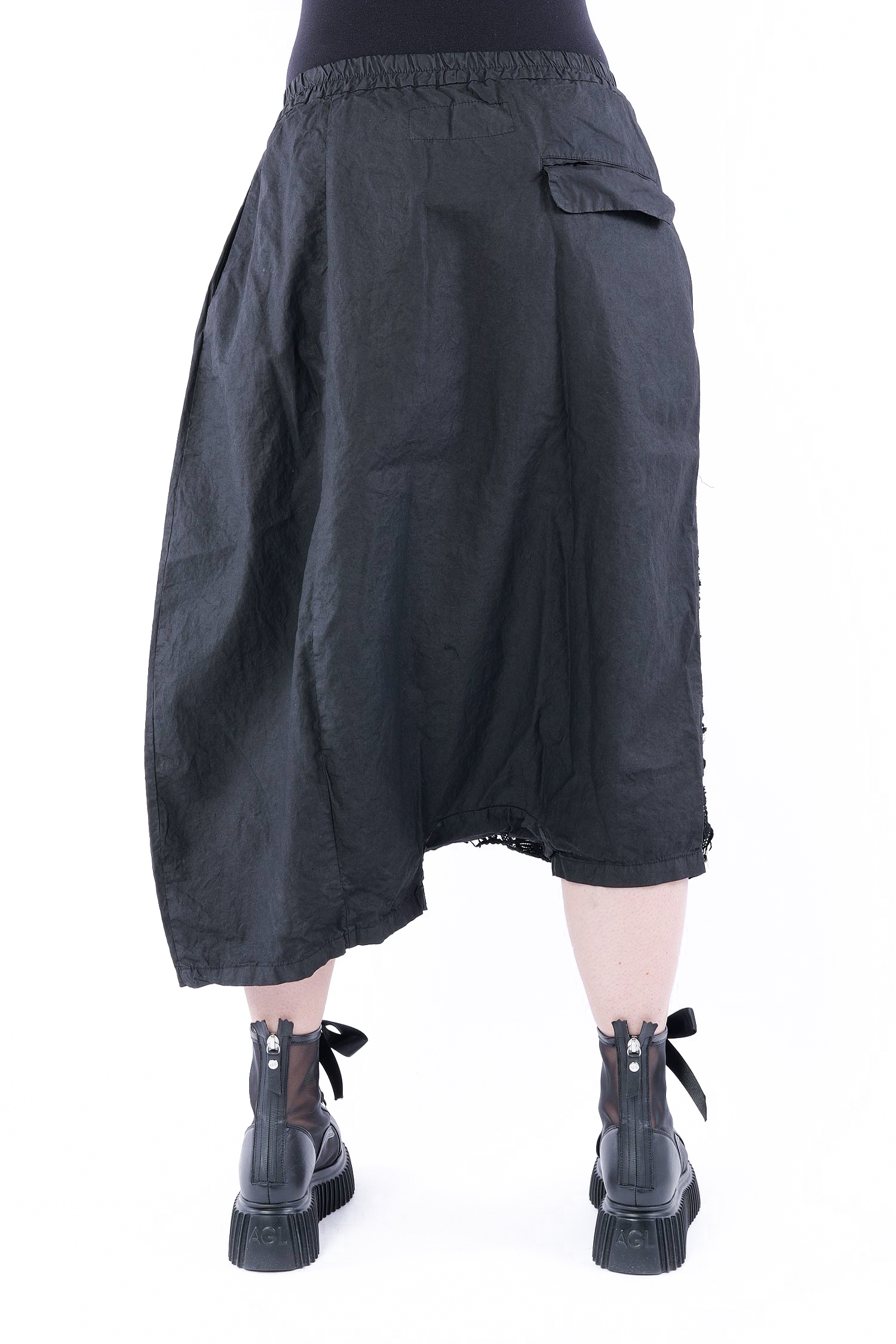 Größe L: Bund ungedehnt = 42 cm, gedehnt = 53 cm / Schritttiefe = 70 cm / Hüfte = 66 cm / Länge (längere Seite) = 83 cm