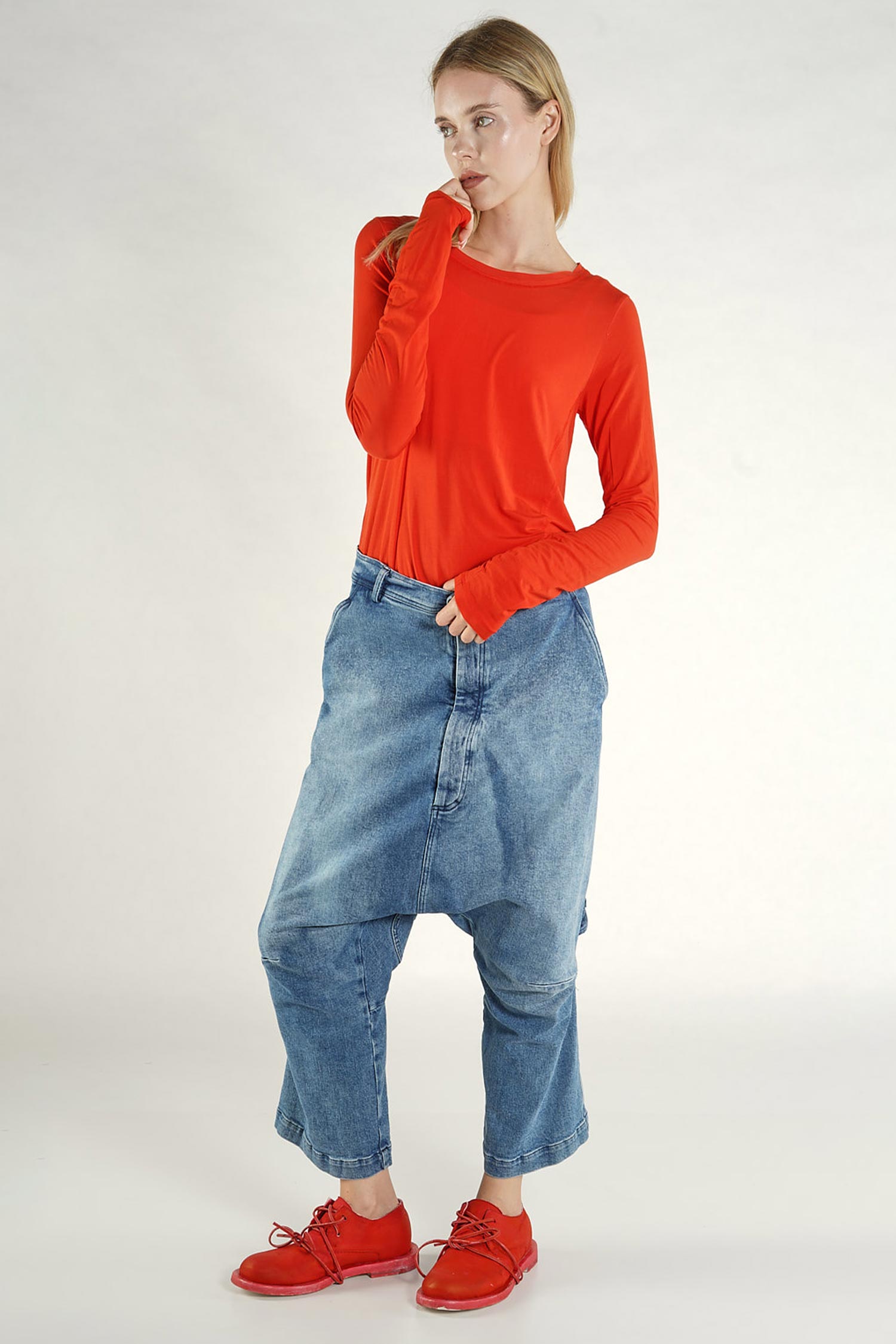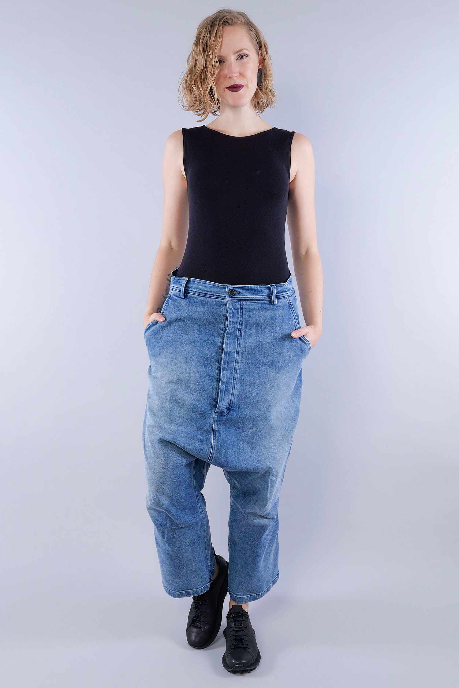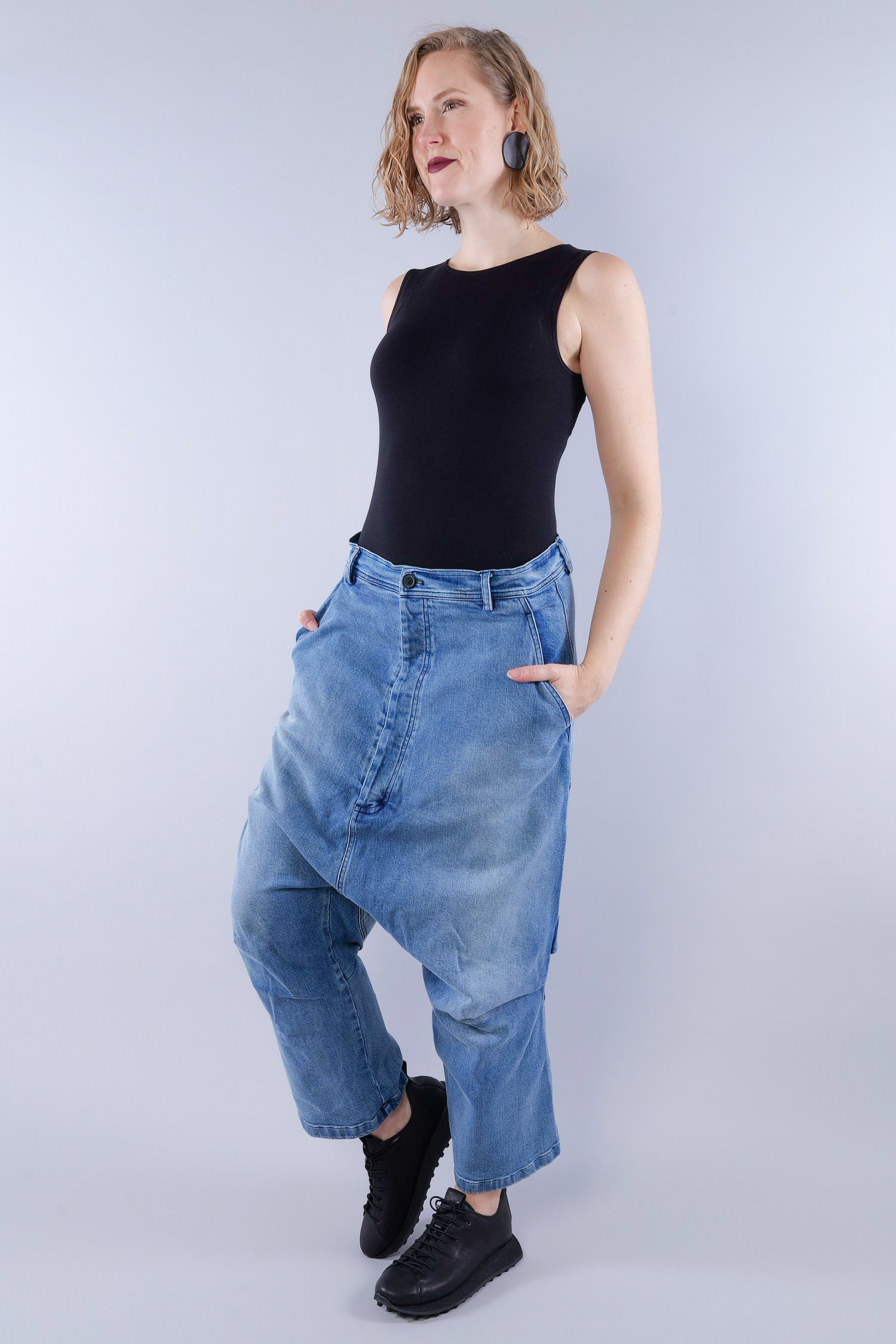 Jeans mit tiefem Schritt - Indigo stonewash - 1261040114