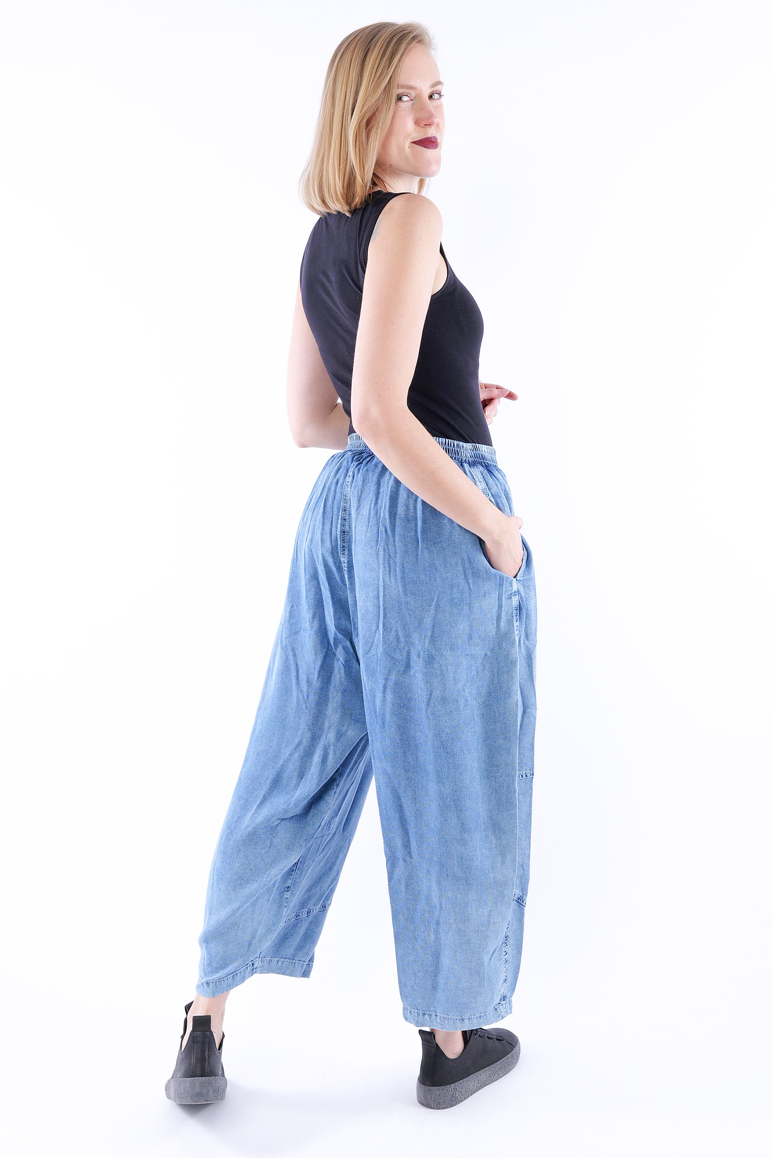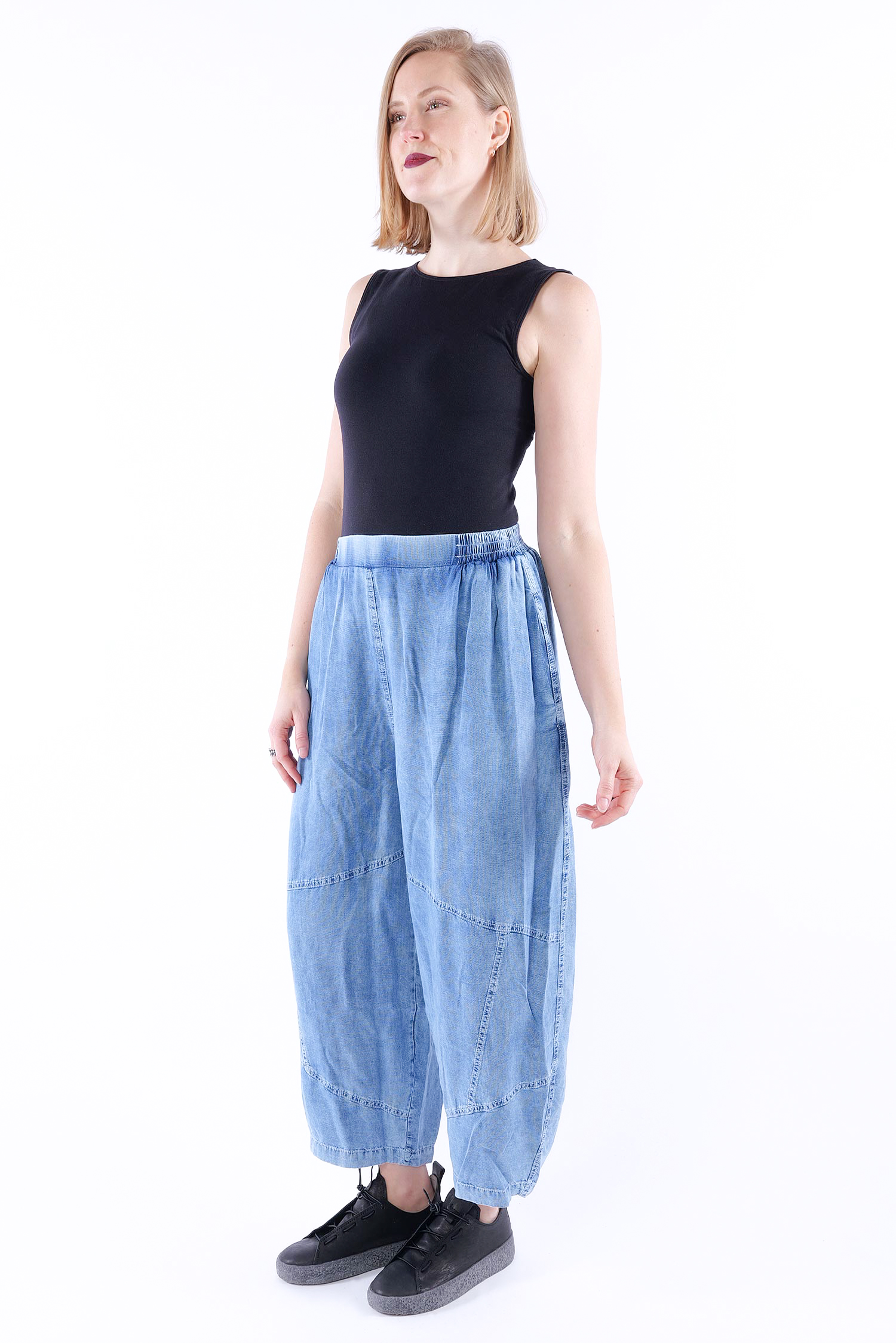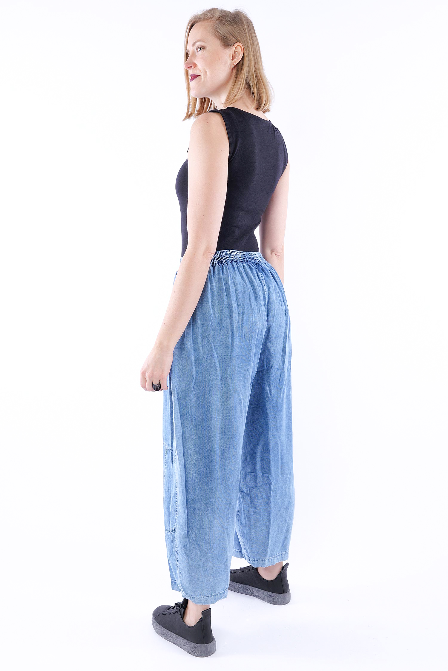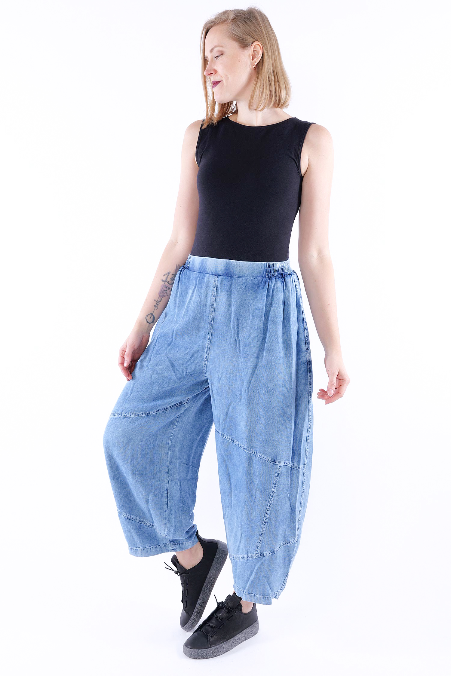 Maße circa (einfach gemessen / Länge außen seitlich): Größe 2: Bund ungedehnt = 36 cm, gedehnt = 54 cm / Schritttiefe = 40 cm / Hüfte = 64 cm / Länge = 93 cm Größe 3: Bund ungedehnt = 37 cm, gedehnt = 57 cm / Schritttiefe = 40 cm / Hüfte = 65 cm / Länge = 93 cm Größe 4: Bund ungedehnt = 38 cm, gedehnt = 60 cm / Schritttiefe = 40 cm / Hüfte = 66 cm / Länge = 93 cm Größe 5: Bund ungedehnt = 39 cm, gedehnt = 64 cm / Schritttiefe = 40 cm / Hüfte = 68 cm / Länge = 93 cm