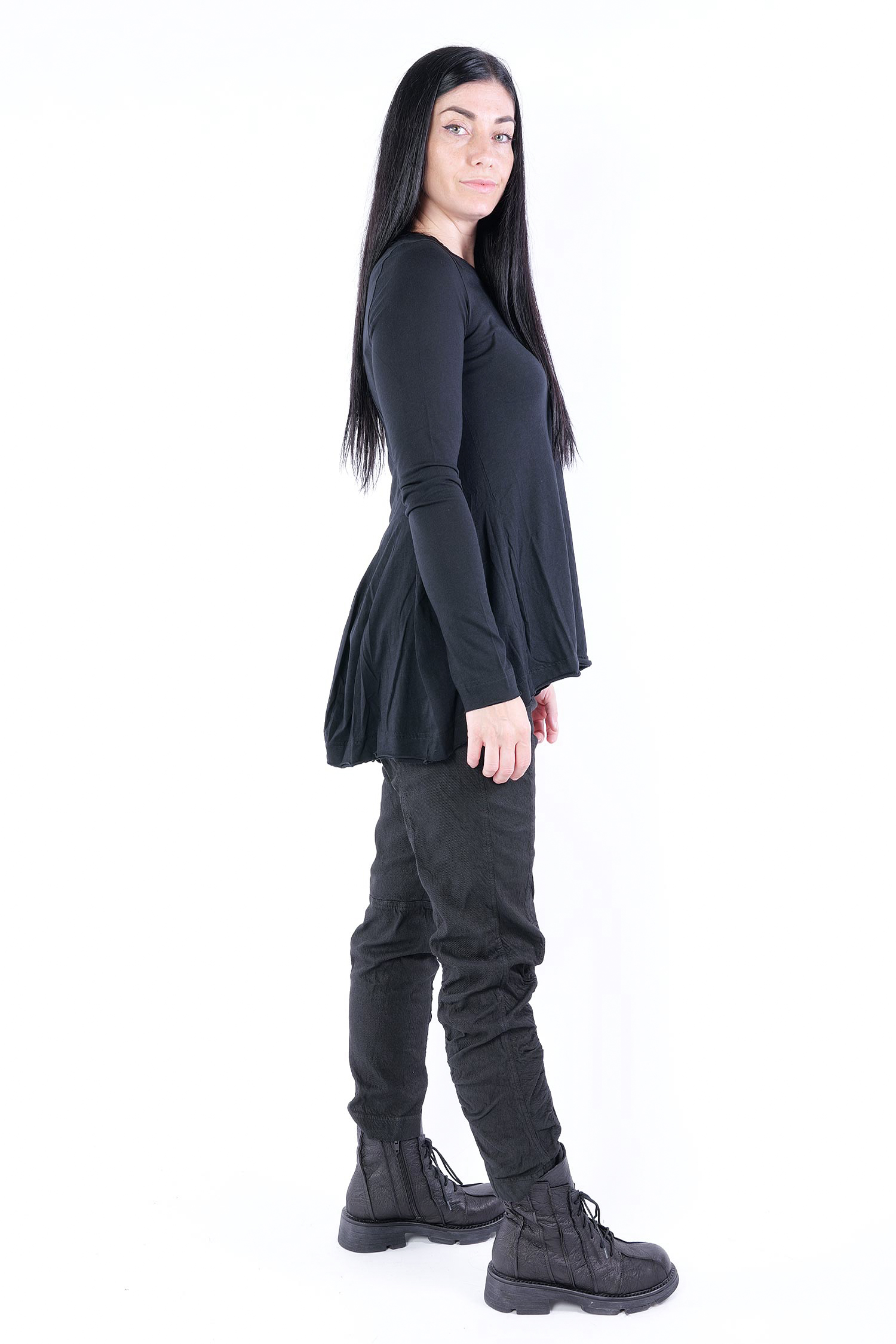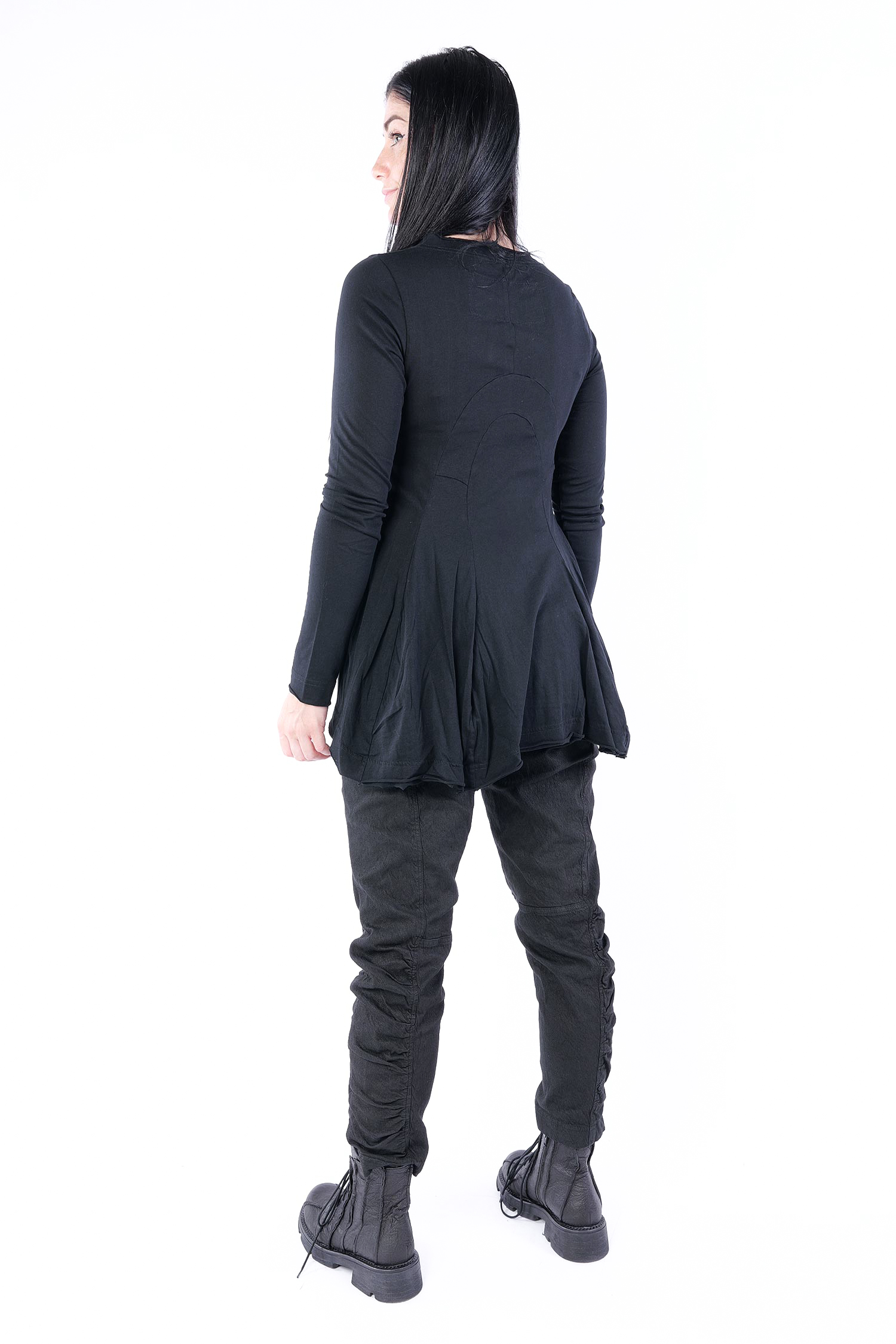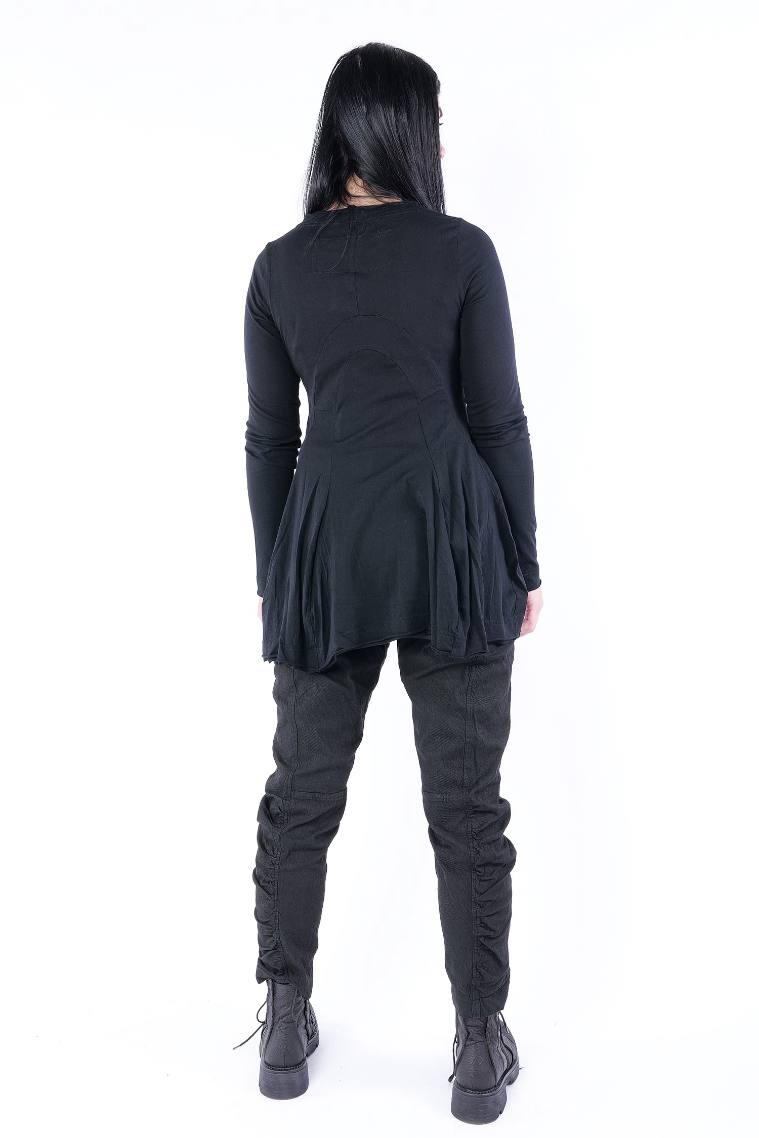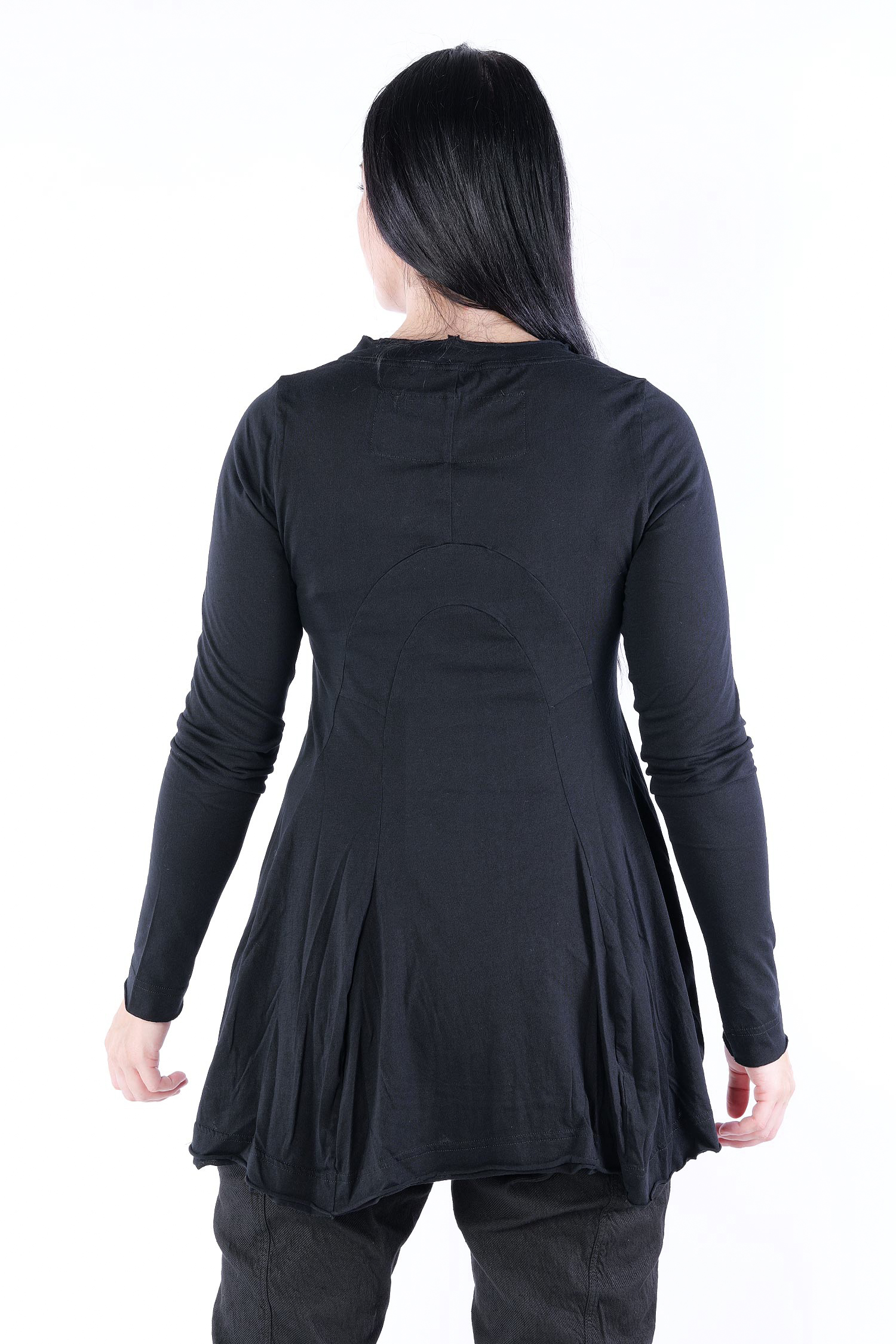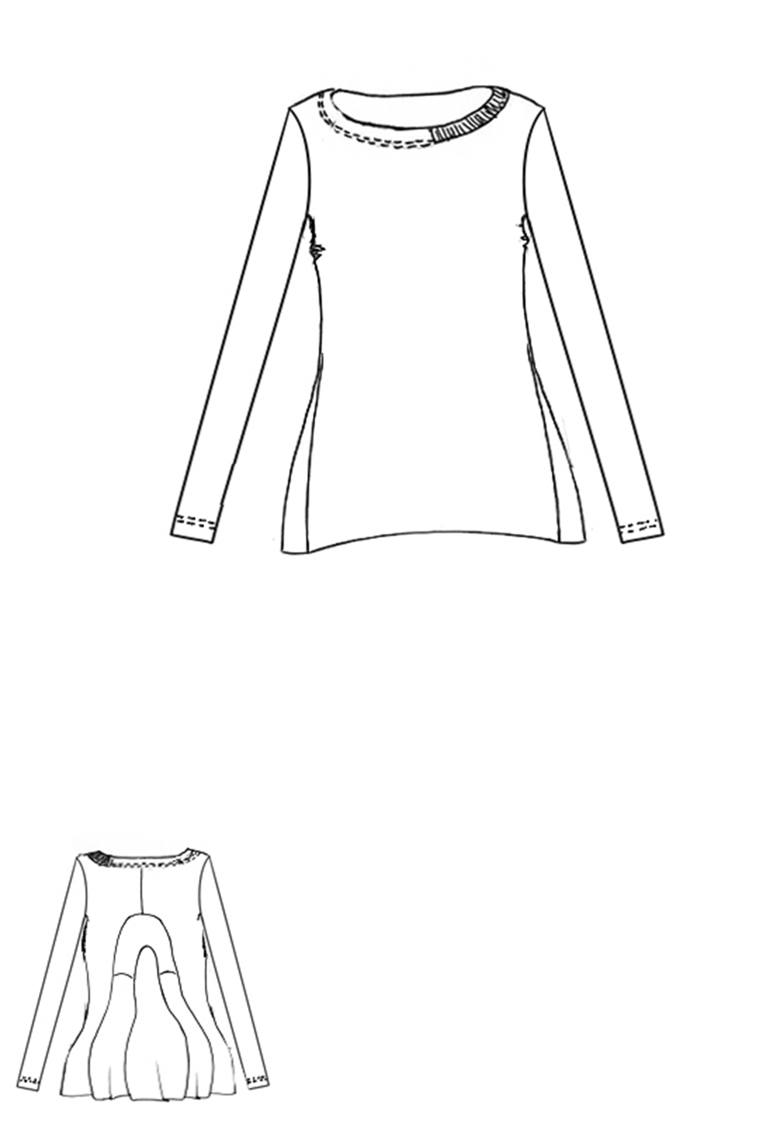 Details: - Rundhalsausschnitt - Lange schmale Ärmel - Elastisches Jerseymaterial - Kanten rollen sich nach außen - Dekorative runde Nähte hinten - Nach unten ausgestellt, glockiger Fall