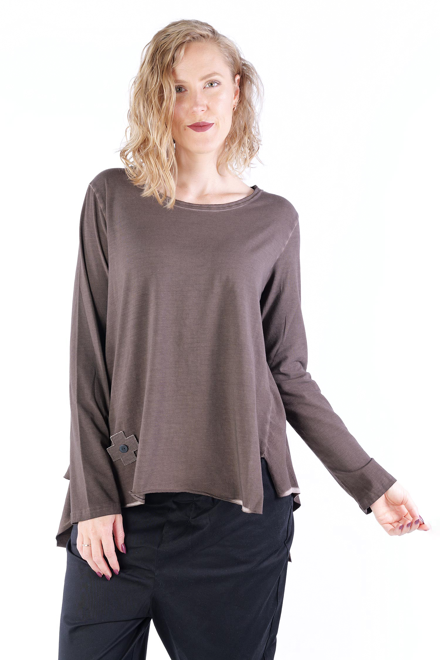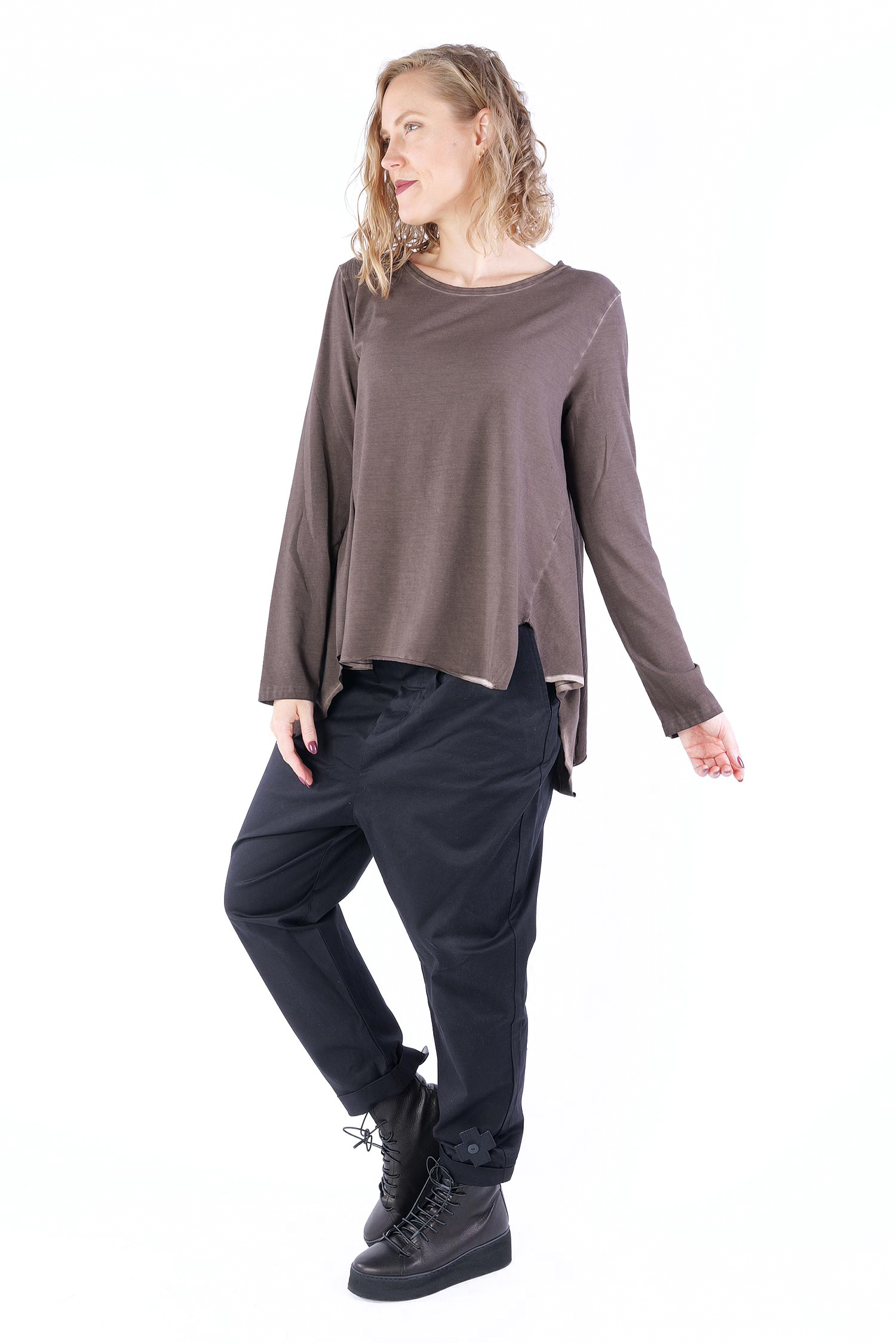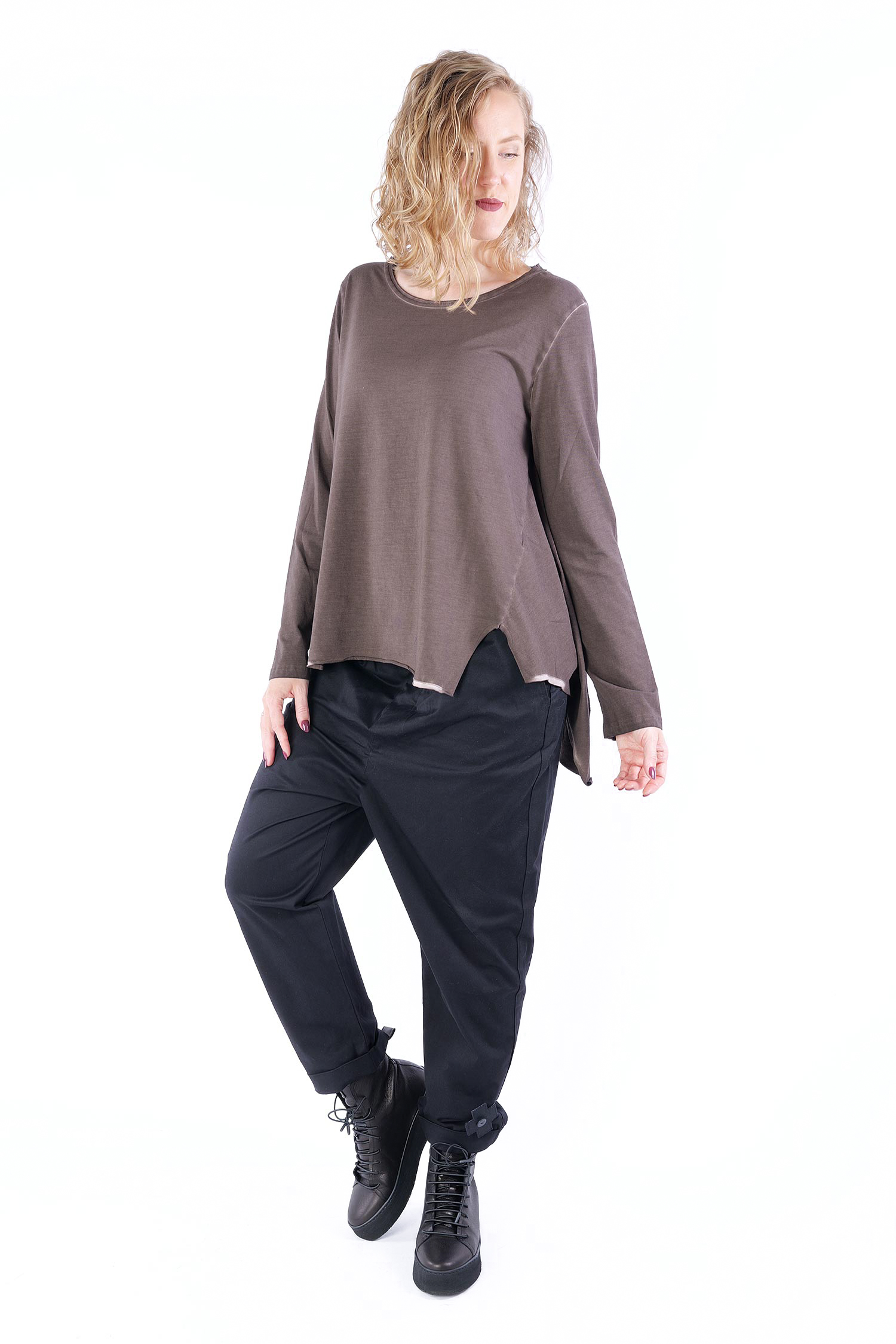- Saum asymmetrisch mit Schlitzen