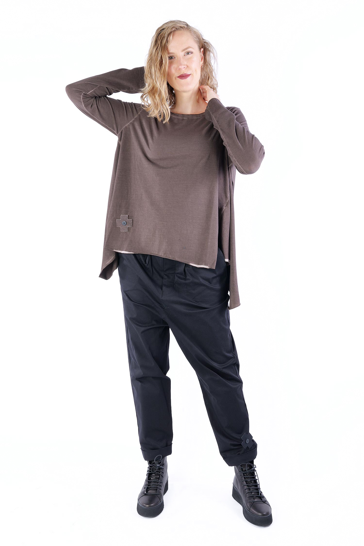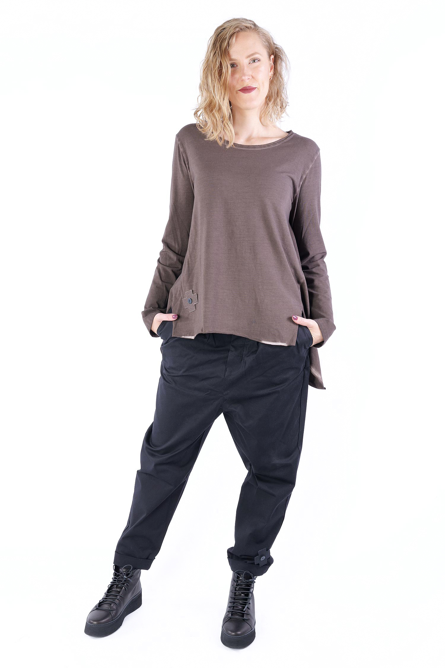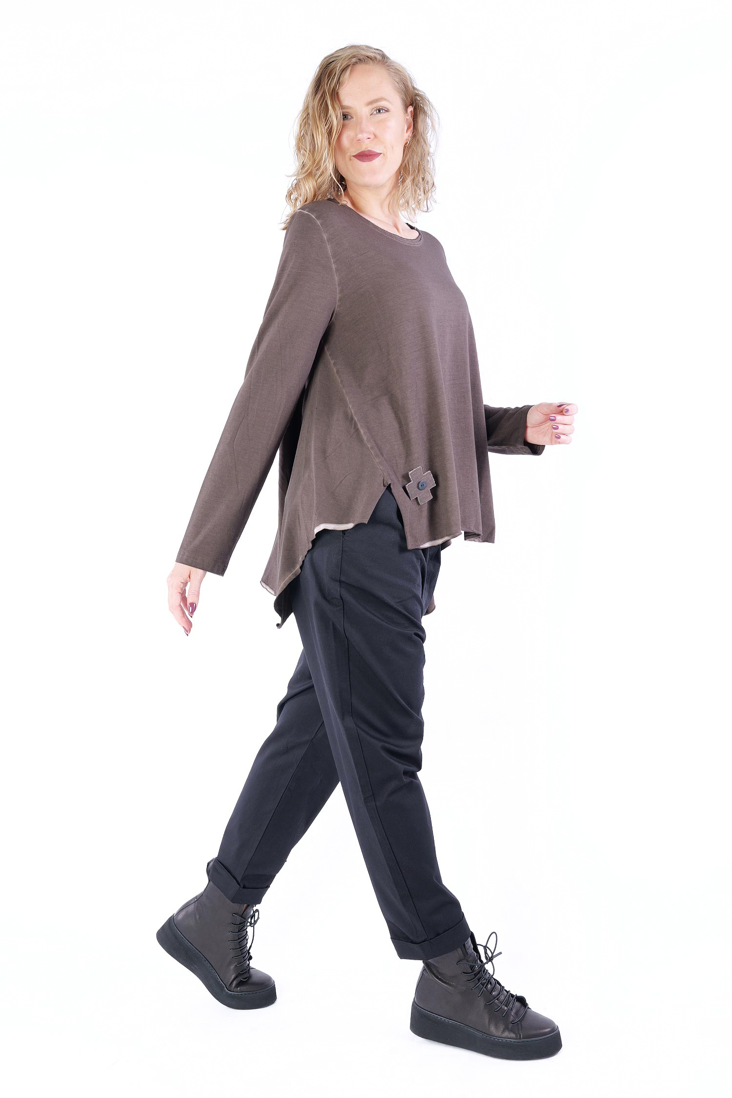 - Saum asymmetrisch mit Schlitzen