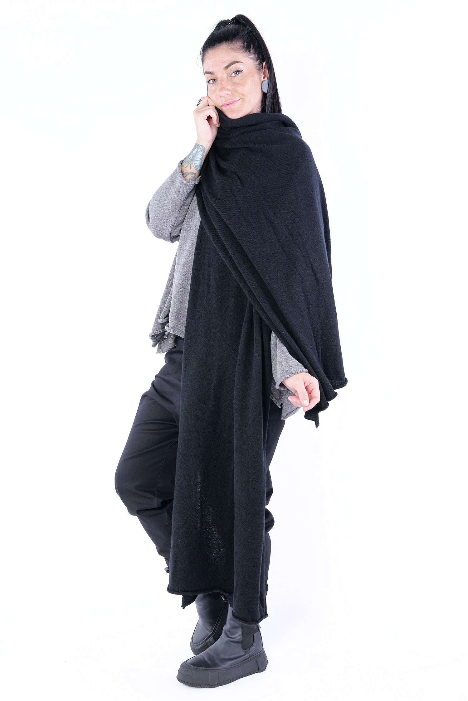 Kaschmir Kragen / Mütze - Crow mel - 2251364607