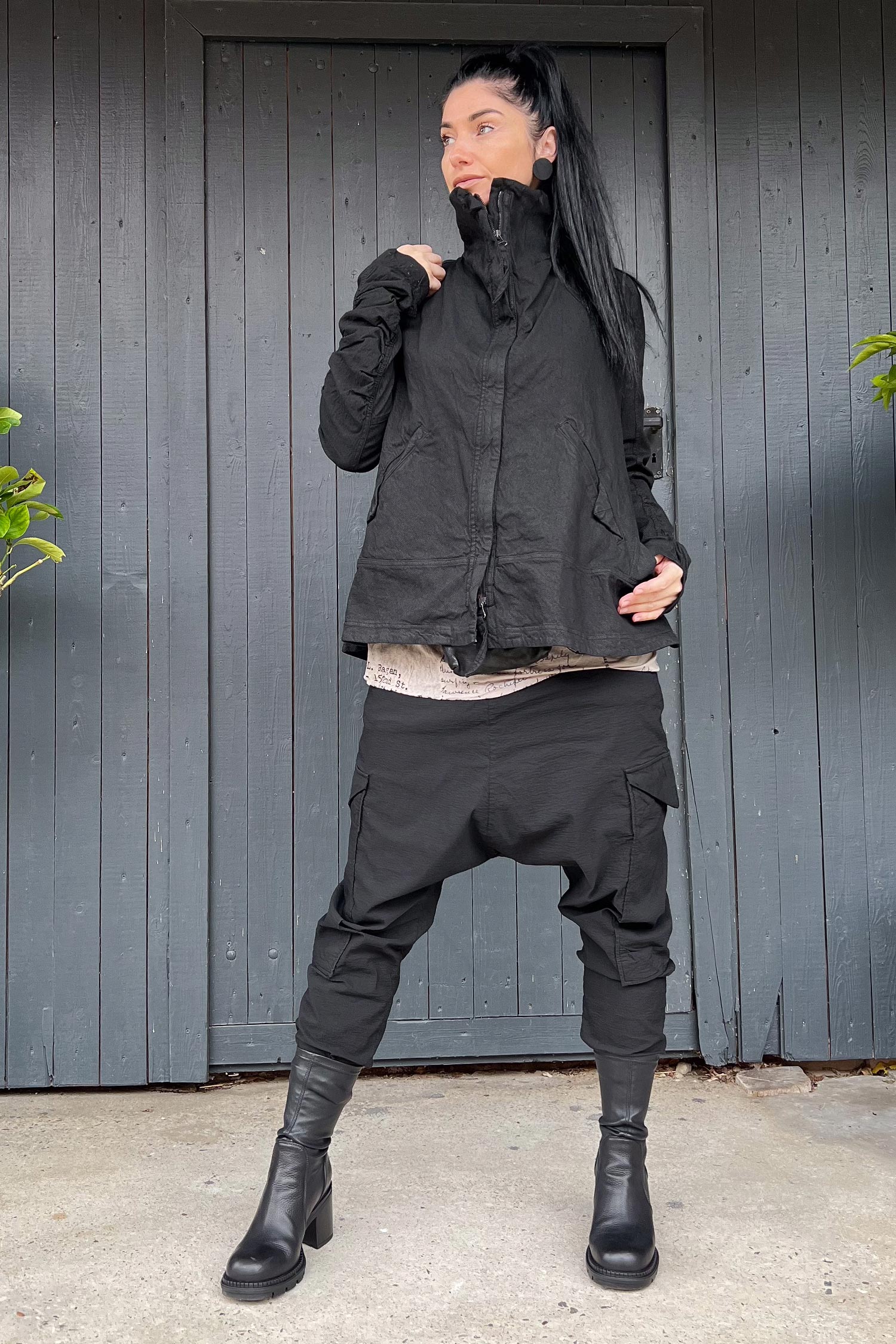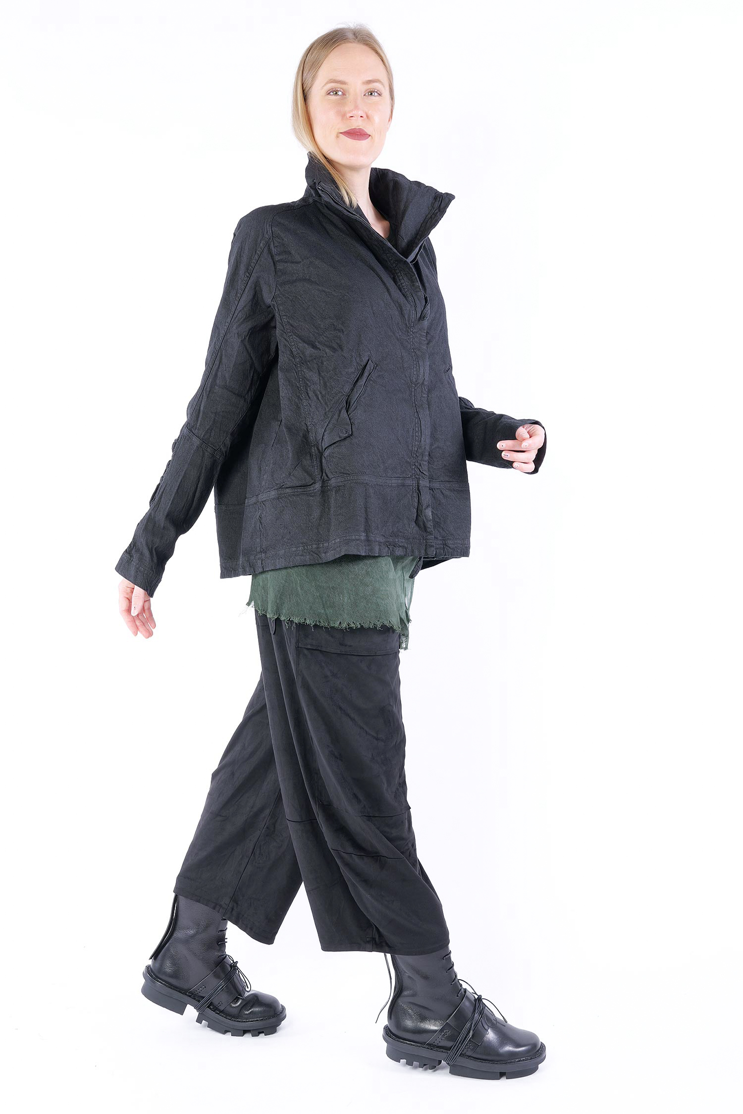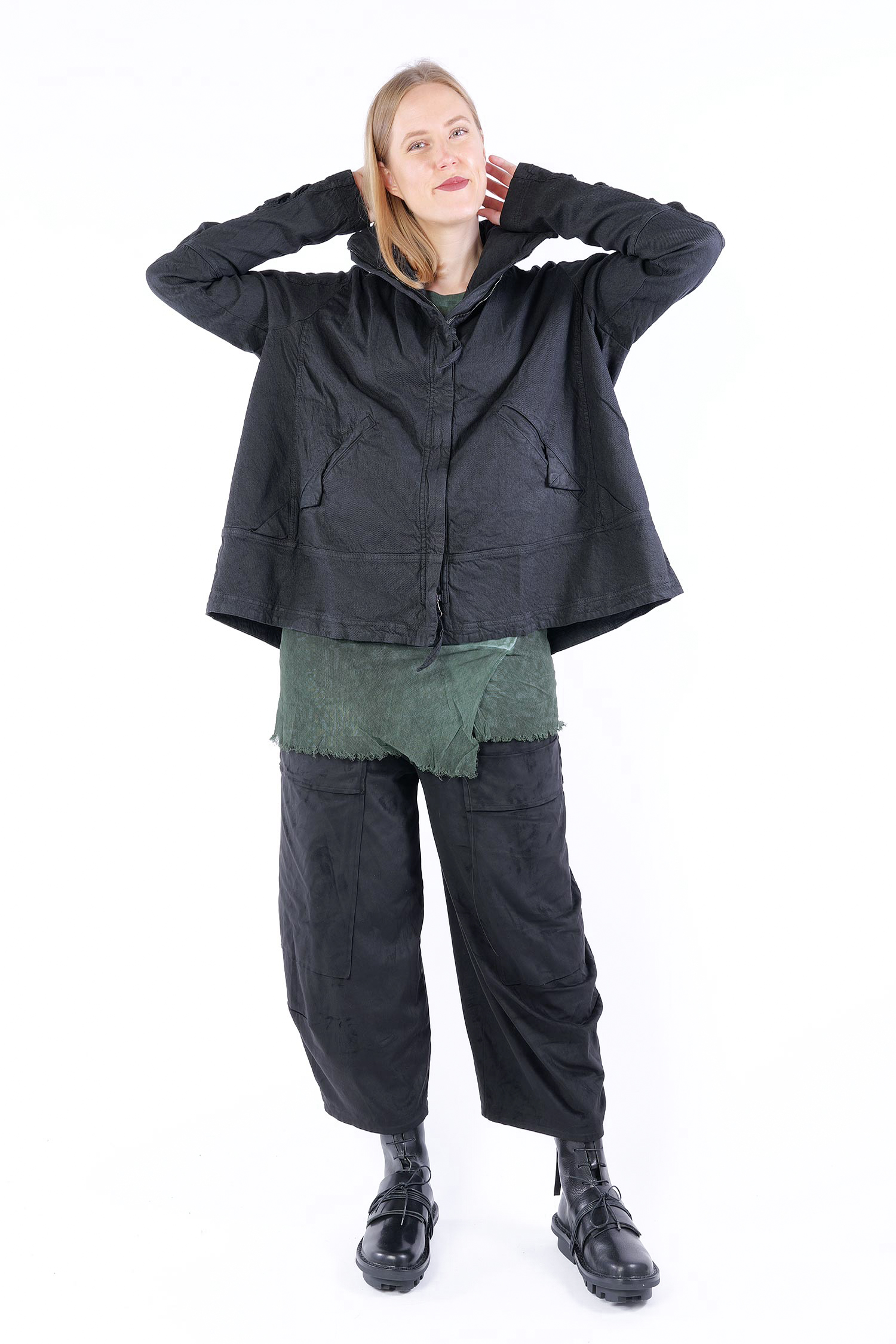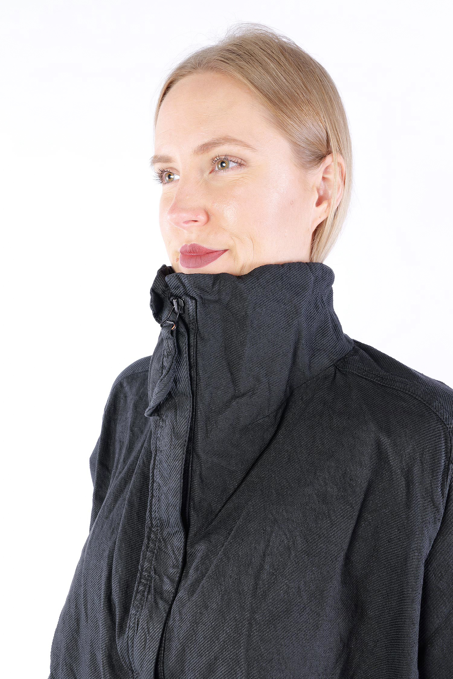 Details: - Verdeckter Metall-Reißverschluss - Weit und kastig - Stehkragen - Lange Ärmel mit normaler Weite - Vorne Paspeltaschen in Briefumschlag-Optik mit Knopf - Am Ärmel gerafft - Strukturiertes Material -Vesäuberte Kanten