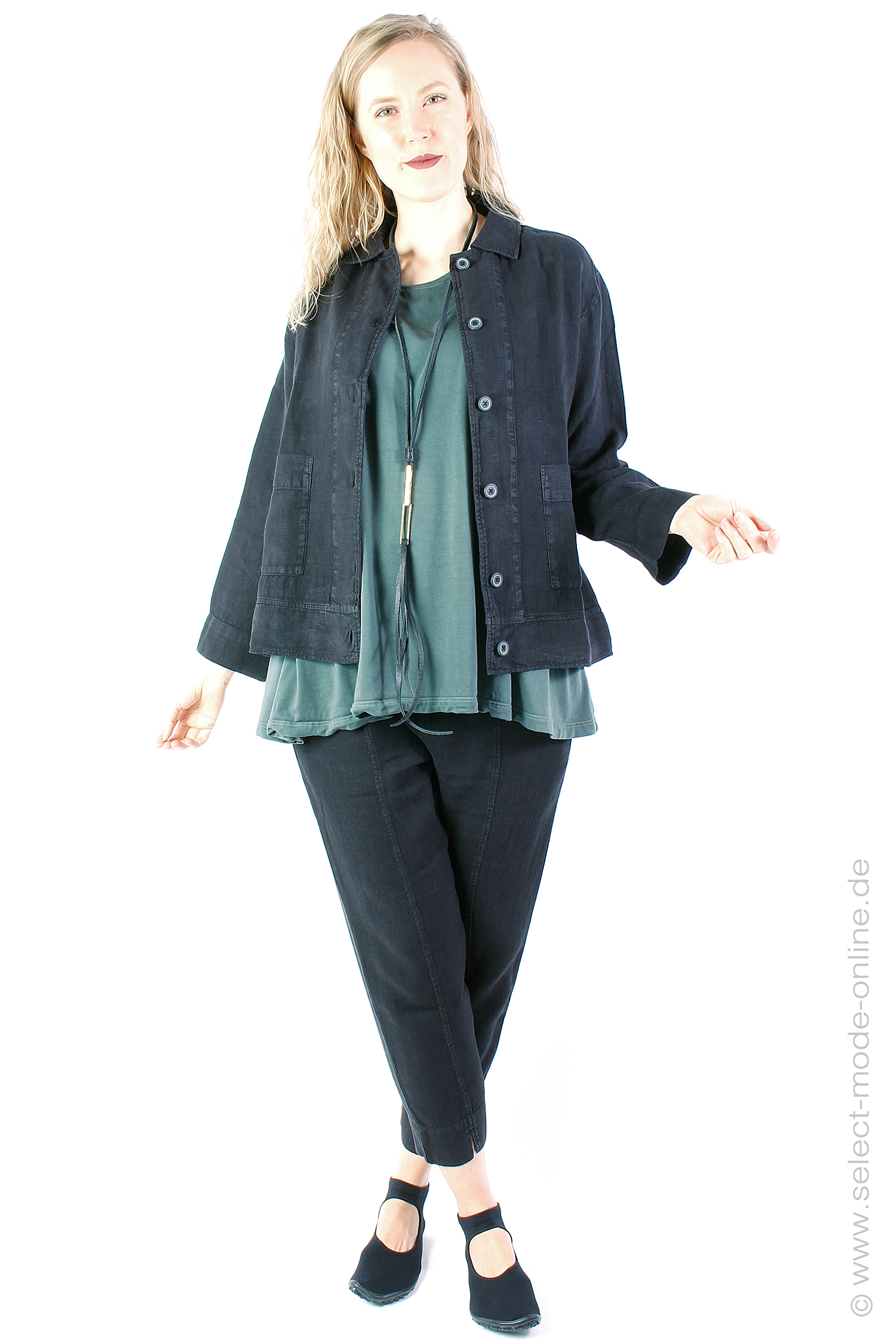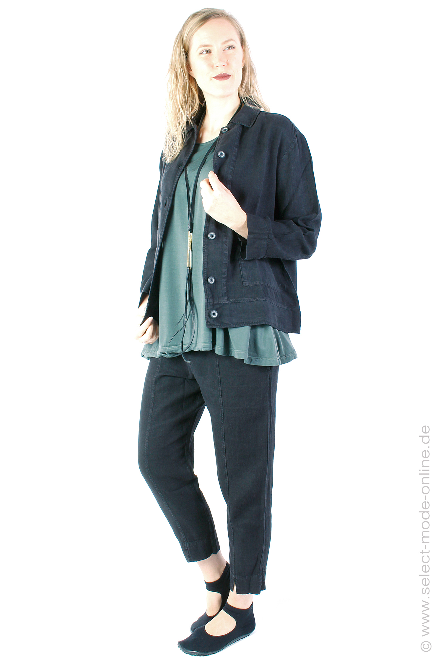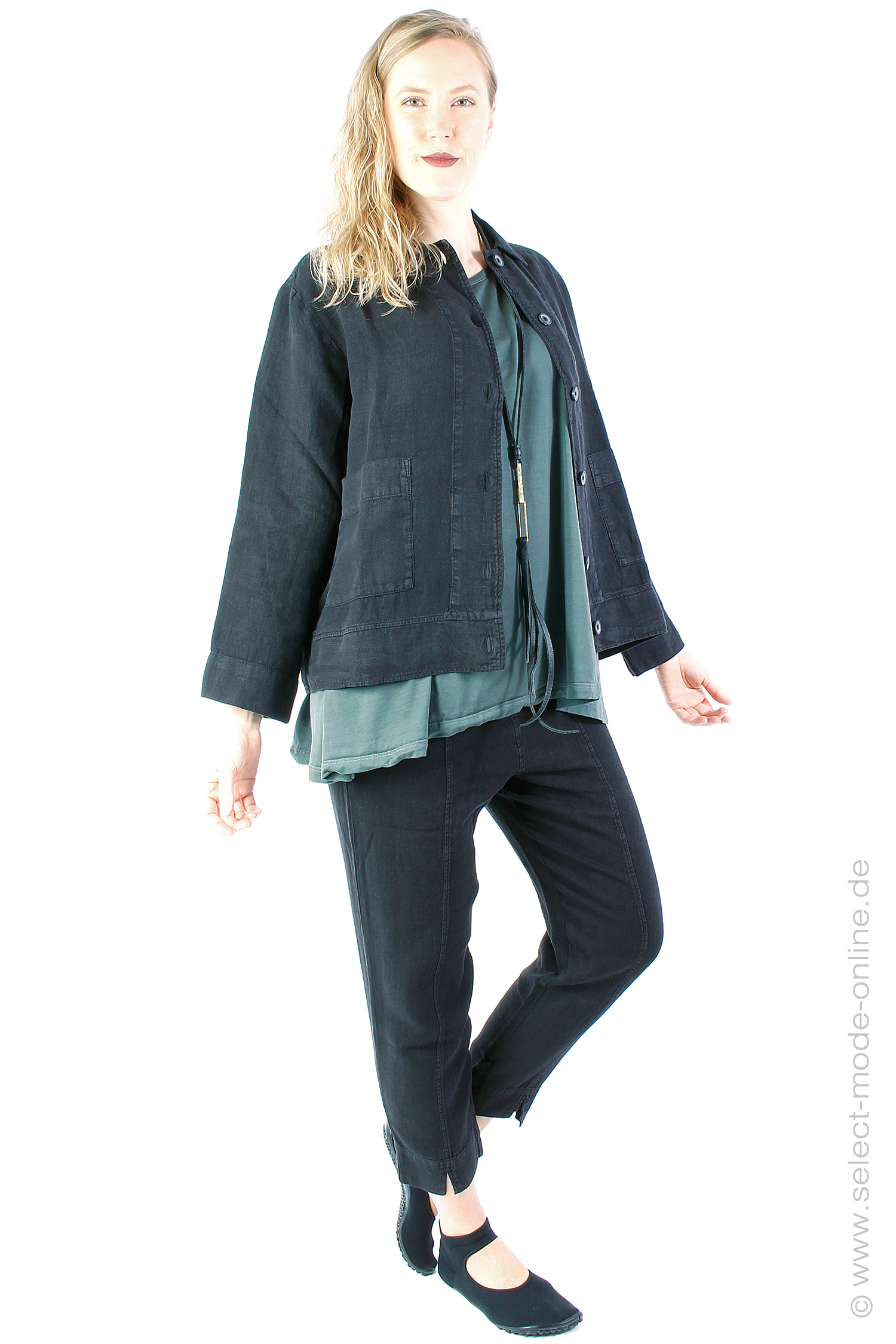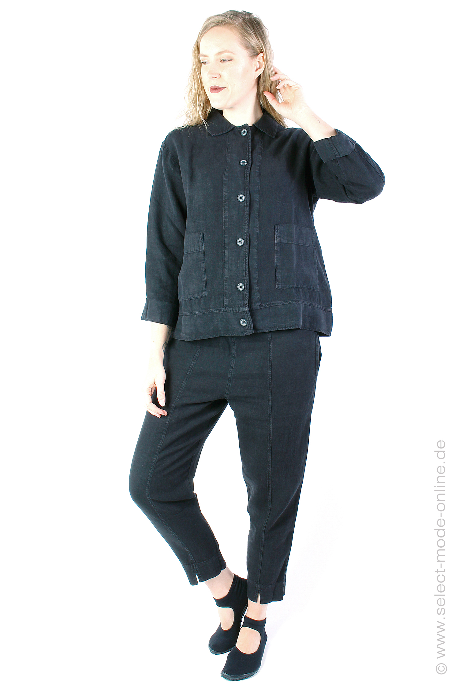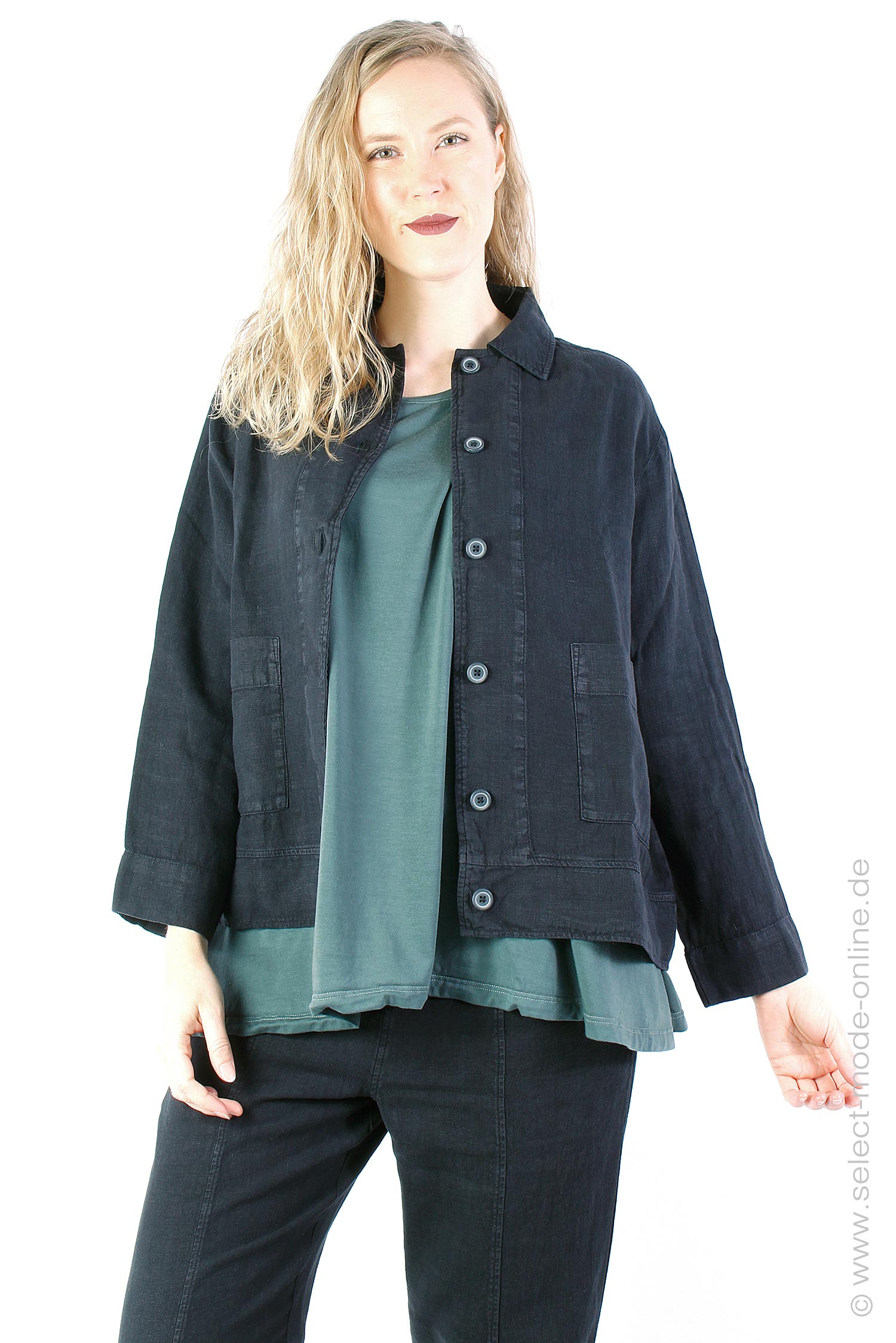 Kurze Leinenjacke mit aufgesetzten Taschen und Knopfleiste von By Basics.