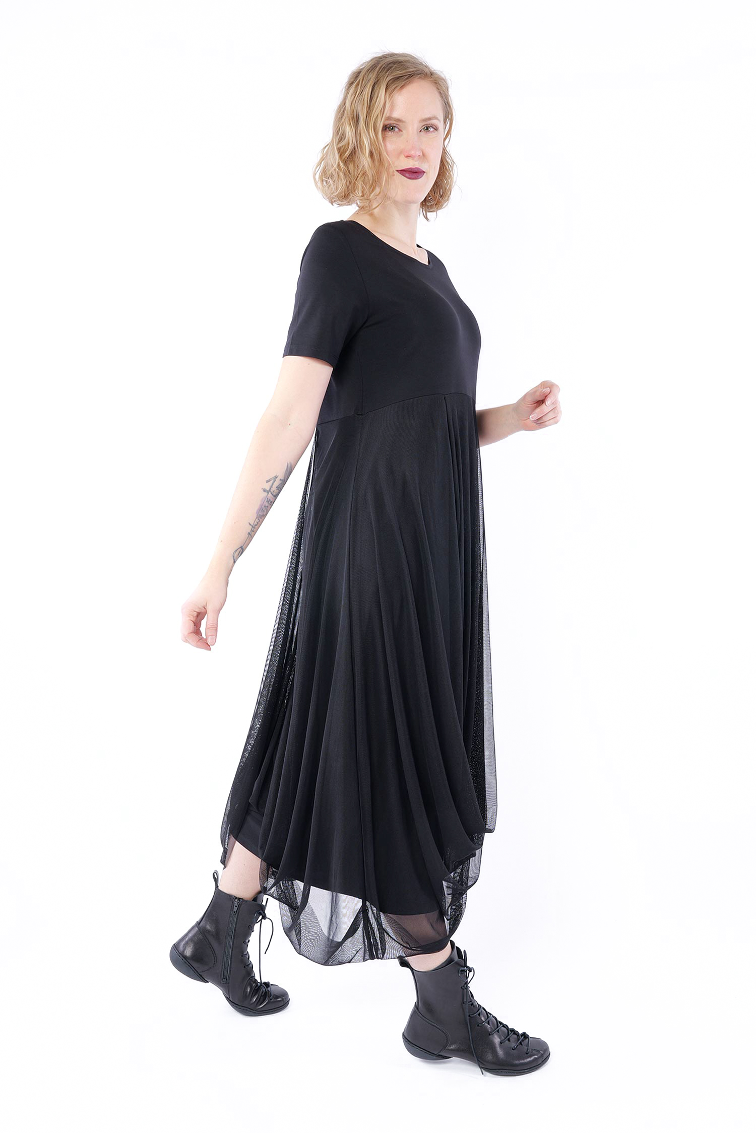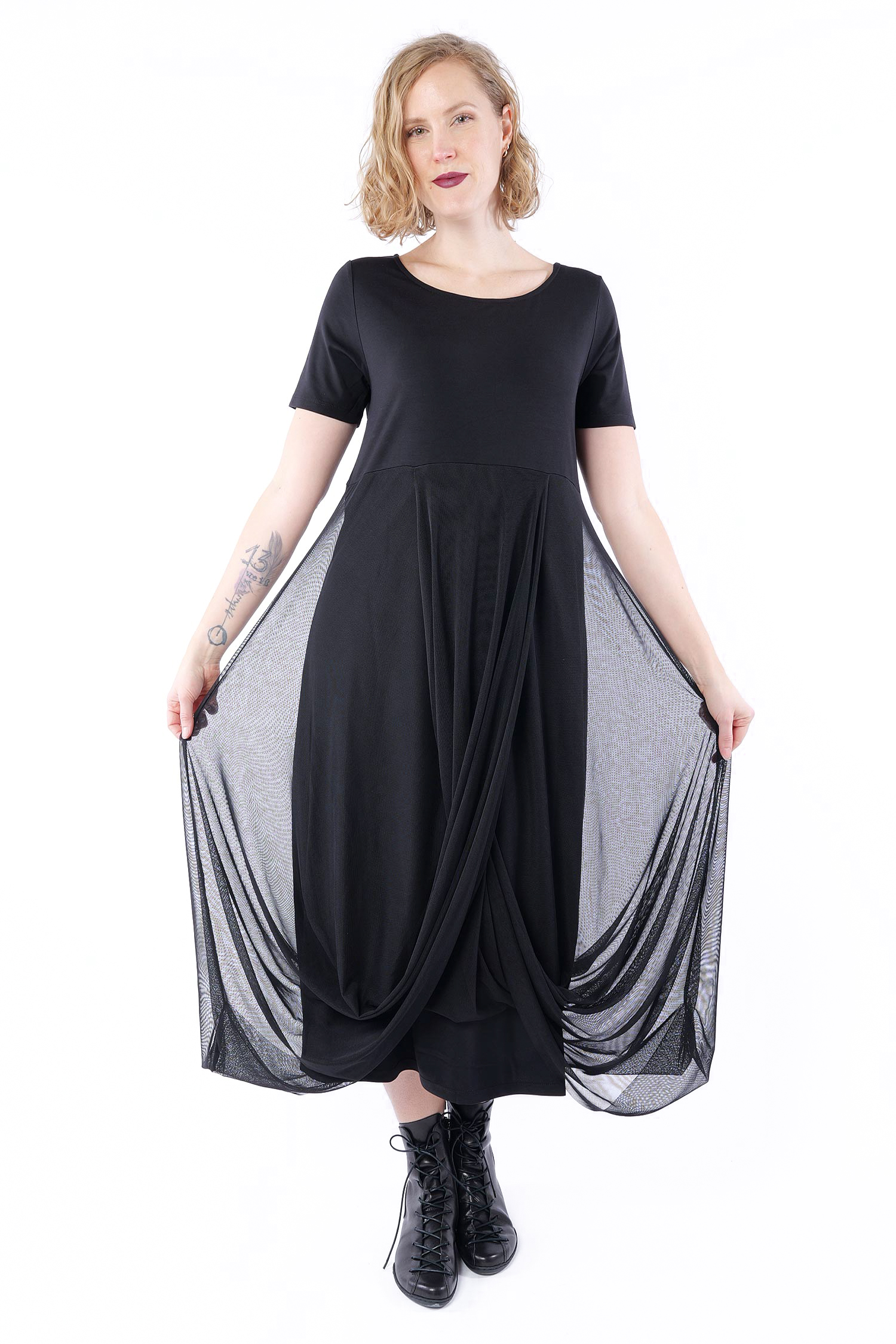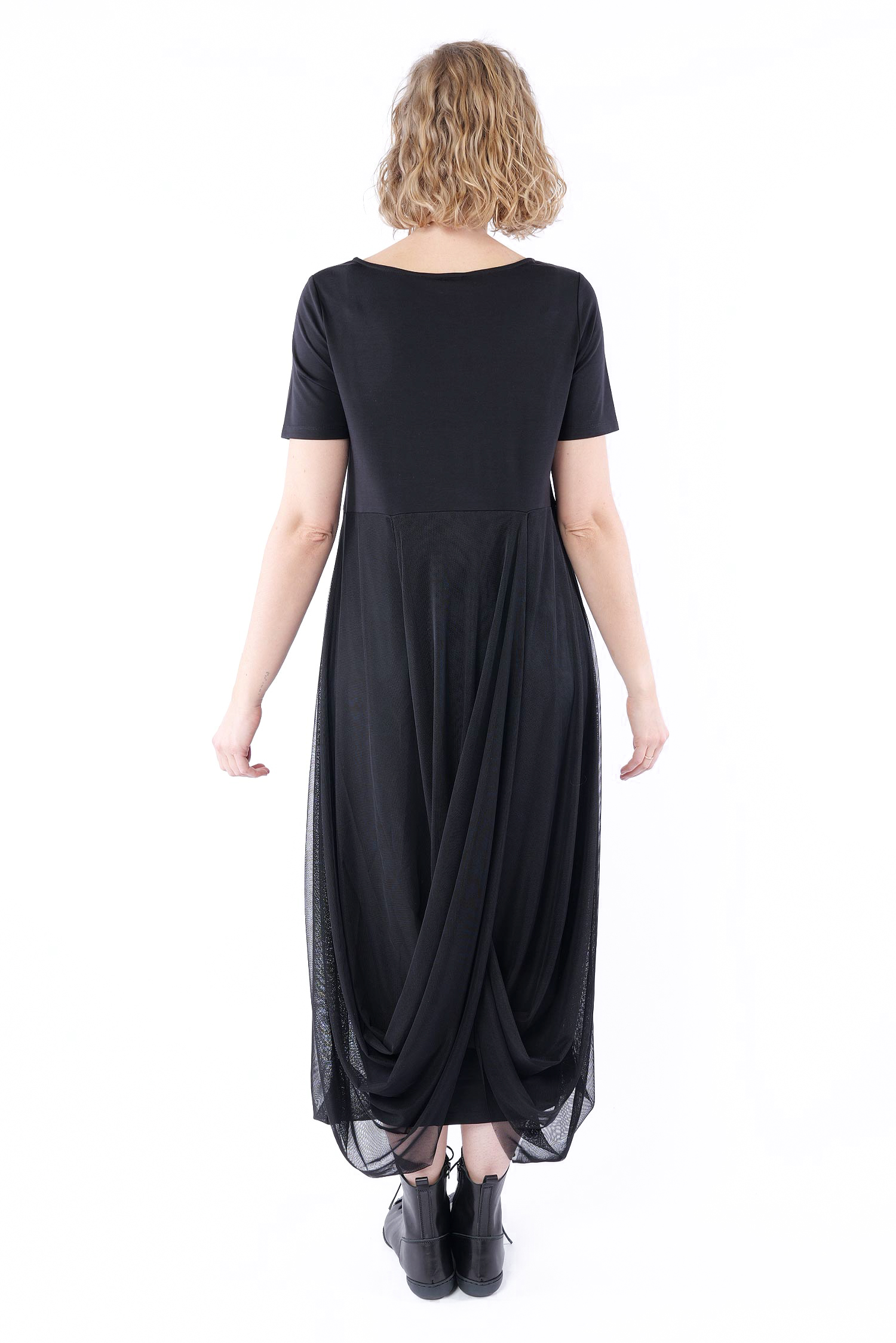 Details: - Rundhalsausschnitt - Tüllbesatz ab Taille, am Saum nach innen umgeschlagen - Kühles, fließendes, leicht elastisches Material - Kühles Hautgefühl - Versäuberte Kanten - Leicht tulpig - Kurze Ärmel