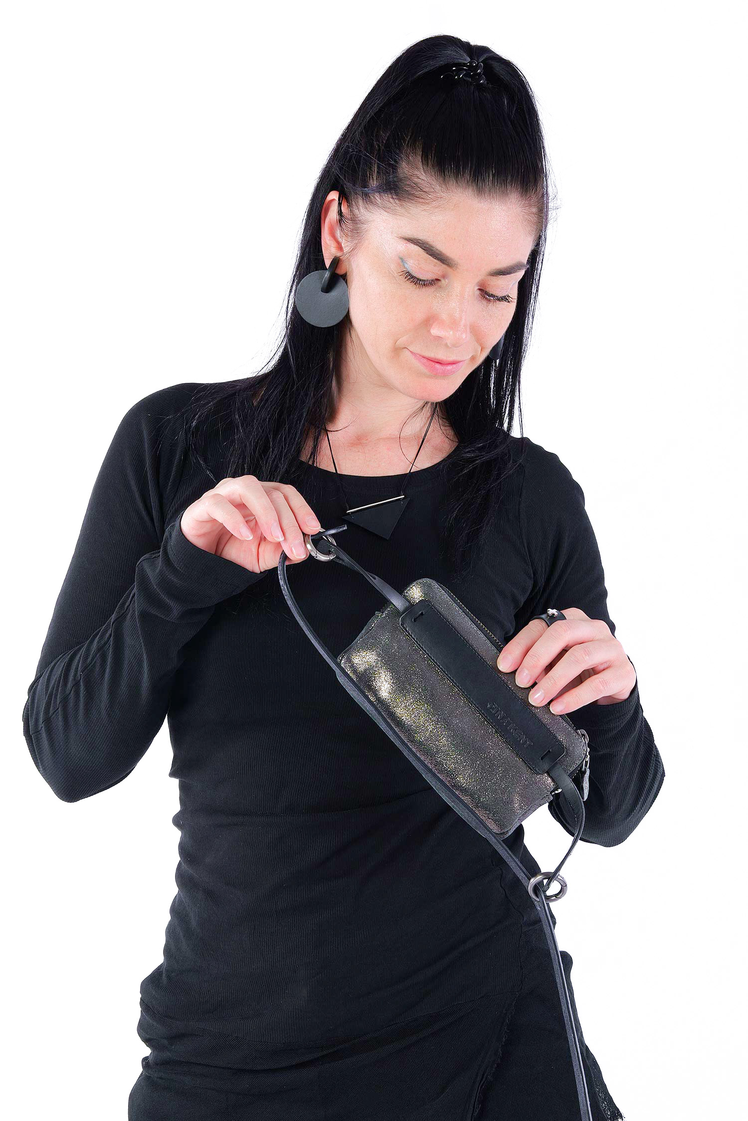 Kleine Leder Tasche - Crackled Graphite - X.ONI ed.2