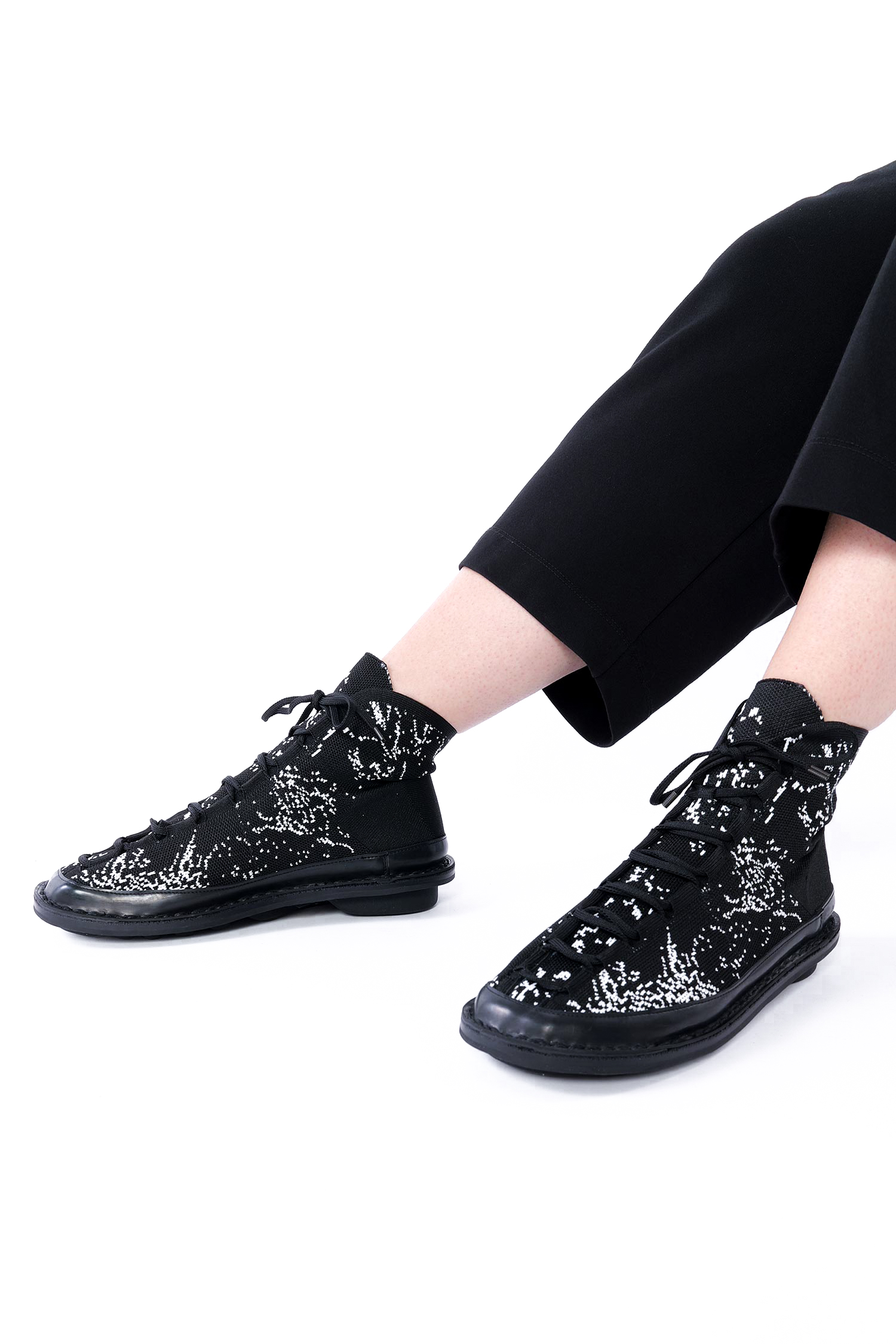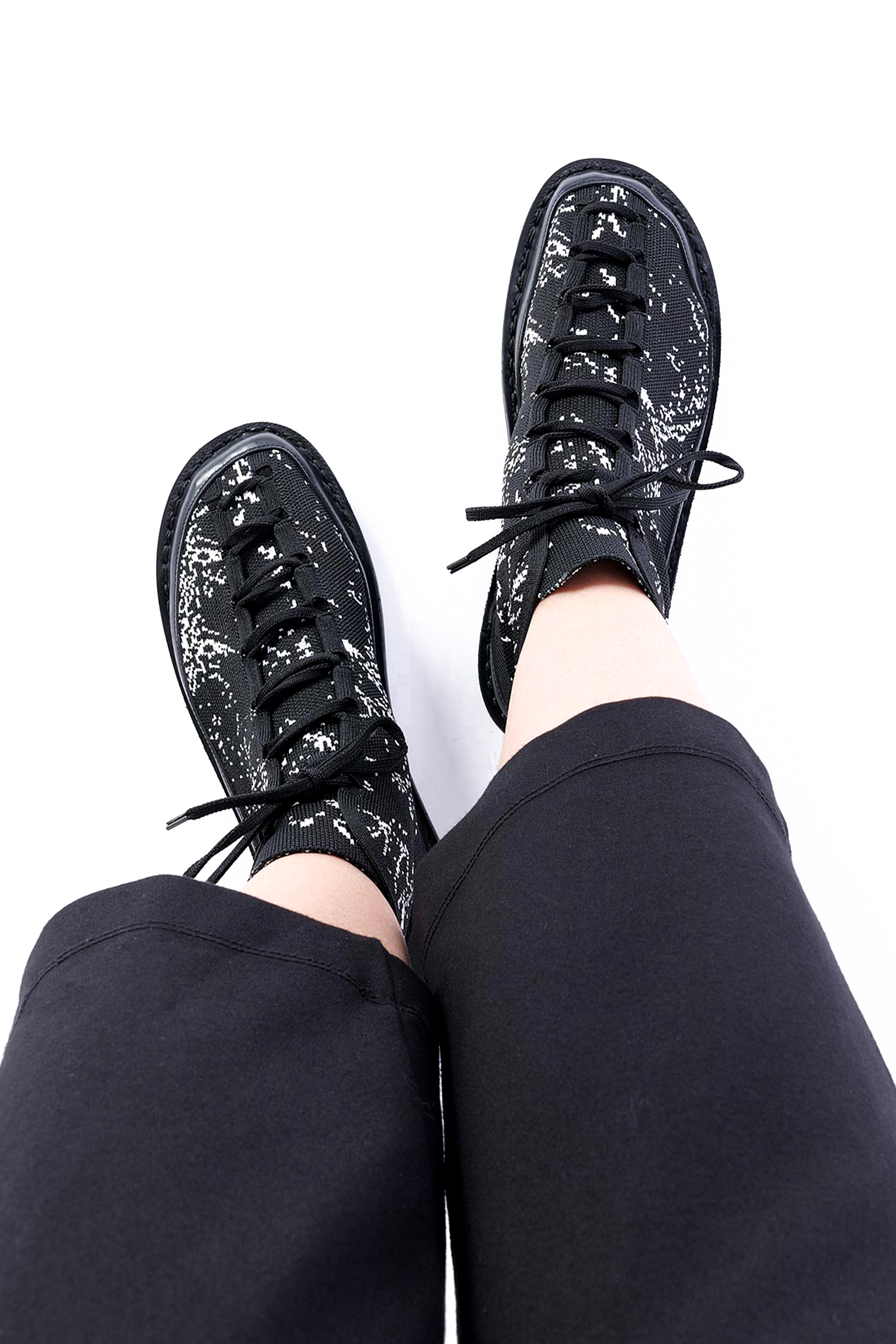 Knöchelhohe Schnürschuhe aus recyceltem Strick von Trippen.