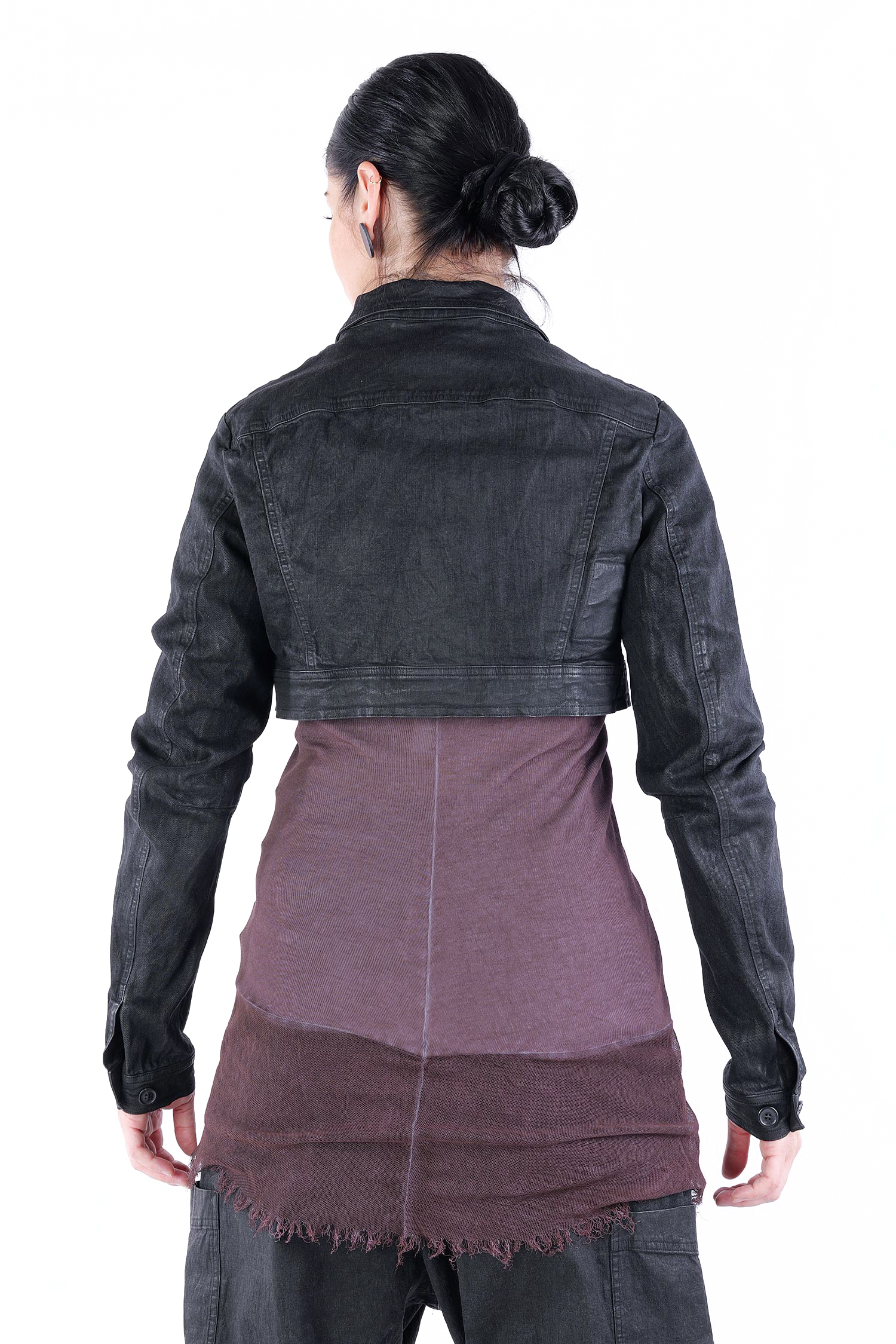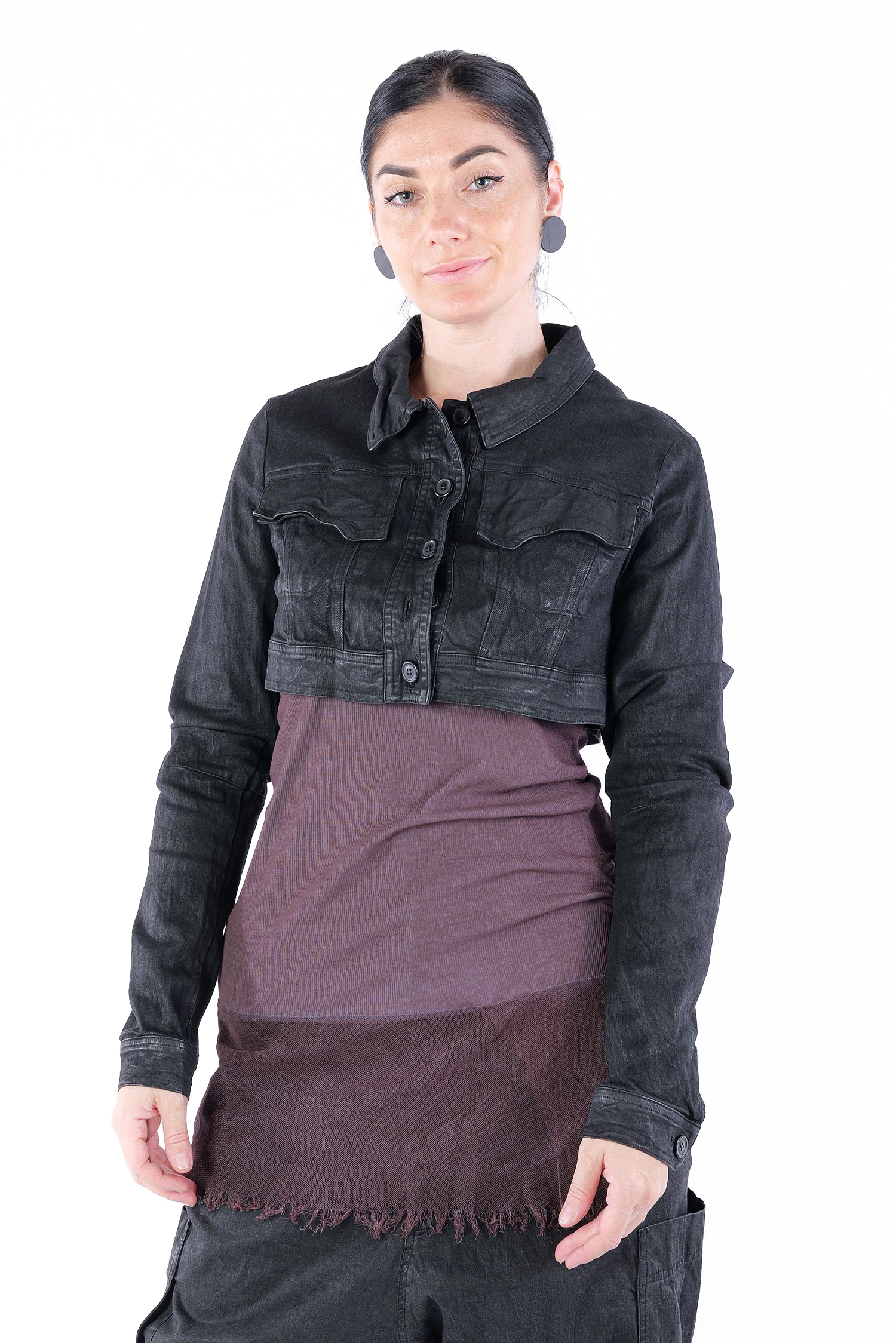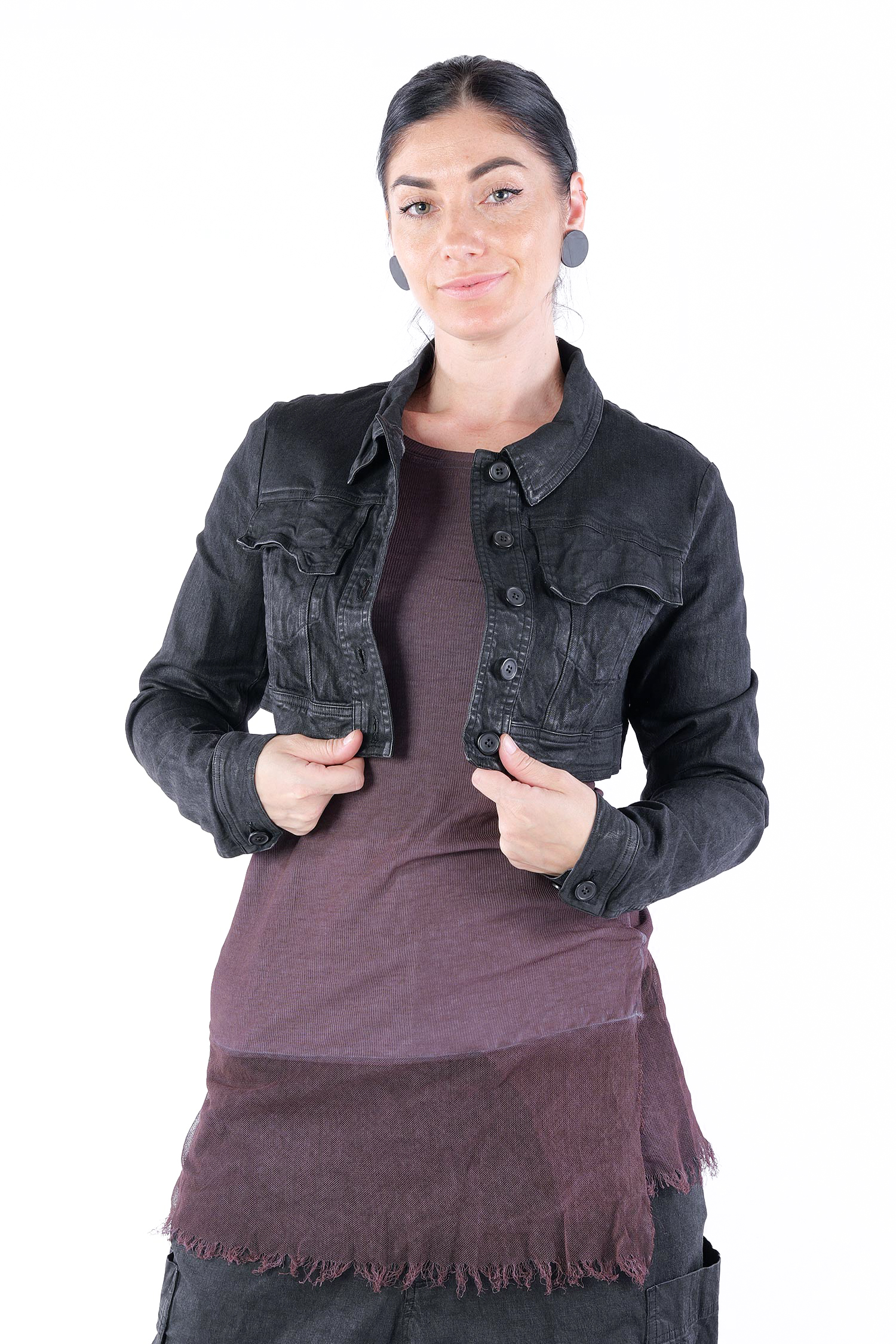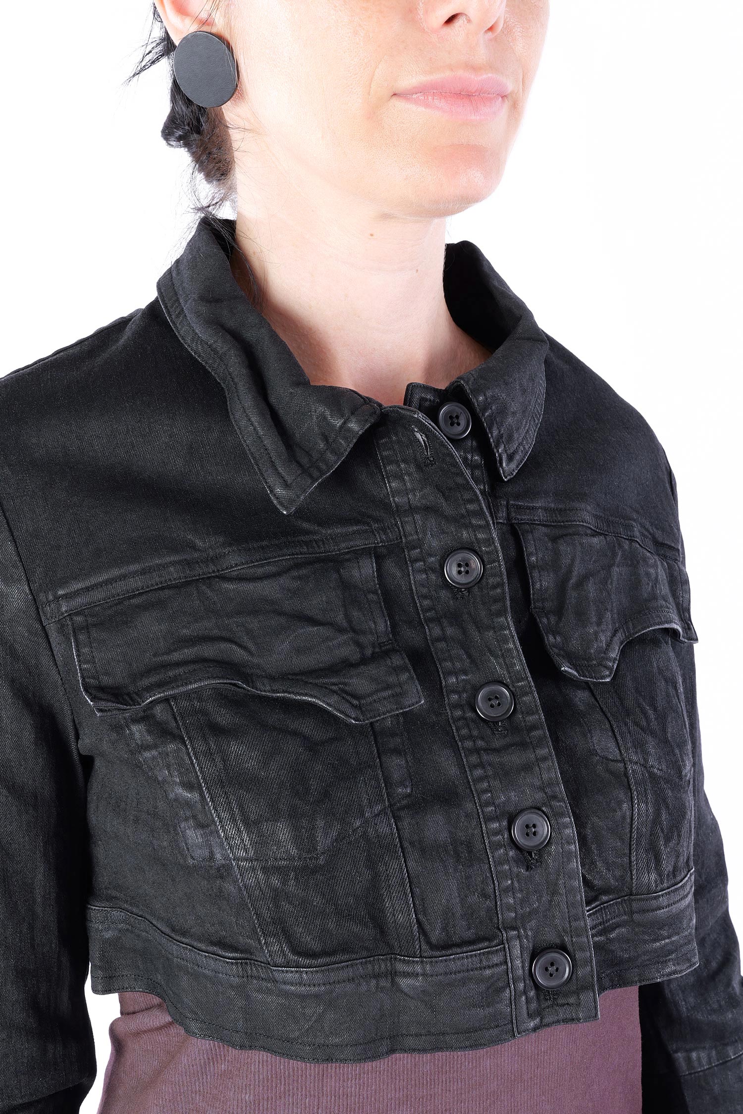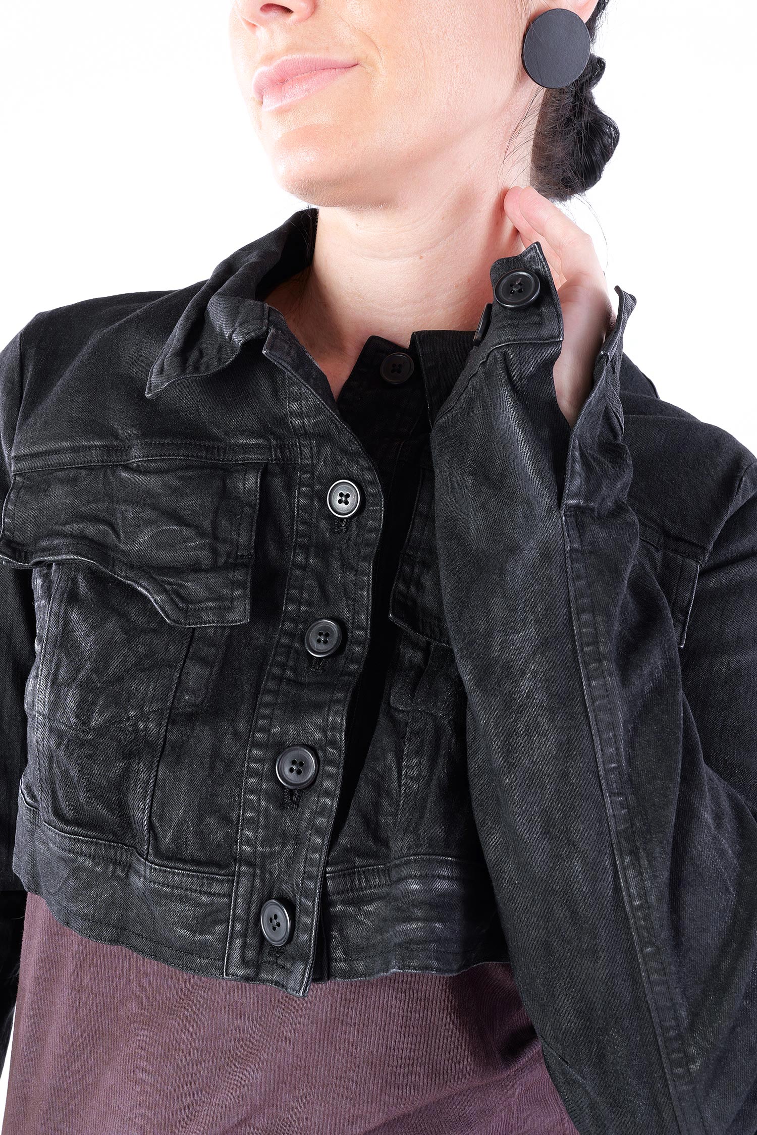 Kurze Jeansjacke mit Beschichtung von Rundholz.