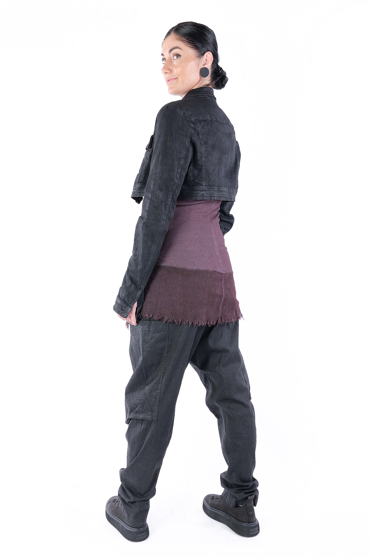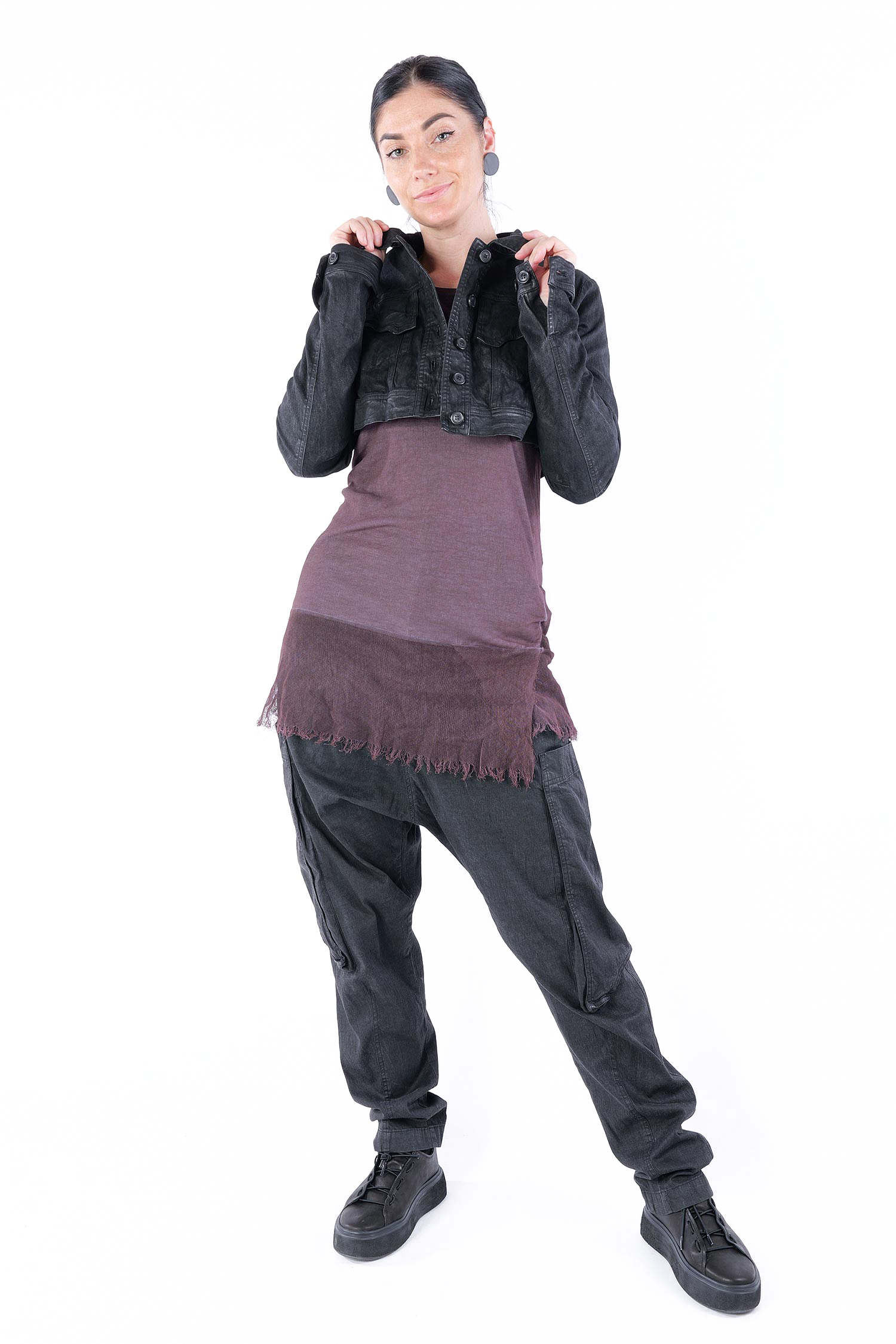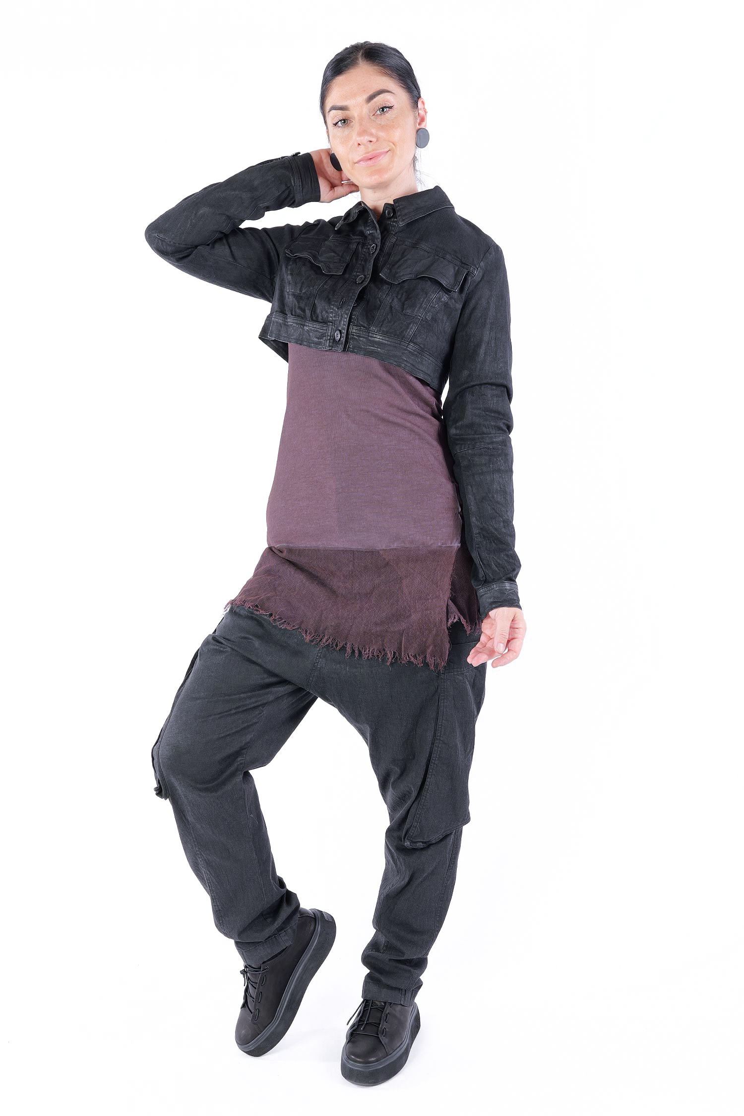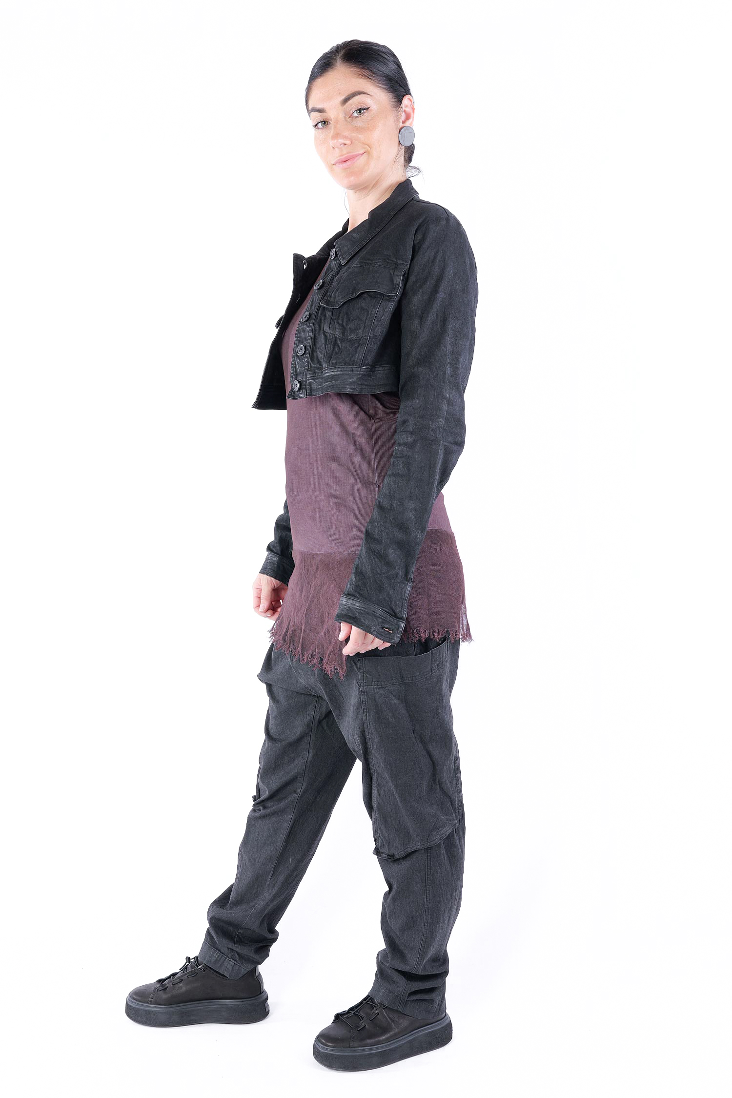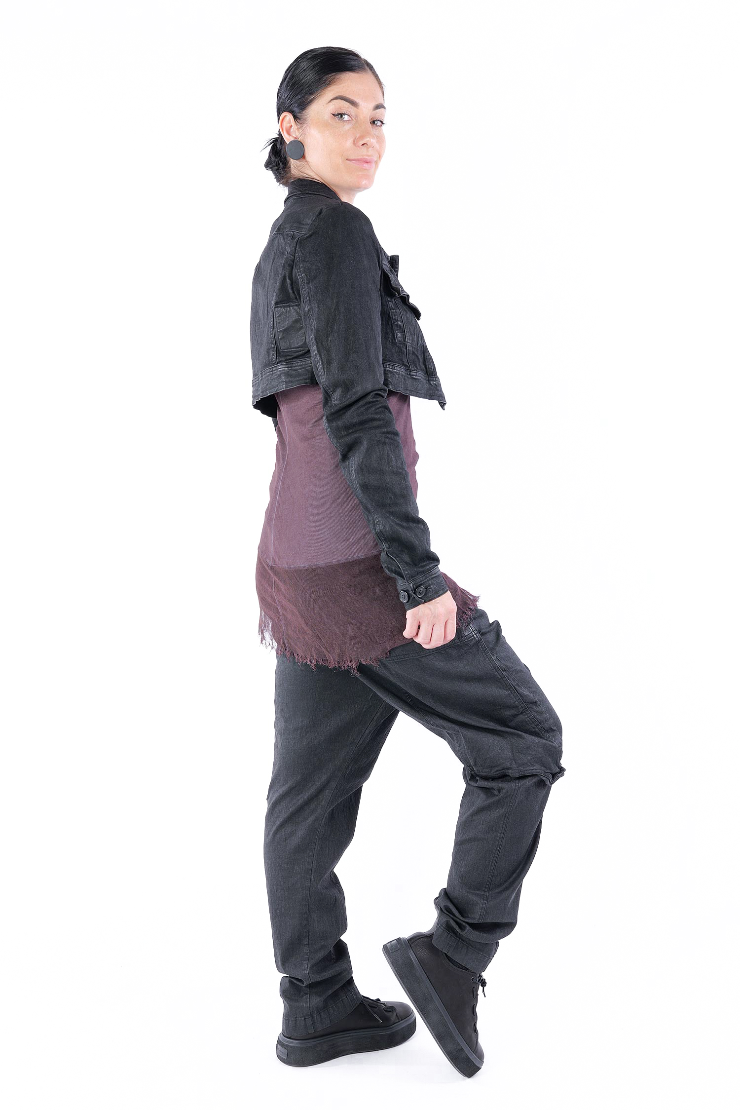 Kurze Jeansjacke mit Beschichtung von Rundholz.