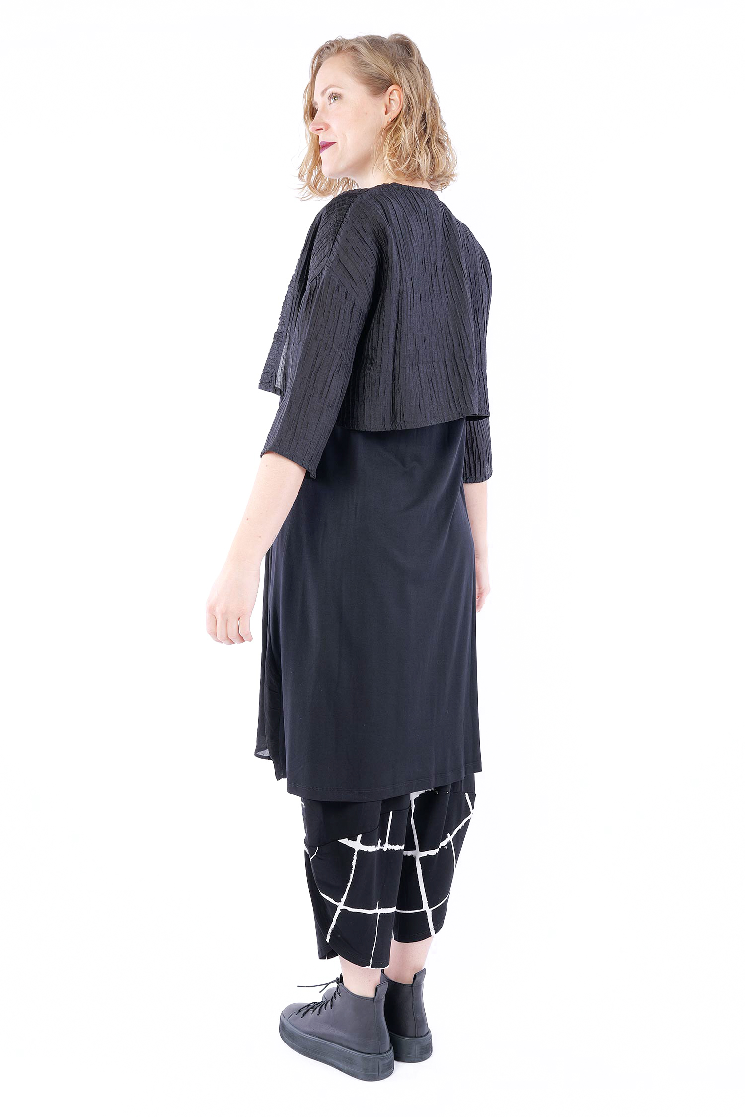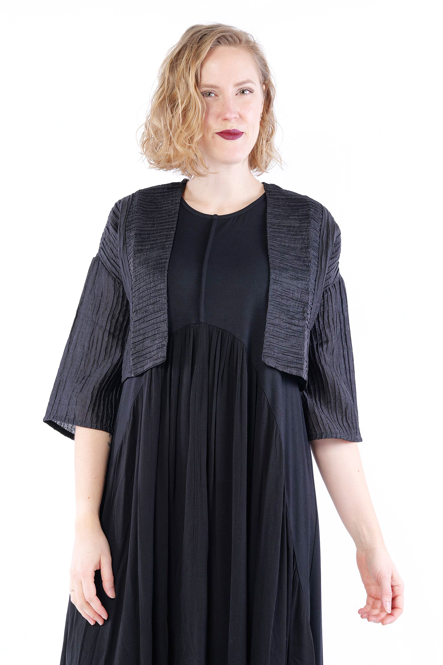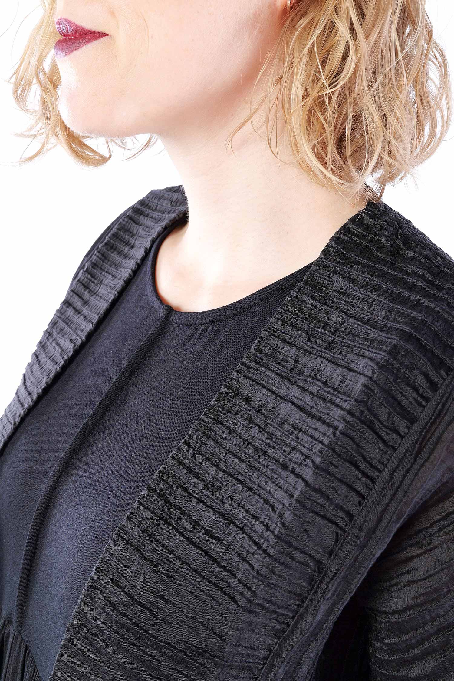 Kurze Plissee Jacke - Schwarz - 860484