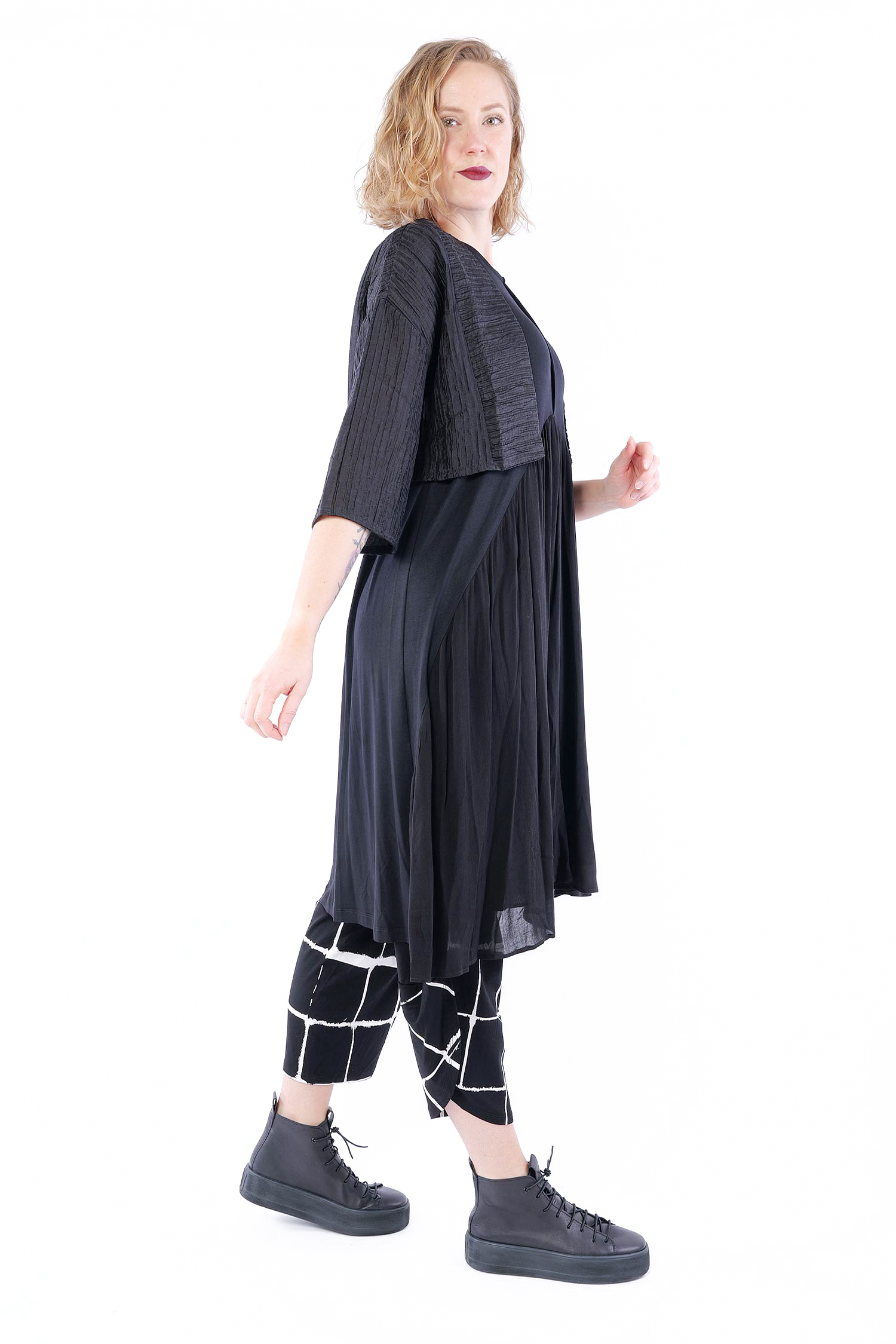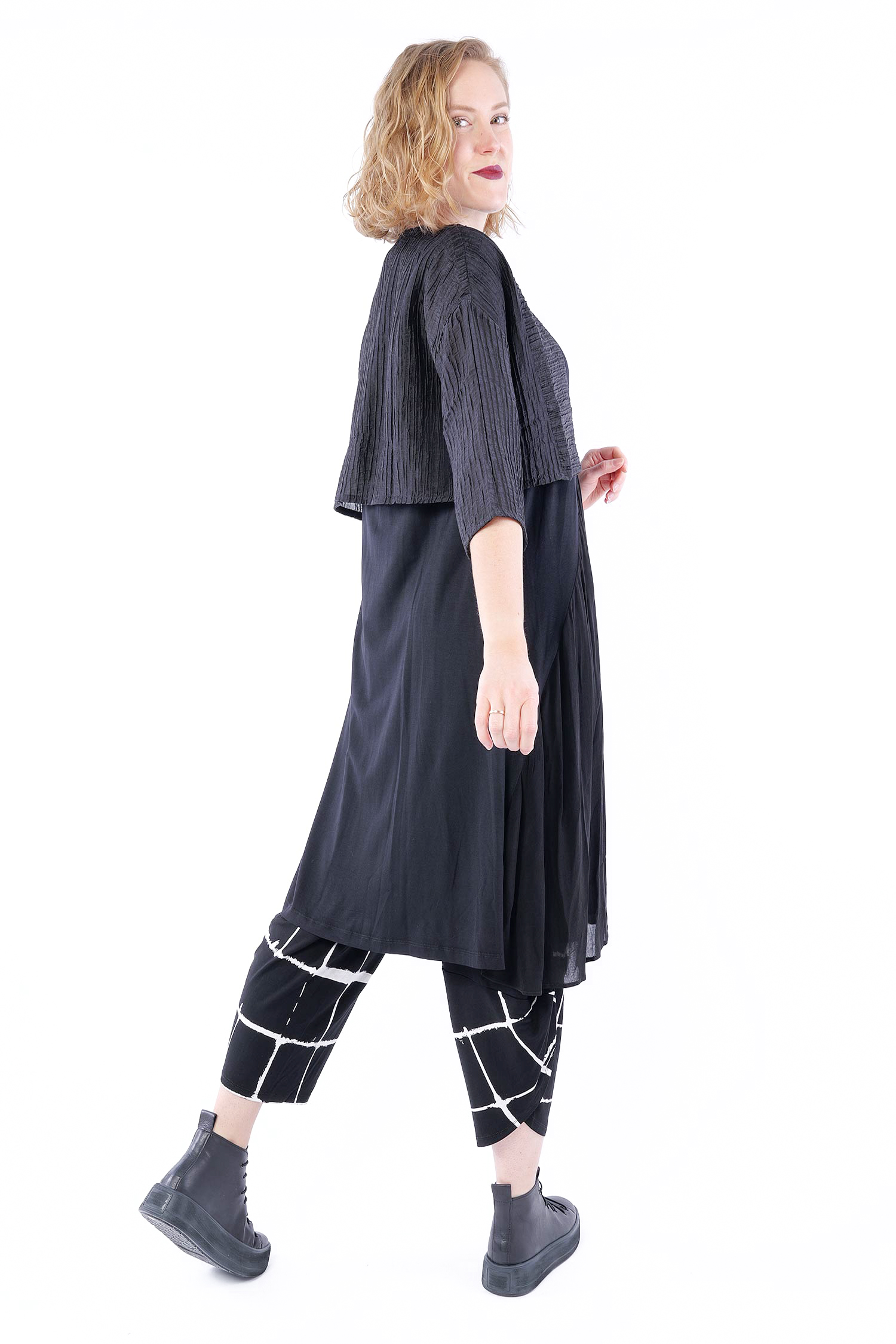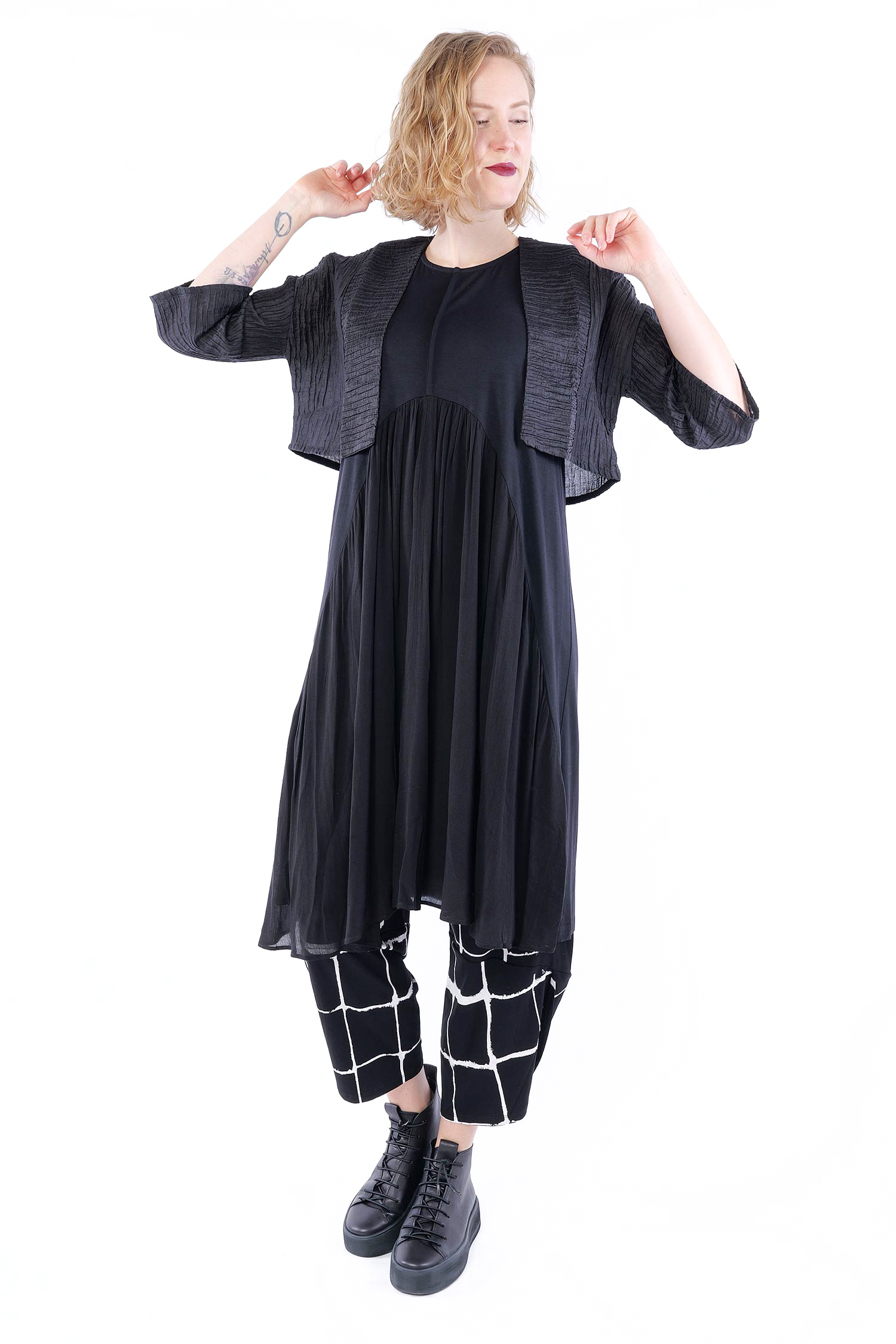 Kurze Plissee Jacke - Schwarz - 860484