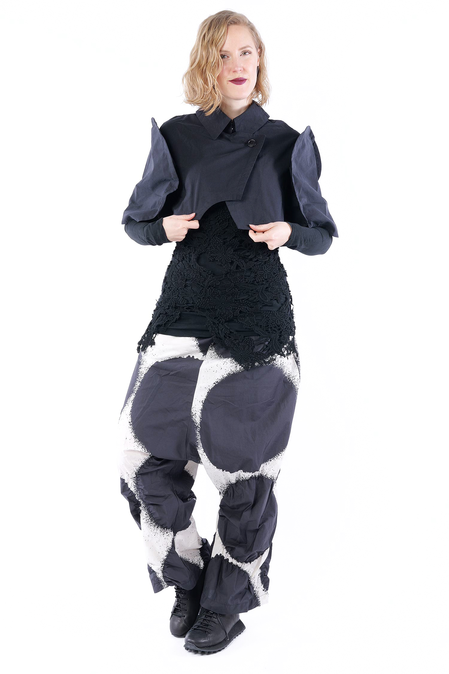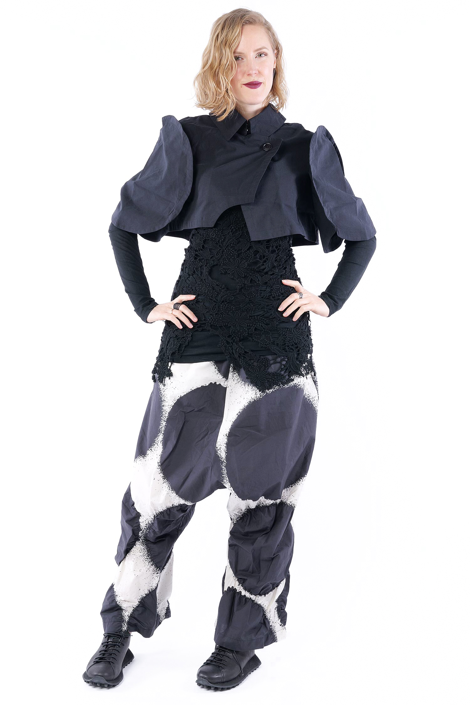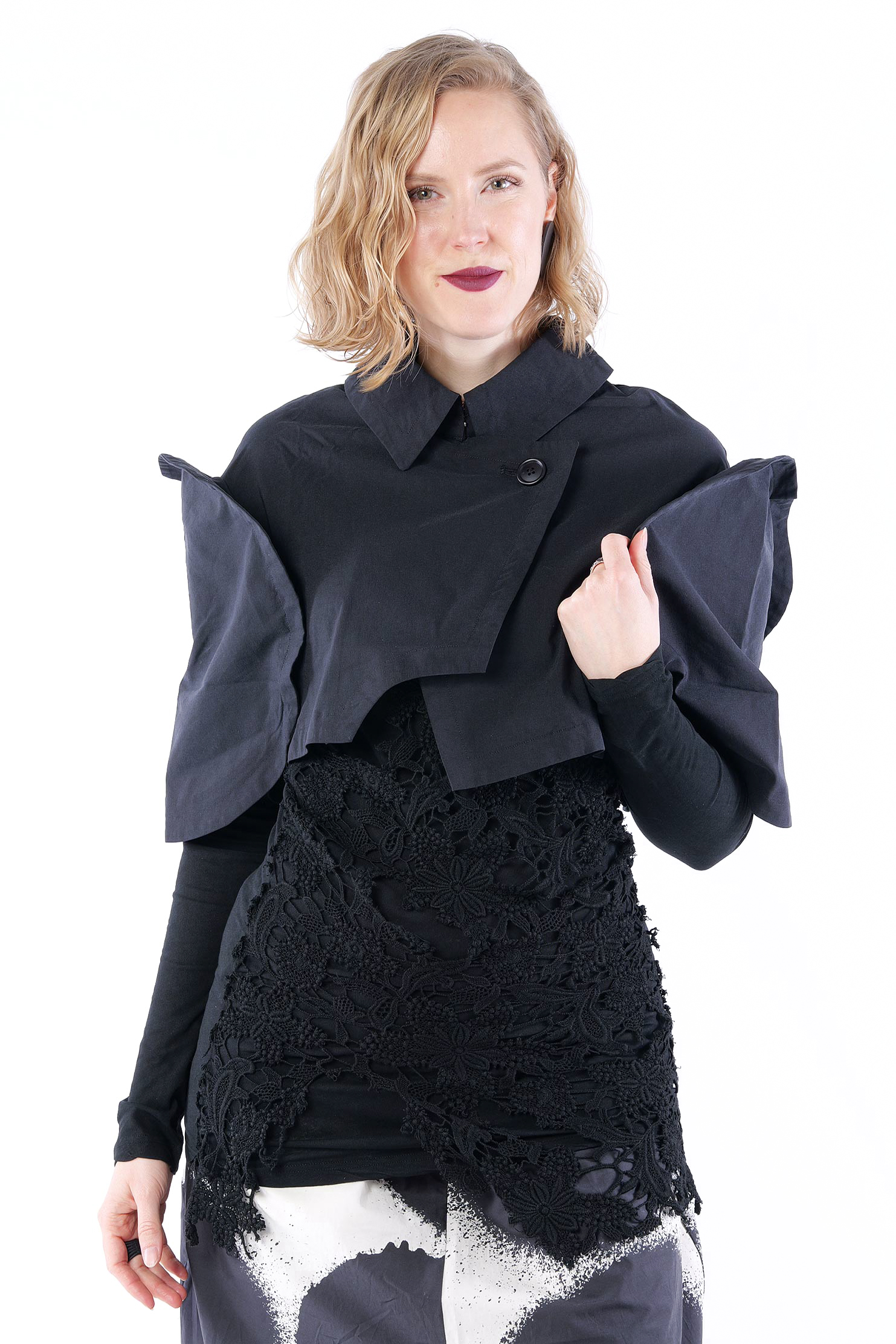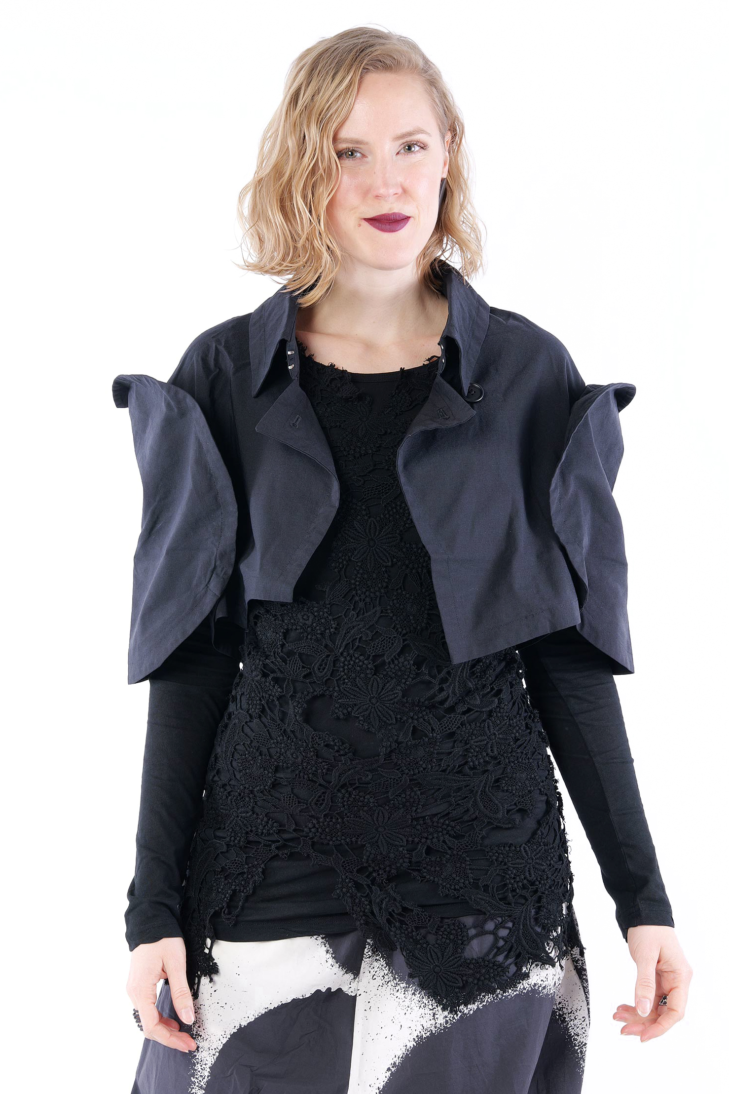 Kurze Stretchjacke mit Schulterapplikationen von Rundholz.