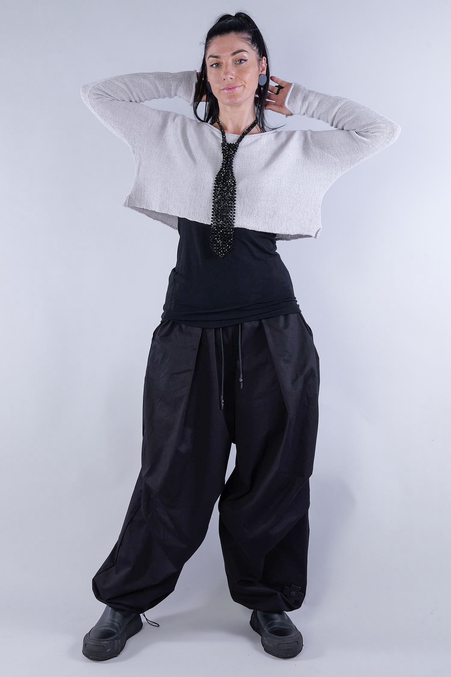 Kurzer oversize Pullover aus Leinen / Baumwolle von