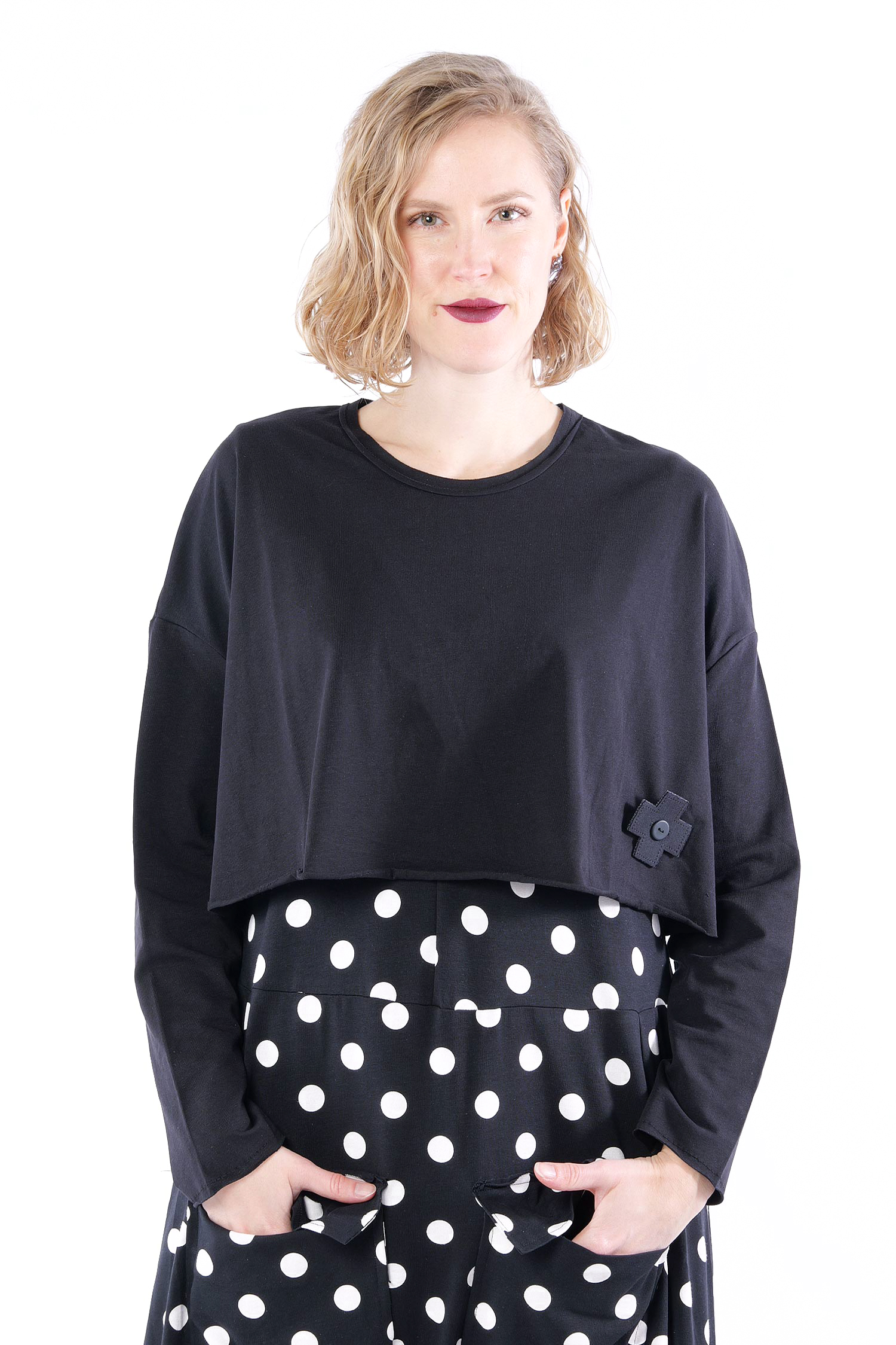Kurzer Pullover zum Überziehen mit überschnittener Schulter von Plü · Pluslavie.