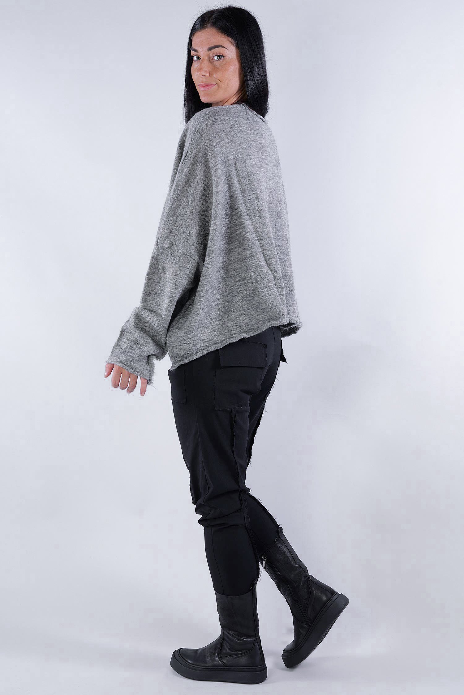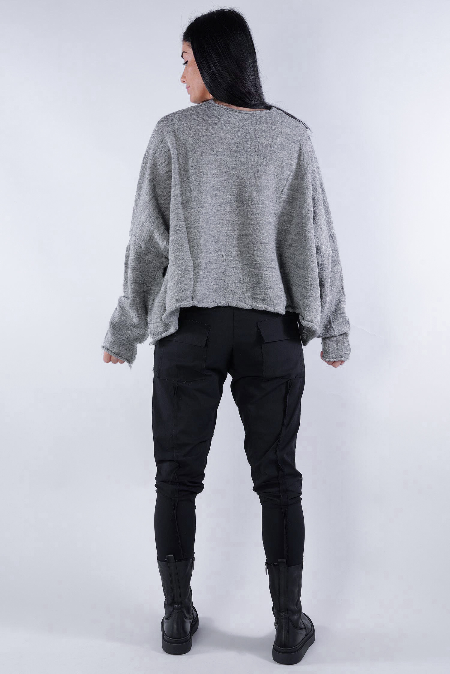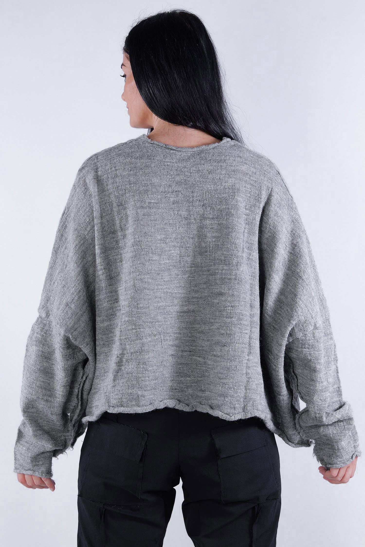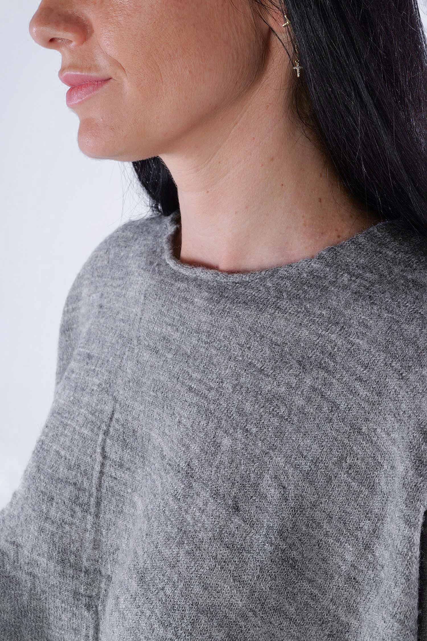 Kurzer Schurwolle Pullover - Dark grey - 2253890718