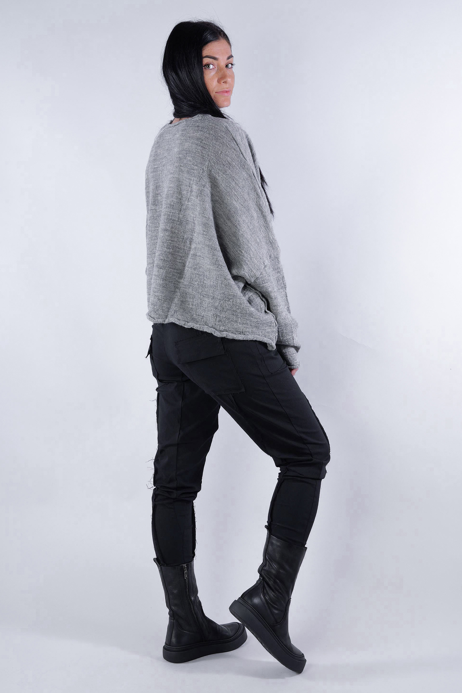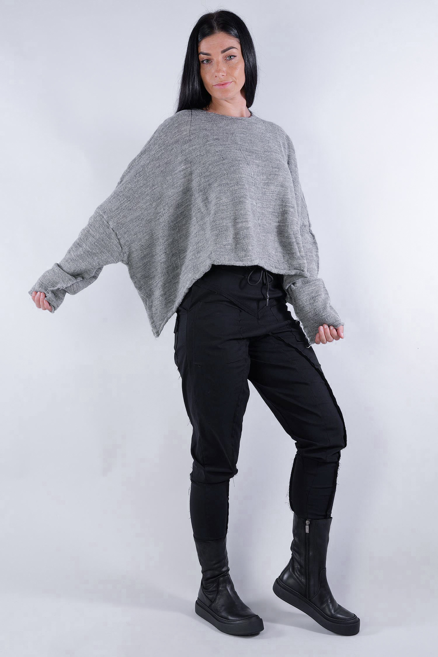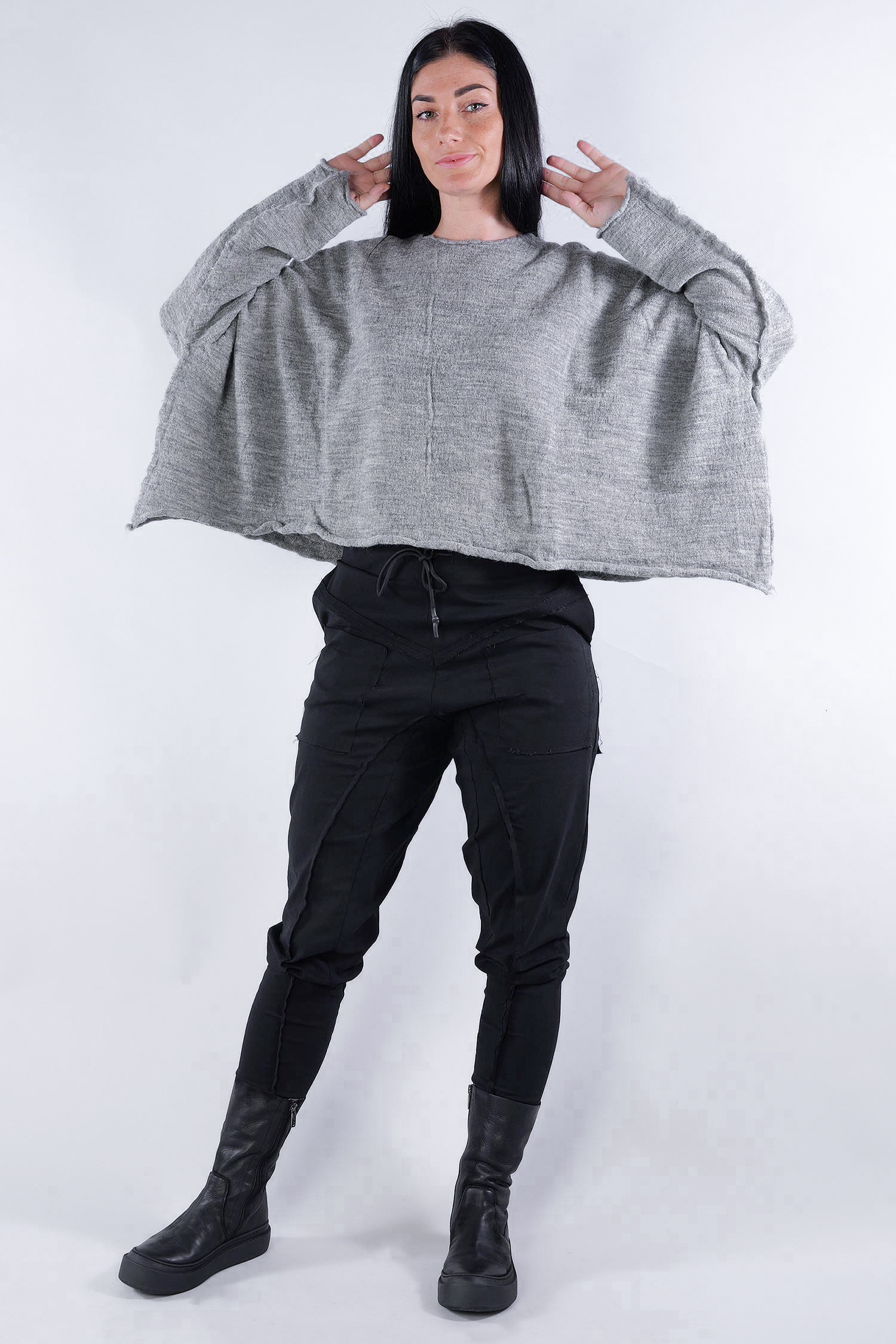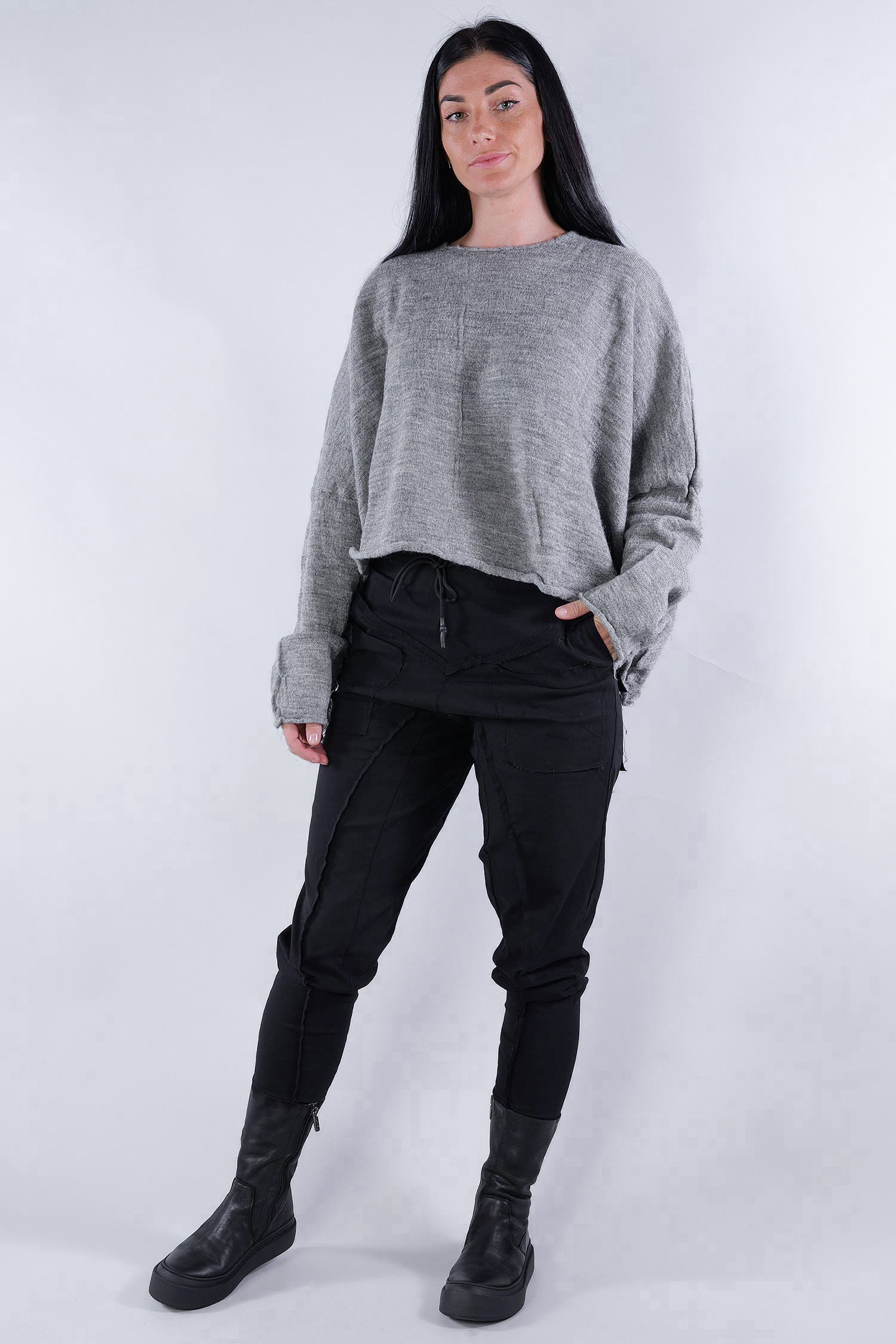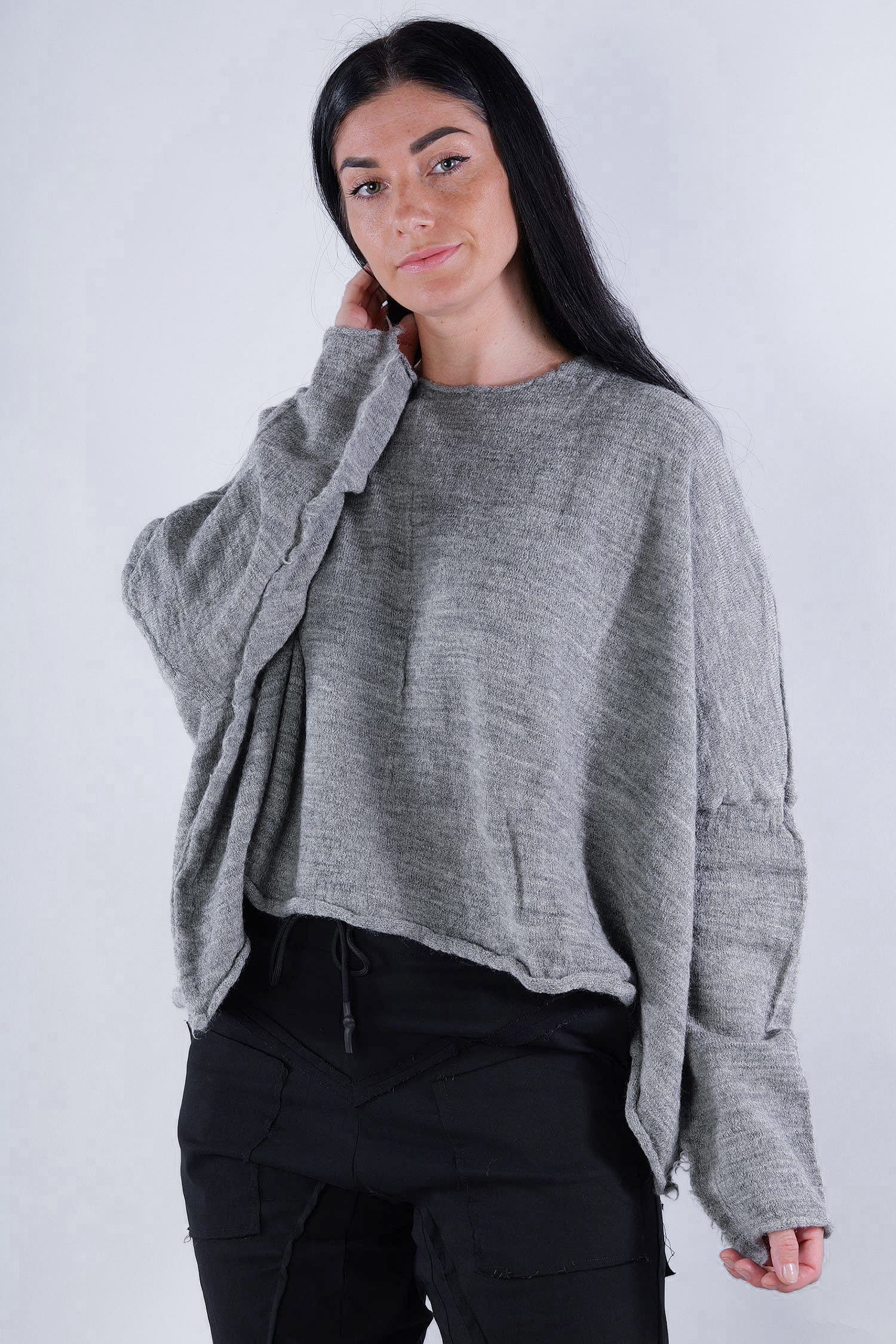 Kurzer Schurwolle Pullover - Dark grey - 2253890718